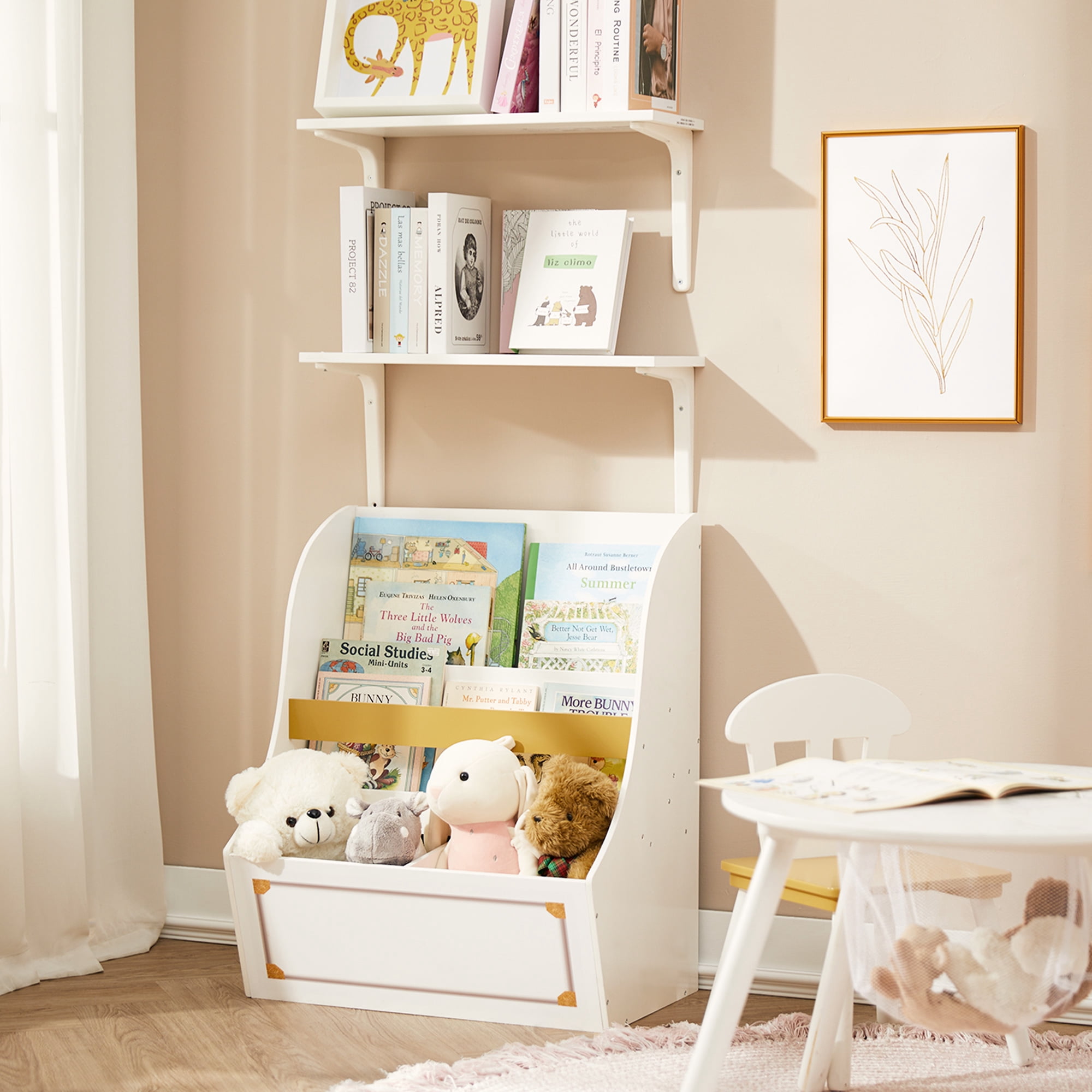 WHAT’S INCLUDED: This 3-Piece Toddler Bedroom Set includes 1 Sleep and Play Toddler Bed, 1 Chair Desk, 1 Toy Organizer with 3 Fabric Bins FOR BLUEY FANS: Colorful Bluey graphics makes this a must-have set for any fan SLEEP AND PLAY TODDLER BED: Built in toddler guardrails to keep your child secure | Mattress is designed to sit low in the bed frame for your child’s safety and ease (mattress sold separately) | JPMA certified to meet or exceed all safety standards set by the CPSC & ASTM | Versatile frame of the Sleep and Play Toddler Bed can be used as a bed, play enclosure, ball pit and much more (play balls not included) TOY ORGANIZER: Toy Organizer has 3 fabric bins in varying sizes to fit a wide variety of toys, from small to large CHAIR DESK: Holds up to 50 lbs. | Desk sits low to the ground for easy access SIZE: Sleep and Play Toddler Bed: 29.5”W x 54.5”D x 17”H; Chair Desk: 16.5”W x 20.5”D x 20.3”H; Organizer: 20.9”W x 11.8”D x 24.4”H | Easy assembly | Recommended for ages 15 months+