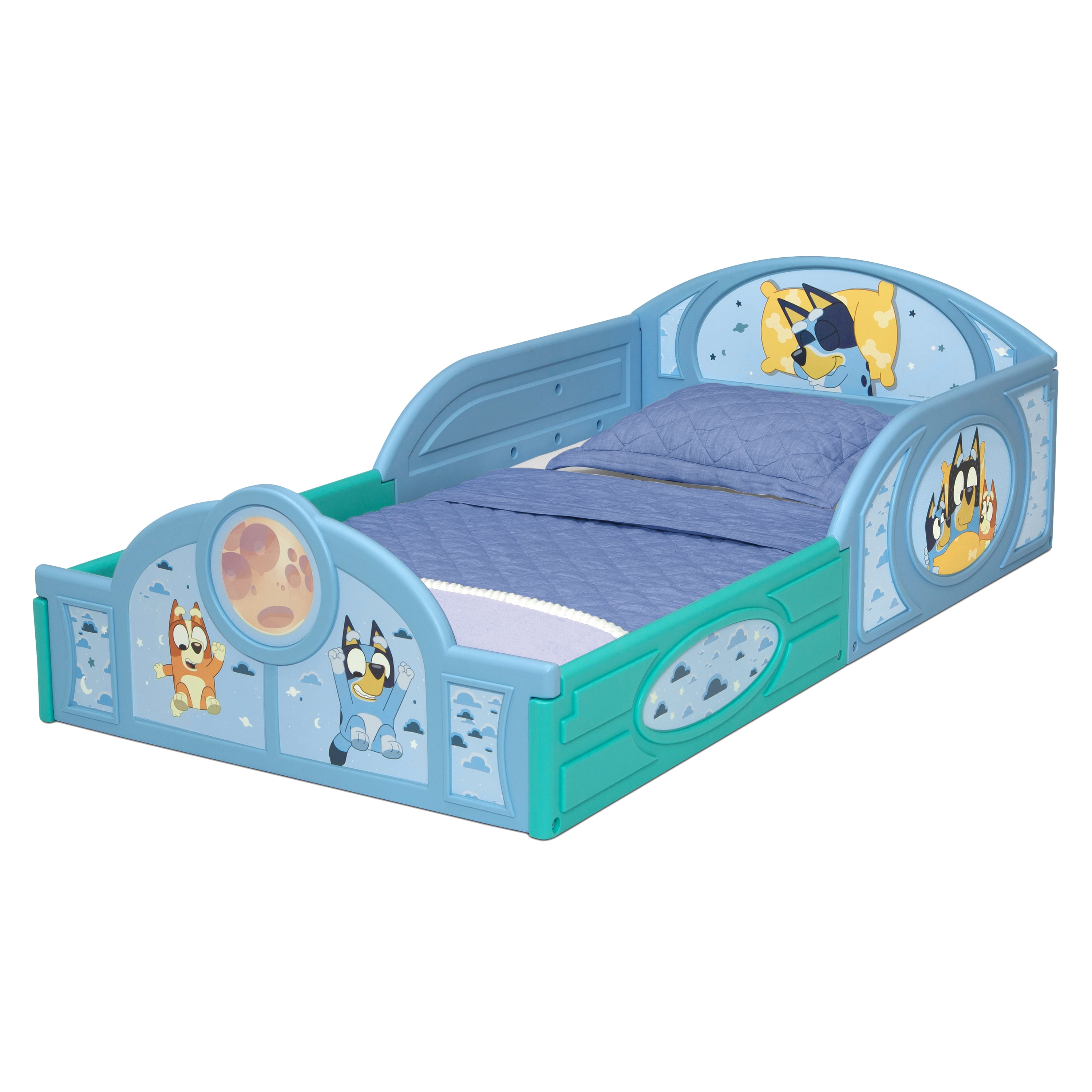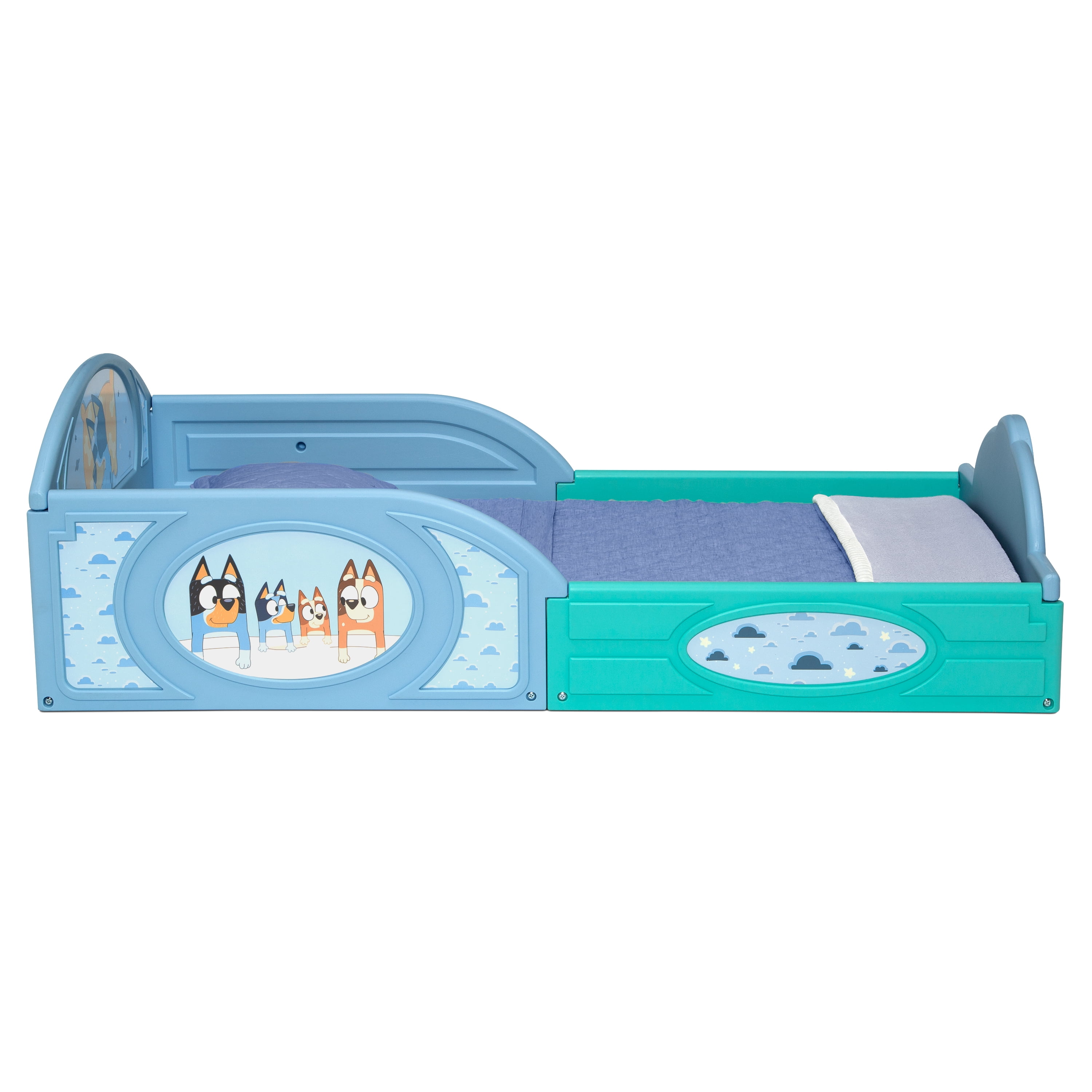 Bluey Sleep and Play Toddler Bed with Built-In Guardrails by Delta Children