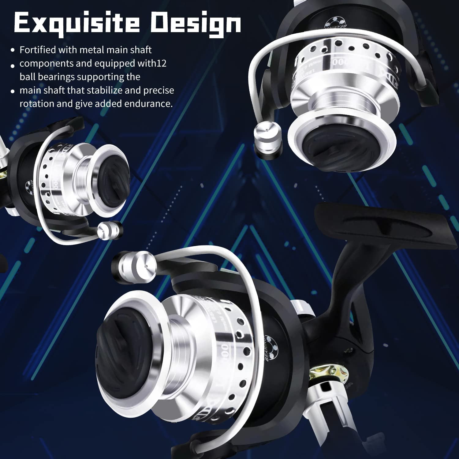 Fishing Rod high density Carbon fiber make rods hard & durable. Stainless Steel Hooded Reel Seats is anti-seawater corrosion; Metal Fore Grip for comfort. Quality Ceramic Guide Sets are Perfectly Spaced for Virtually Friction-Free Line Flow and Maximum Casting Performance and Sensitivity. The front end of the pole is fluorescent, which allows you to observe the swing of the pole tip more clearly at night/dark, and timely pull to prevent the fish from escaping. Fishing Reel Spinning. Material: P66&Metal Body.Ball Bearing: 13BB,SMOOTH Gear Ratio: 5.2:1 Weight: about 396g, It is fortified with metal main shaft and components and equipped with 13 ball bearings supporting the main shaft that stabilize the main shaft for precise rotation and give added endurance. Perfect Christmas Gift For our Fisherman Black Fishing Bag About 17inch Made of 600D oxford fabric which is durable to use. Equipped with two magic pastes to fix the fishing rod. And inside the bag is a zipper net to prevent disorganization of your fishing tackles. With hand carry strap suitable for hand carry, easy to use and carry. Package included 1 x Fishing rod. 1x Fishing reel. 1x Fishing bag. 1x 100M Nylon Fishing Line. 1x Fishing lure set. 2 Pcs x Fishing Floats(as free gift). The telescopic fishing combo is portable, and closed length design is convenient carrying.âNote: The number of guide rings varies with the size of the rod. CUSTOMER SERVICE Products Problems Contact Us Firstly. Get Solution immediatly:1.Refund, 2.Resend New One (No Returning).A Nice Christmas/Birthday Gift for kids or adults who love fishing,can enjoy the weekend with family for Hiking,Backpacking or Traveling!