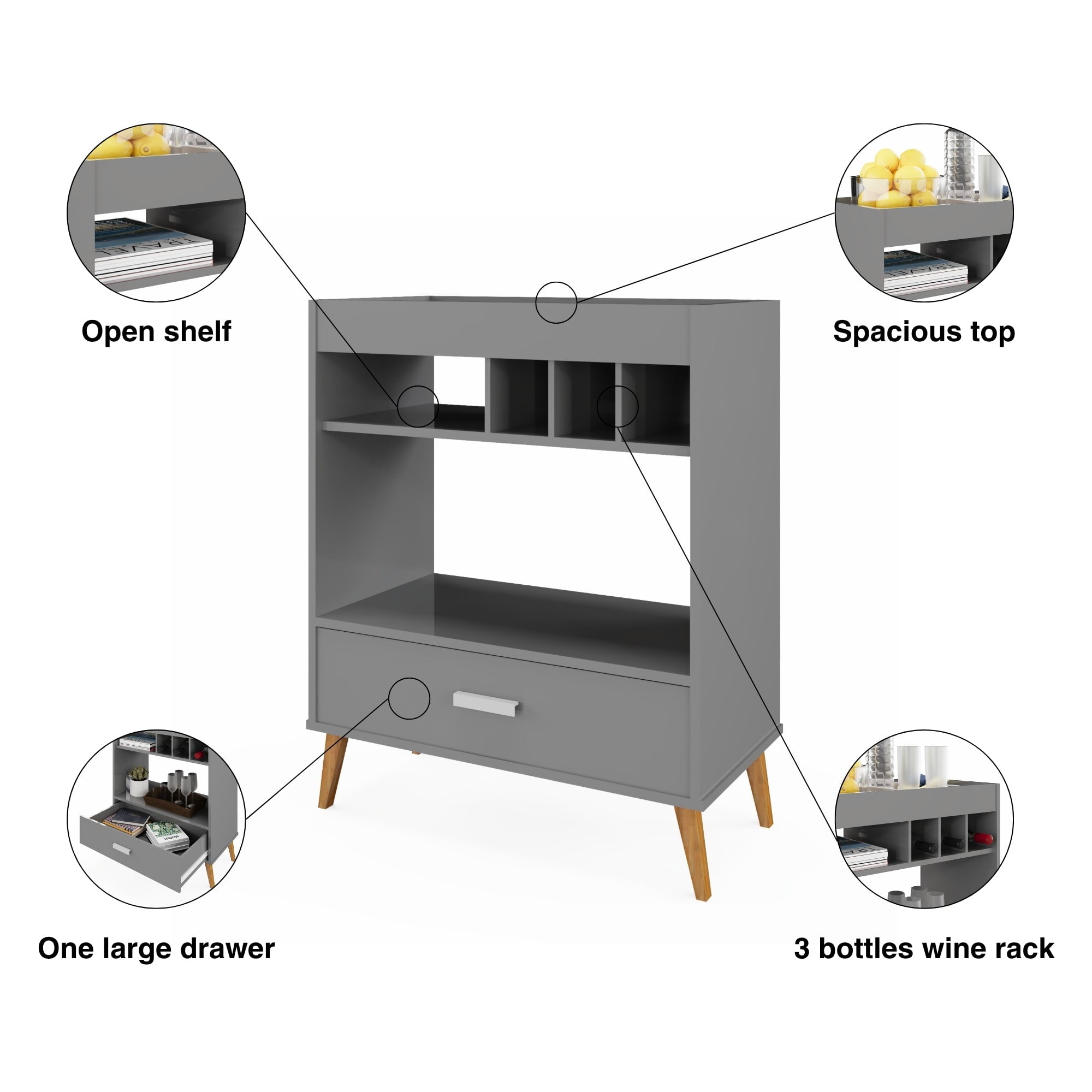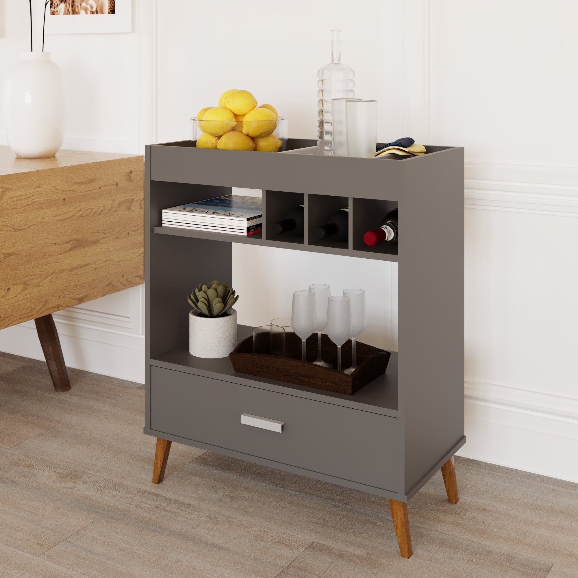 Boahaus Belfast Mini Bar Cabinet with Drawers, Wine Storage, Glass Rack, and Grey Matte Finish – Space-Saving Modern Bar Furniture for Small Apartments