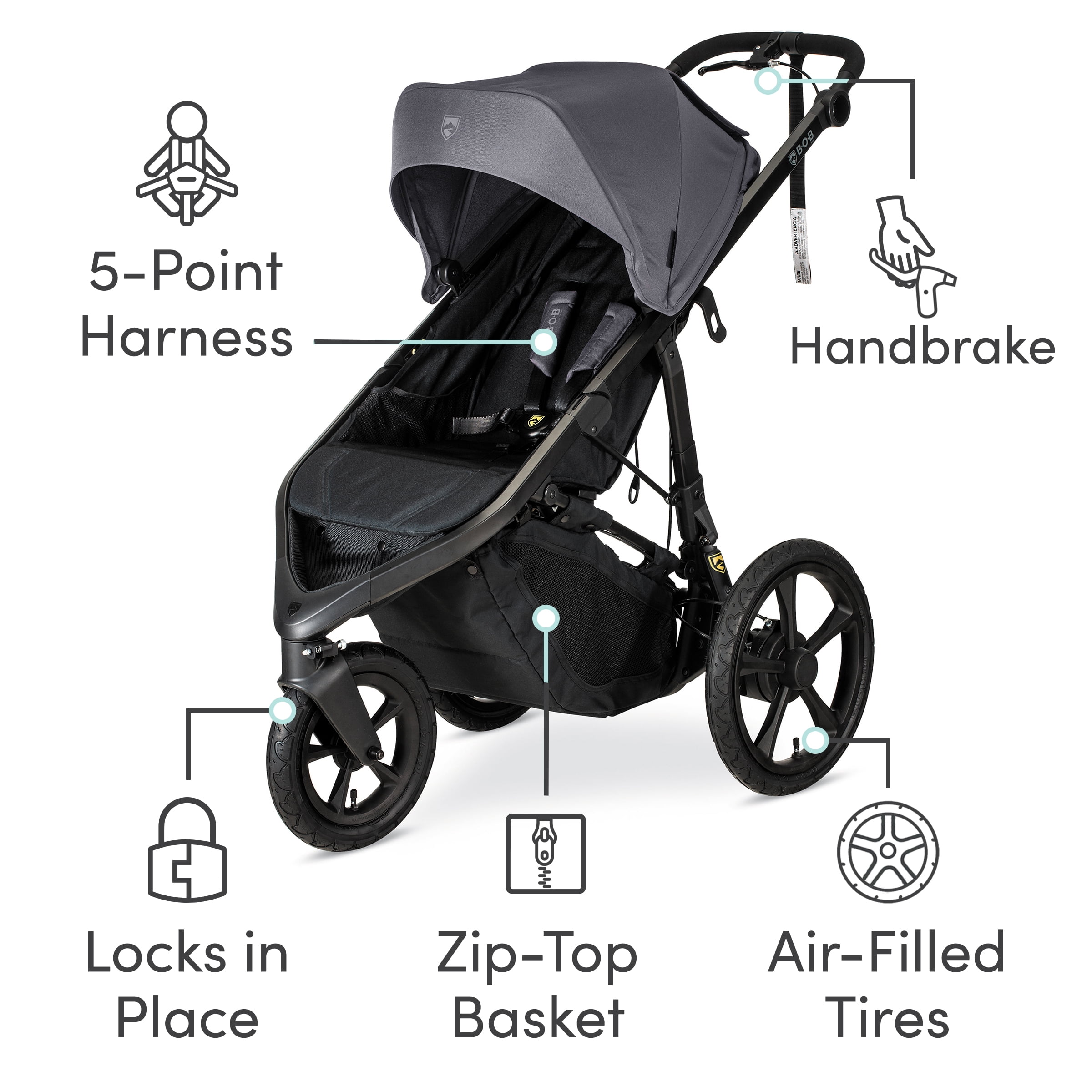 BOB Gear Wayfinder Jogging Stroller with Dual Suspension and Air-Filled Tires, Storm
