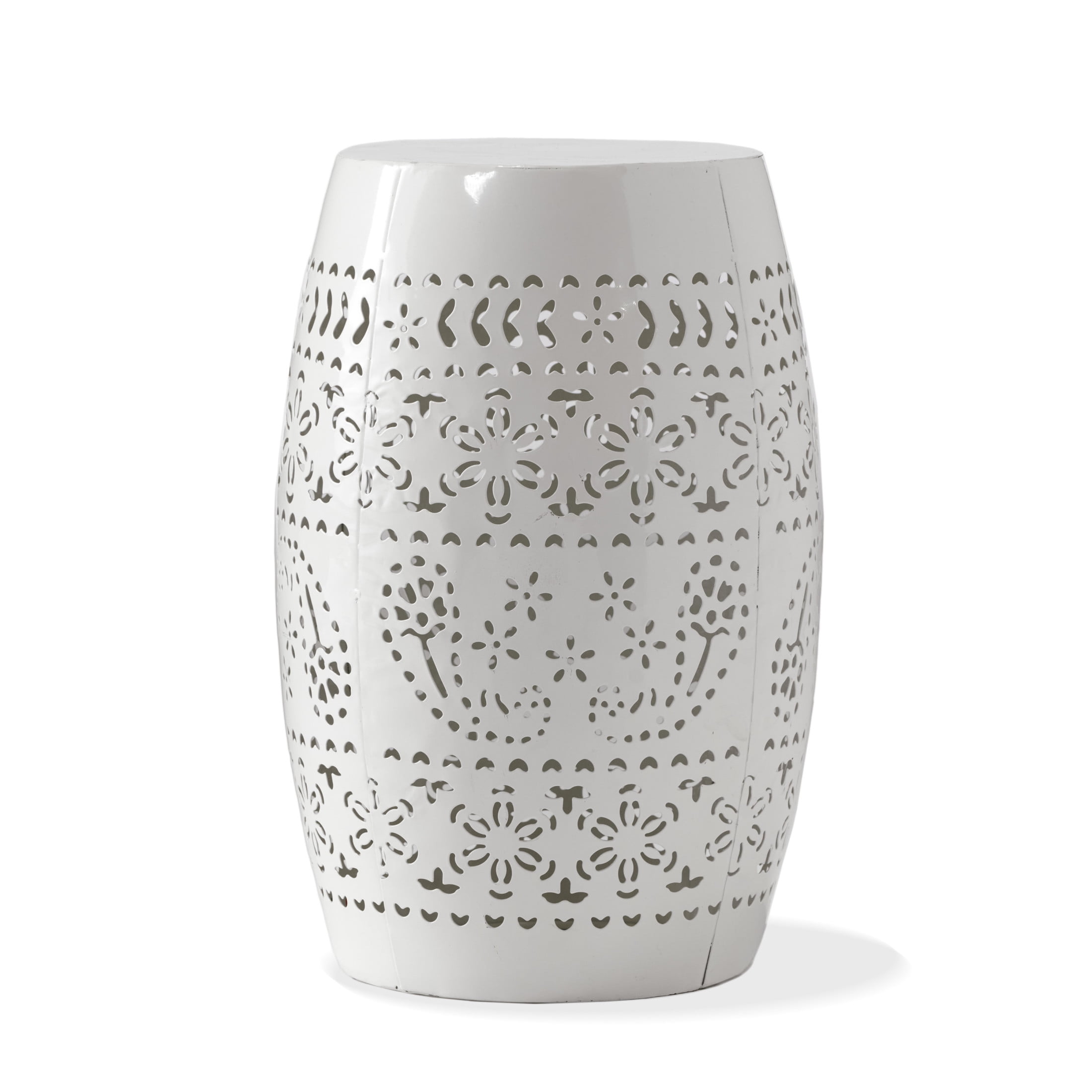 Bobby Outdoor Indoor/Outdoor Iron 12 Inch Side Table, White: Includes: One (1) Table Material: Iron Multiple Color Options No Assembly Required Dimensions: 12.25 inches deep x 12.25 inches wide x 18.00 inches high