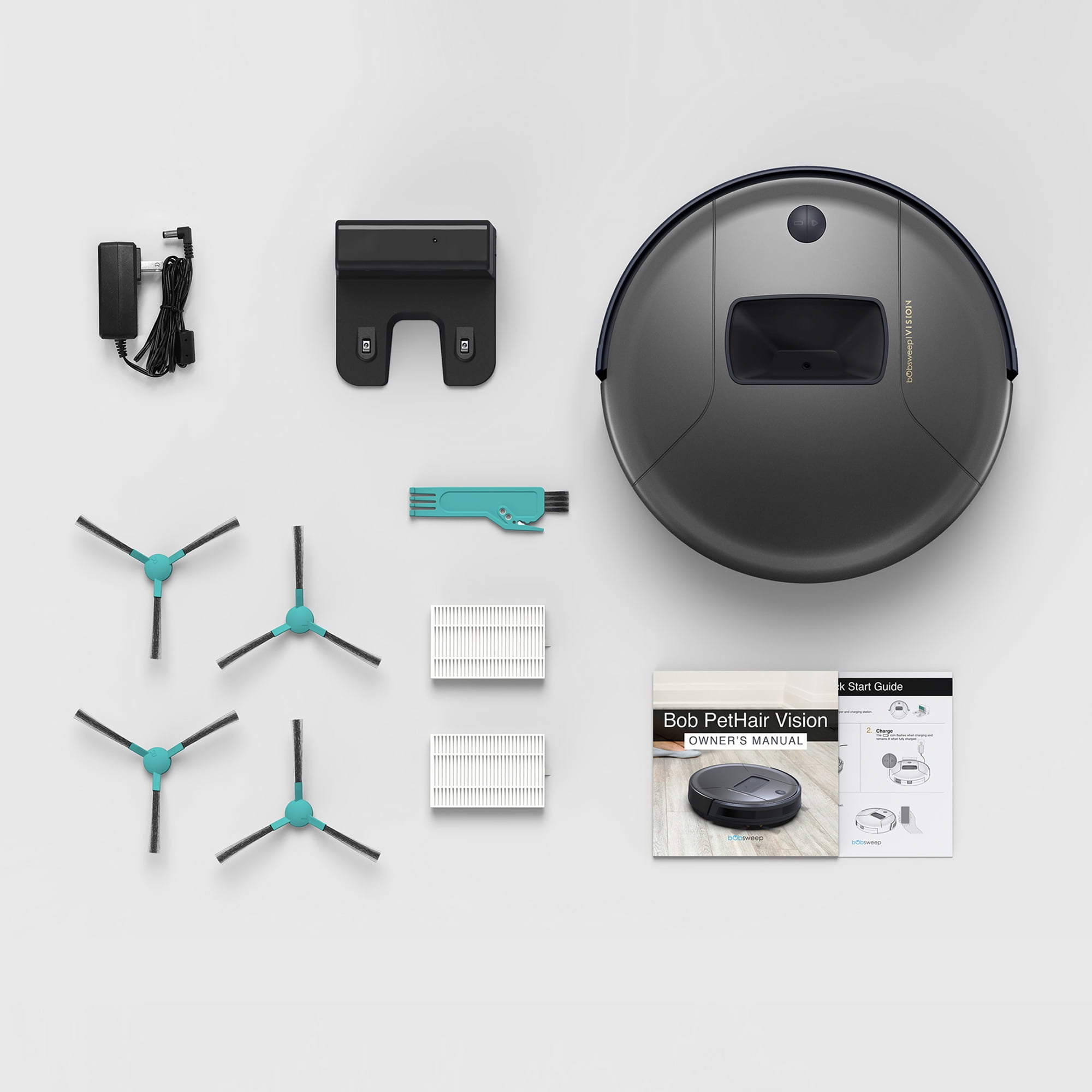 With SLAM, Bob simultaneously maps his environment and cleans your floors. Real-time map is updated continuously to achieve the most accurate picture. High-definition camera scopes out the environment on every clean. Designed to clean tough pet hair using two side brushes, a main sweeper brush, and a powerful vacuum. Dual power, boosted TurboLift™ vacuum is one of the strongest in the industry. 600 mL dustbin is perfect for collecting dirt, hair, and debris. HEPA filtration removes tiny particles and allergens. User can schedule cleaning times and manage cleaning features using the bObsweep App (available for iOS and Android smartphones).