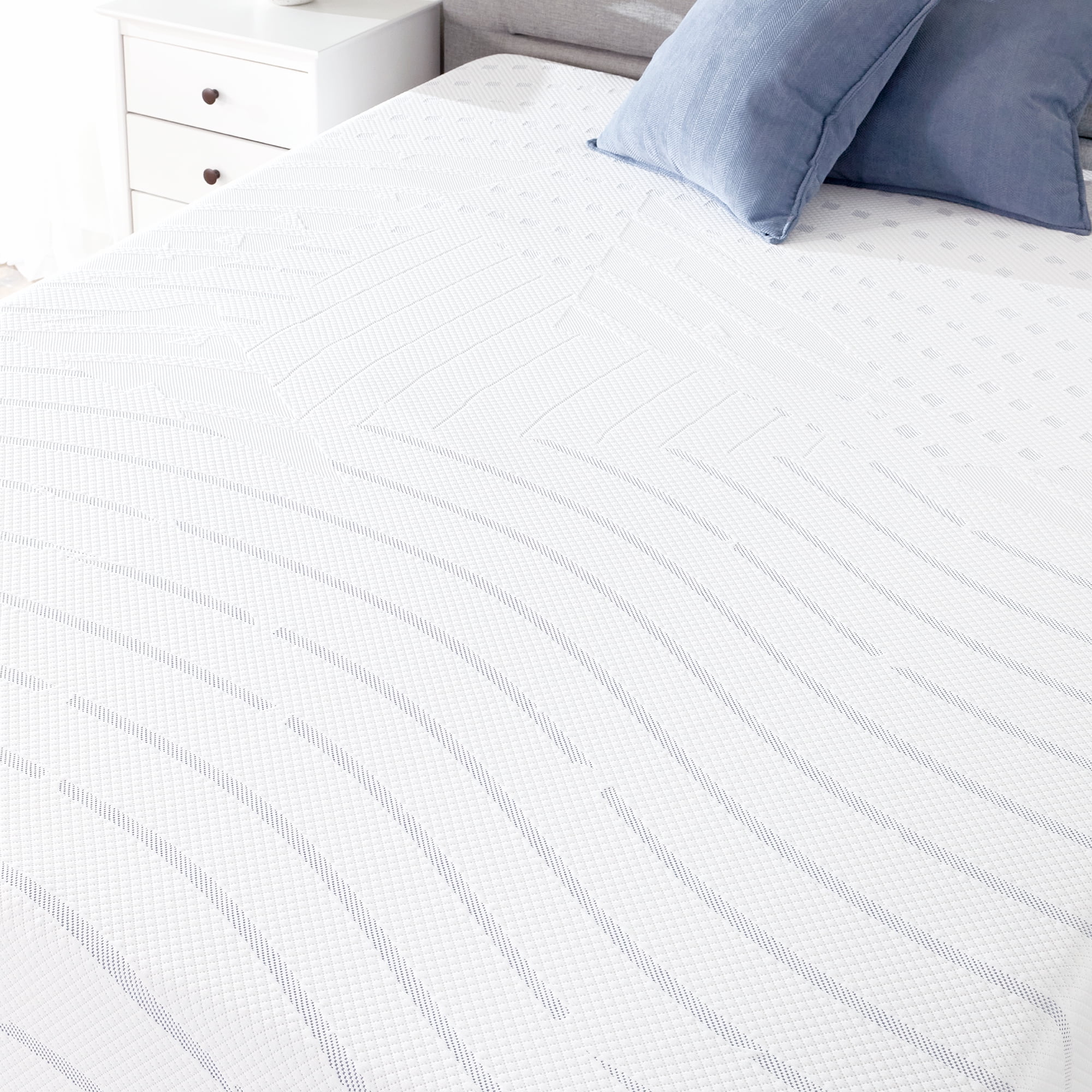 2.5” top layer of gel memory foam for plush comfort and pressure relief 2.5” mid layer of convoluted Flex Comfort foam for airflow and heat dissipation 5” base layer of high-density Flex Support base foam for lasting stability and body support Plush comfort level ideal for those seeking a softer, more enveloping sleep surface Luxury knit mattress cover creates a plush, textured sleep surface, with a soft, luxurious feel Mattress cover design promotes airflow for better breathability and temperature regulation Compatible with all bed types, including adjustable bases, platform beds or box springs Non-skid bottom keeps the mattress securely in place on any foundation Convenient mattress-in-a-box for easy delivery and setup Age Group: Adult, Teen, Universal