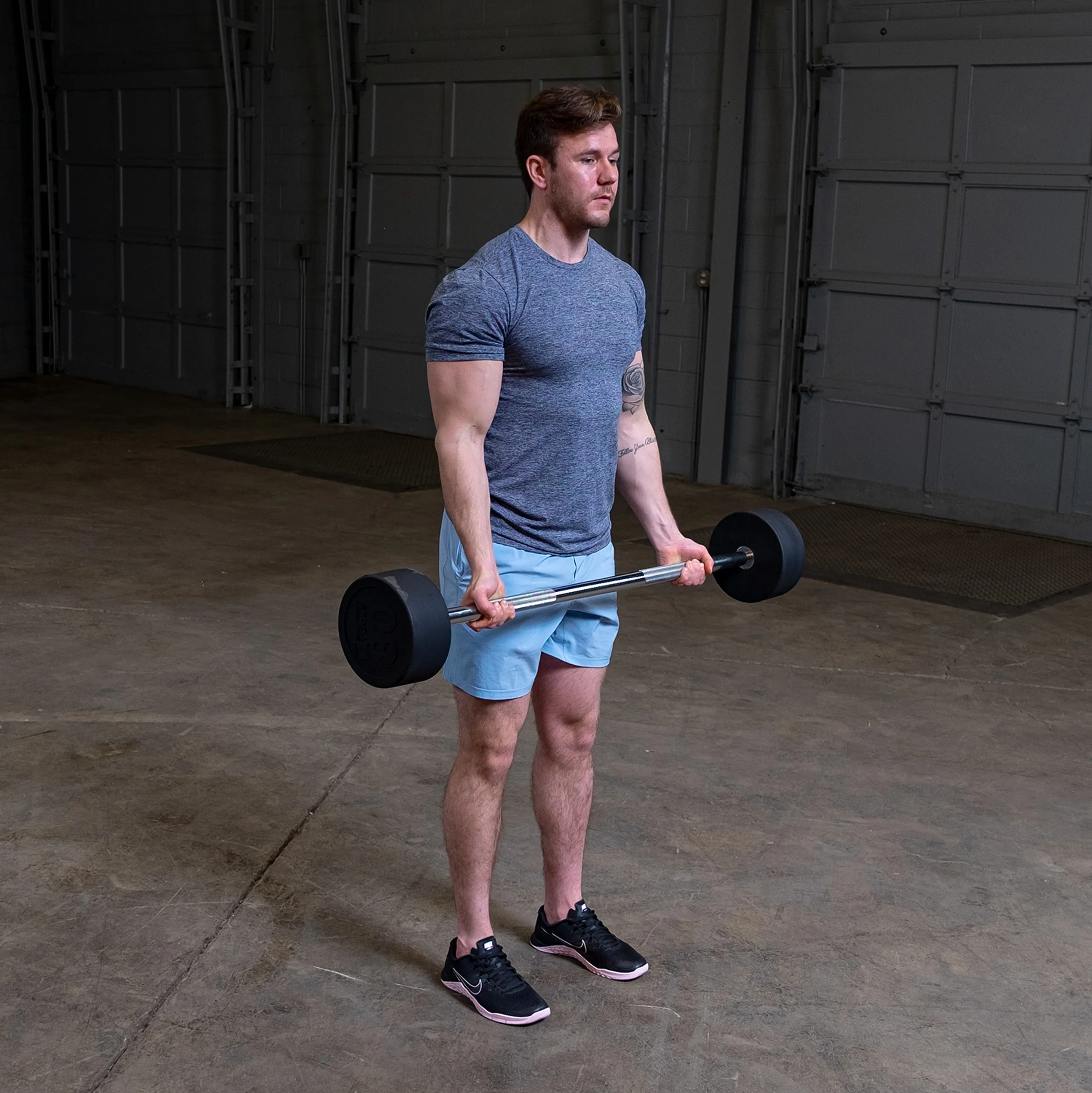 Precision knurled for a secure grip High-quality precision weighted steel encased in durable rubber Body-Solid Tools SBB Fixed-Weight Straight Barbells are available in 10 weight options (20-110 lbs) and offer a convenient, time-saving barbell option Constructed with high-quality precision weighted steel inserts encased in durable rubber, Body-Solid Fixed-Weight Straight Barbells eliminate the need for weight plates and are a perfect fit for any-sized fitness facility Each SBB features precise knurled grips to ensure safe and secure handling even during intense workouts These barbells are constructed with high-quality precision weighted steel encased in durable rubber, ensuring longevity and safety during workouts