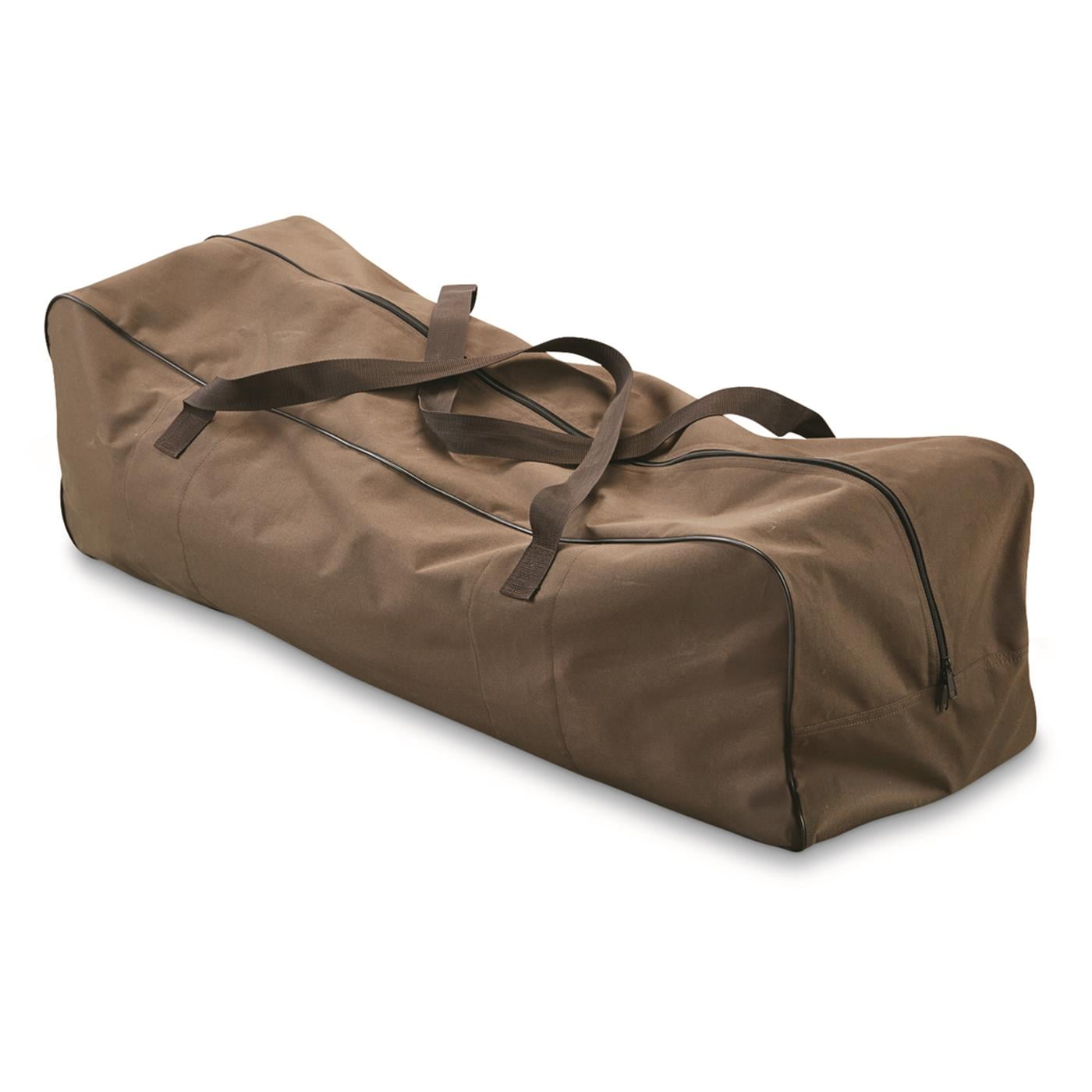 Strong powder-coated steel frame holds up to 500 lbs. Weather-resistant 600-denier polyester/12-oz. waxed cotton canvas Thick padding on back and sides for all-day comfort 2 interior accessory pockets Exterior drink pocket Frame folds for stash-and-go convenience Includes storage bag for easy transport