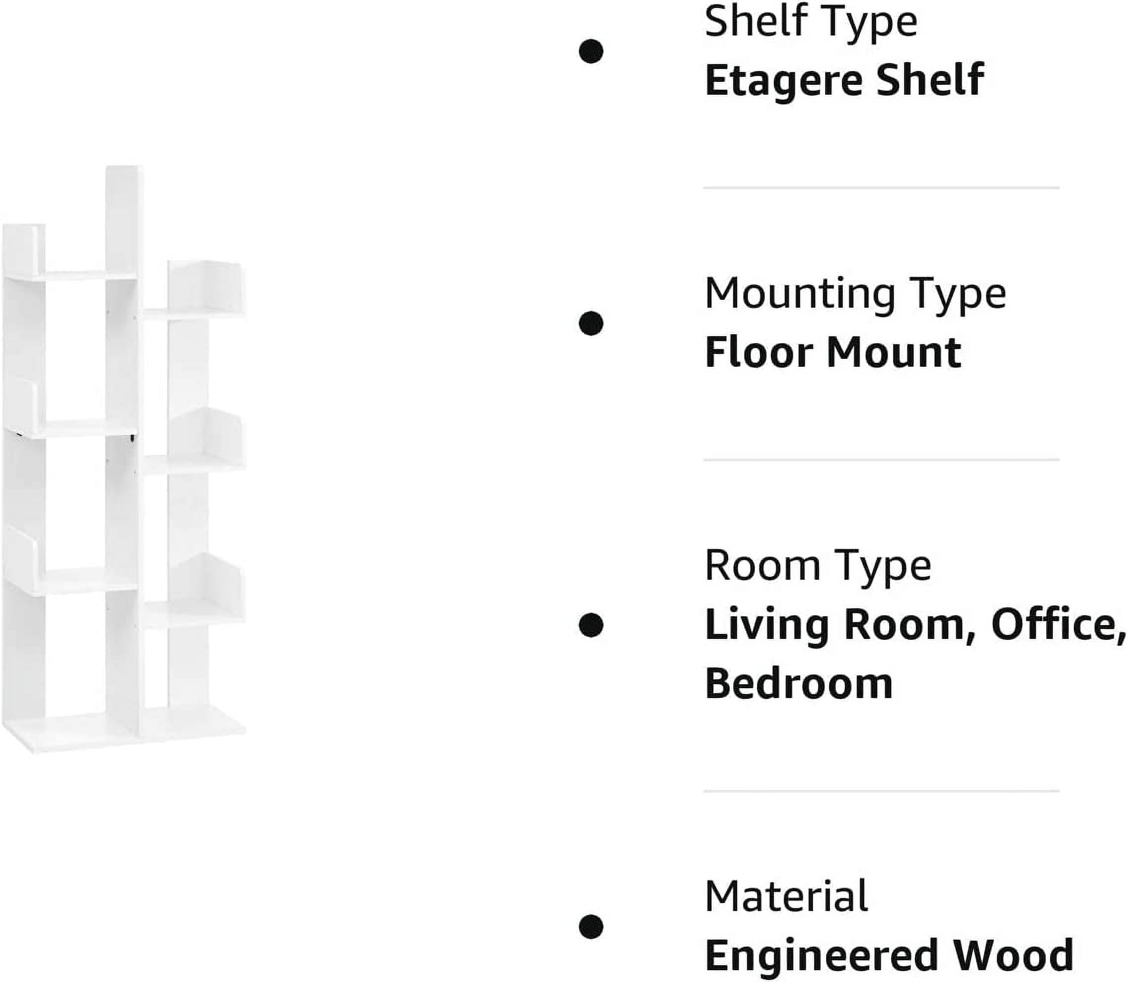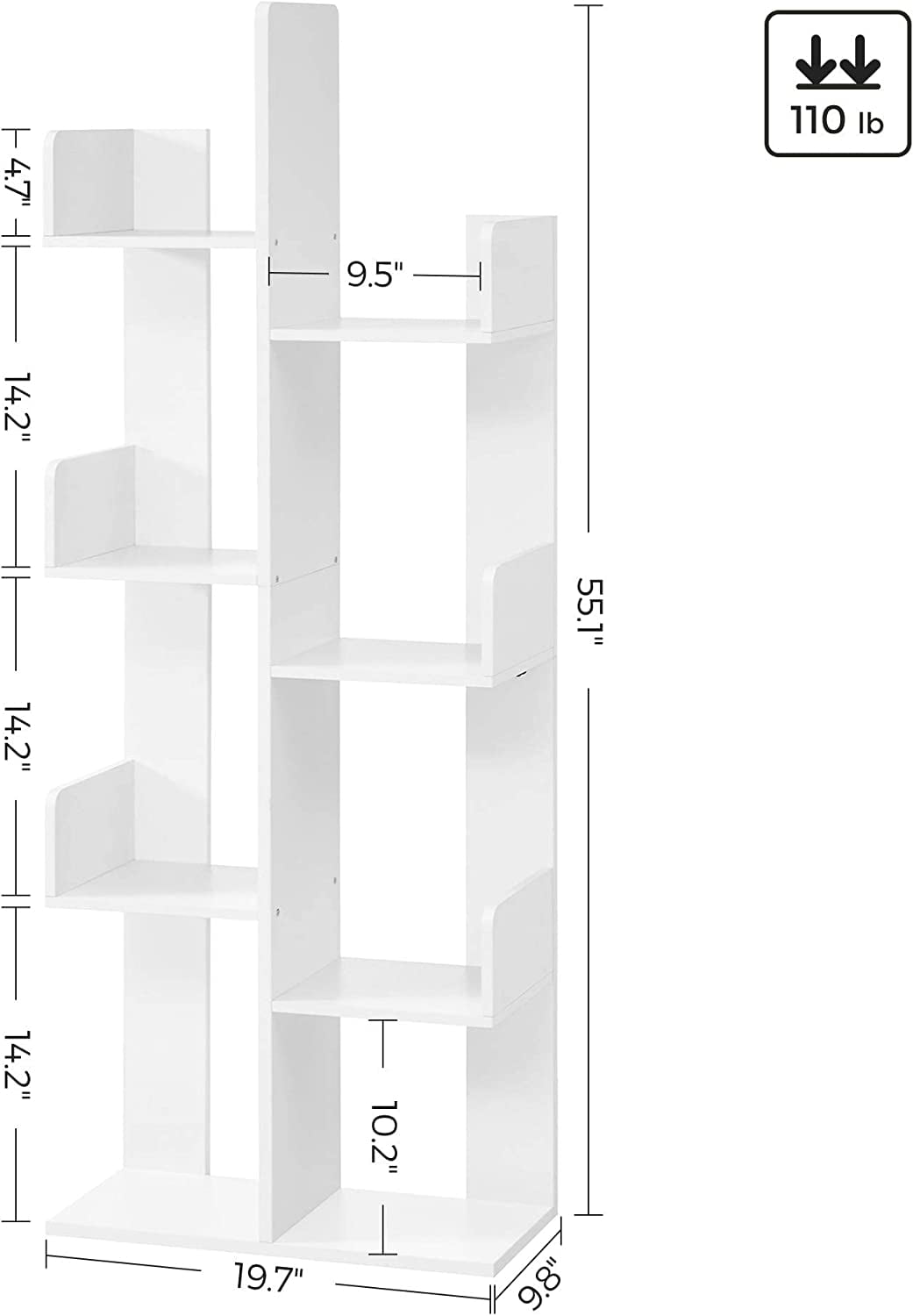Bookcase Tree-Shaped Bookshelf with 8 Storage Shelves Rounded Corners 19.7 x 9.8 x 55.1 Inches White