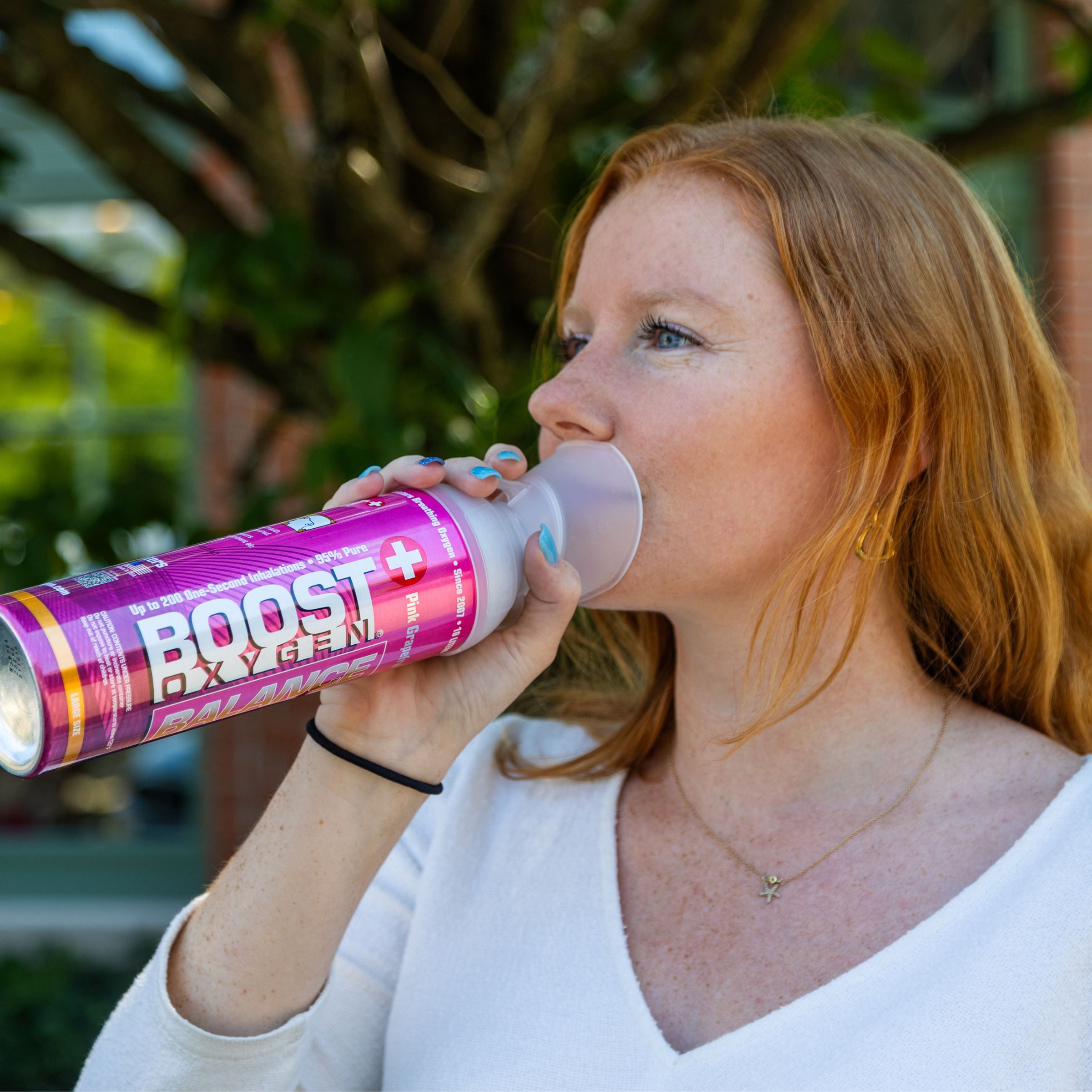 Boost Oxygen is an all-natural respiratory support product for aerobic recovery and performance. Simple and safe to use, the BALANCE Pink Grapefruit Portable Canned Oxygen provides supplemental oxygen wherever you need it. It is pure and concentrated supplemental oxygen which is nearly 5 times the amount of oxygen we breathe in the air alone, which is only 21% at sea level. Pink Grapefruit aroma has been known to ease stress, uplift mood and refresh your senses. Supplemental oxygen has always benefitted so many people for so many different reasons. From altitude acclimation to athletes to anyone looking for a way to catch their breath. Since 2007, Boost Oxygen has made portable supplemental oxygen available to everyone without a prescription. Boost Oxygen comes in a convenient, easy-to-use, and portable canister that is safe with no chemicals, propellants, or side effects. It is an excellent choice for athletes, older adults, people at high altitudes, and people who live in areas with poor air quality. People with trouble catching their breath love the accessibility as well. It can help you feel energized and refreshed with just a few breaths. Feel better, recover faster, and improve performance with the BALANCE Pink Grapefruit Portable Oxygen Canister from Boost Oxygen.