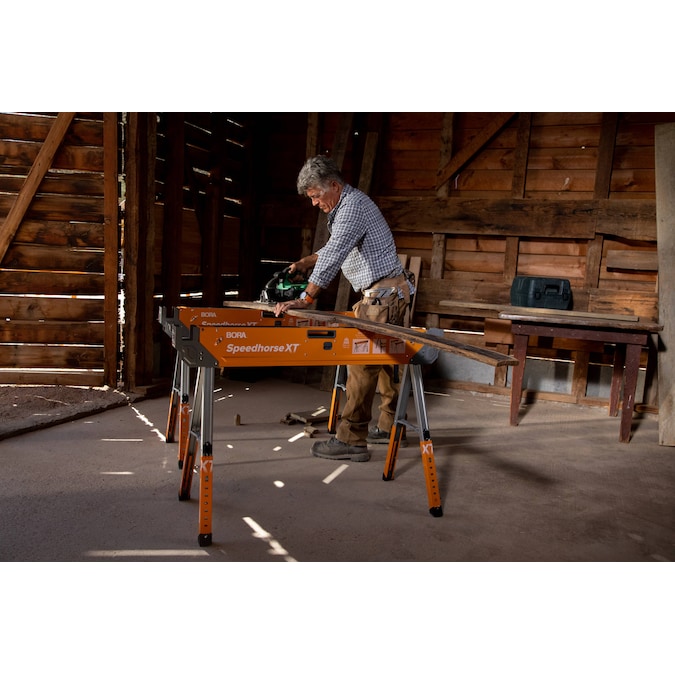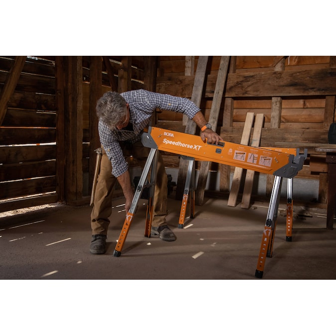 How do you upgrade the ultimate jobsite upgrade? Give it adjustable legs. We took our bestselling PM-4500 Speedhorse sawhorse and gave it individually extendable legs. The Speedhorse XT is no ordinary sawhorse, it deploys 30x faster than conventional saw horses and can be adjusted from 30 to 36”! This means you can raise your Speedhorse XT to the height you need to work efficiently and without pain. Each leg can be adjusted individually to compensated for un-even worksite terrain. The Speedhorse XT is the ultimate upgrade for your job site, workspace, garage, or workshop.