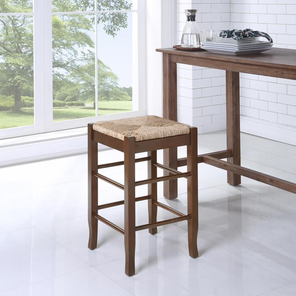 Boraam Square Rush Counter Stool: Frame construction: Solid hardwood 24” counter stool Hand-woven sea grass rush seat Tapered leg bottom for stability Double stretchers on each side (8 stretchers total) for strength and stability Ready To Assemble construction (RTA) : all tools are included making assembly easy as 1, 2, 3! Available in 4 different colors finishes: oak, white, cappuccino, and black Pairs nicely with Boraam’s Powellton and Florence Pub Tables