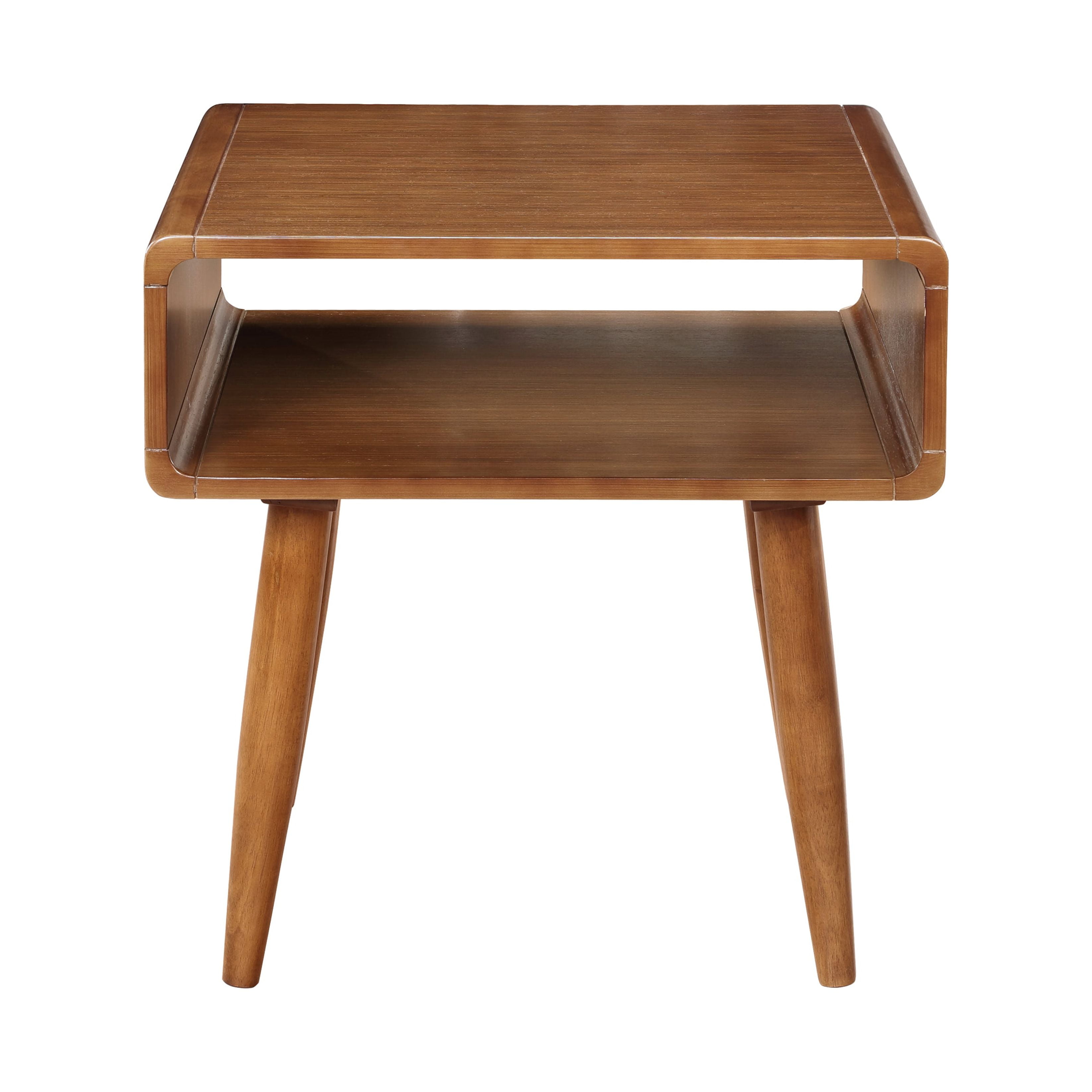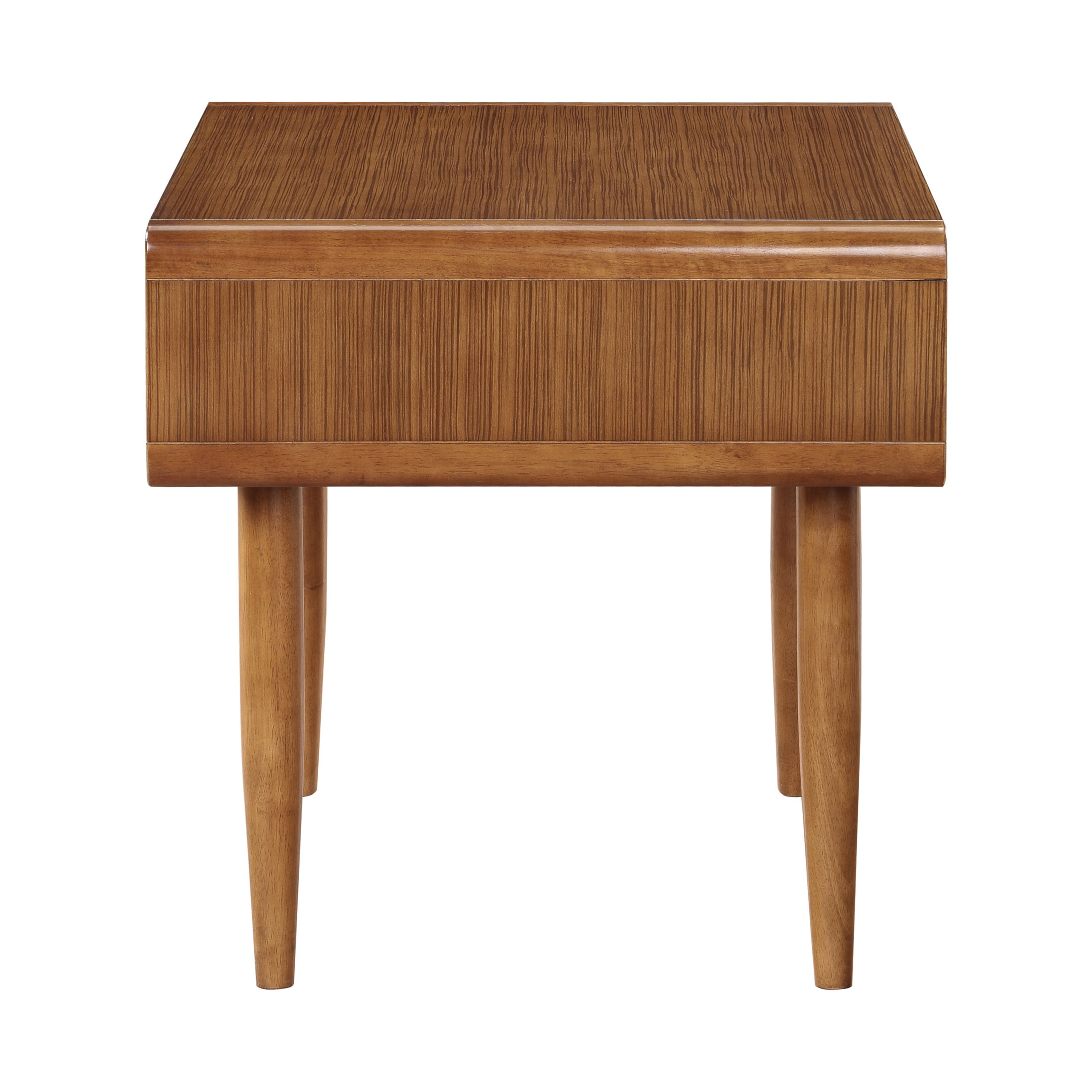 The Alborg End Table is a dream combination of form and function that looks good, wherever you place it. A single open cubby provides convenient storage, whether you use this piece as an end table or a nightstand. Its mid-century design inspiration is evident in the gently rounded corner and tapered, jutting legs. Made from solid rubberwood, the end table is enhanced by exotic Zebrano veneers and a rich walnut finish.