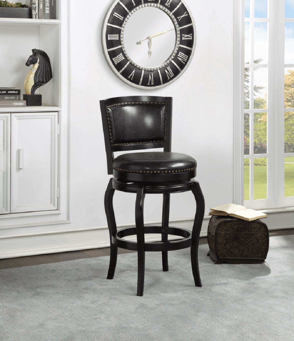 Augusta Swivel Bar Stool Constructed with solid hardwood 360-degree steel ball-bearing swivel plate Slightly flared legs for stable seating Durable footrest Black faux leather upholstery High-density foam cushion Seat height available in counter (24 inches), (29 inches) and (34 inches) bar heights. Available in black, cappuccino, and cherry finishes Cappuccino available in black or brown faux leather Due to differences in monitors, mobile display settings, and home lighting, as well as variances in the finishing process, colors of products may appear different from those shown on the site Augusta Swivel Bar Stool Constructed with solid hardwood 360-degree steel ball-bearing swivel plate Slightly flared legs for stable seating Durable footrest Black faux leather upholstery High-density foam cushion Seat height available in counter (24 inches), (29 inches) and (34 inches) bar heights. Available in black, cappuccino, and cherry finishes Cappuccino available in black or brown faux leather Due to differences in monitors, mobile display settings, and home lighting, as well as variances in the finishing process, colors of products may appear different from those shown on the site Augusta Swivel Bar Stool Constructed with solid hardwood 360-degree steel ball-bearing swivel plate Slightly flared legs for stable seating Durable footrest Black faux leather upholstery High-density foam cushion Seat height available in counter (24 inches), (29 inches) and (34 inches) bar heights. Available in black, cappuccino, and cherry finishes Cappuccino available in black or brown faux leather Due to differences in monitors, mobile display settings, and home lighting, as well as variances in the finishing process, colors of products may appear different from those shown on the site