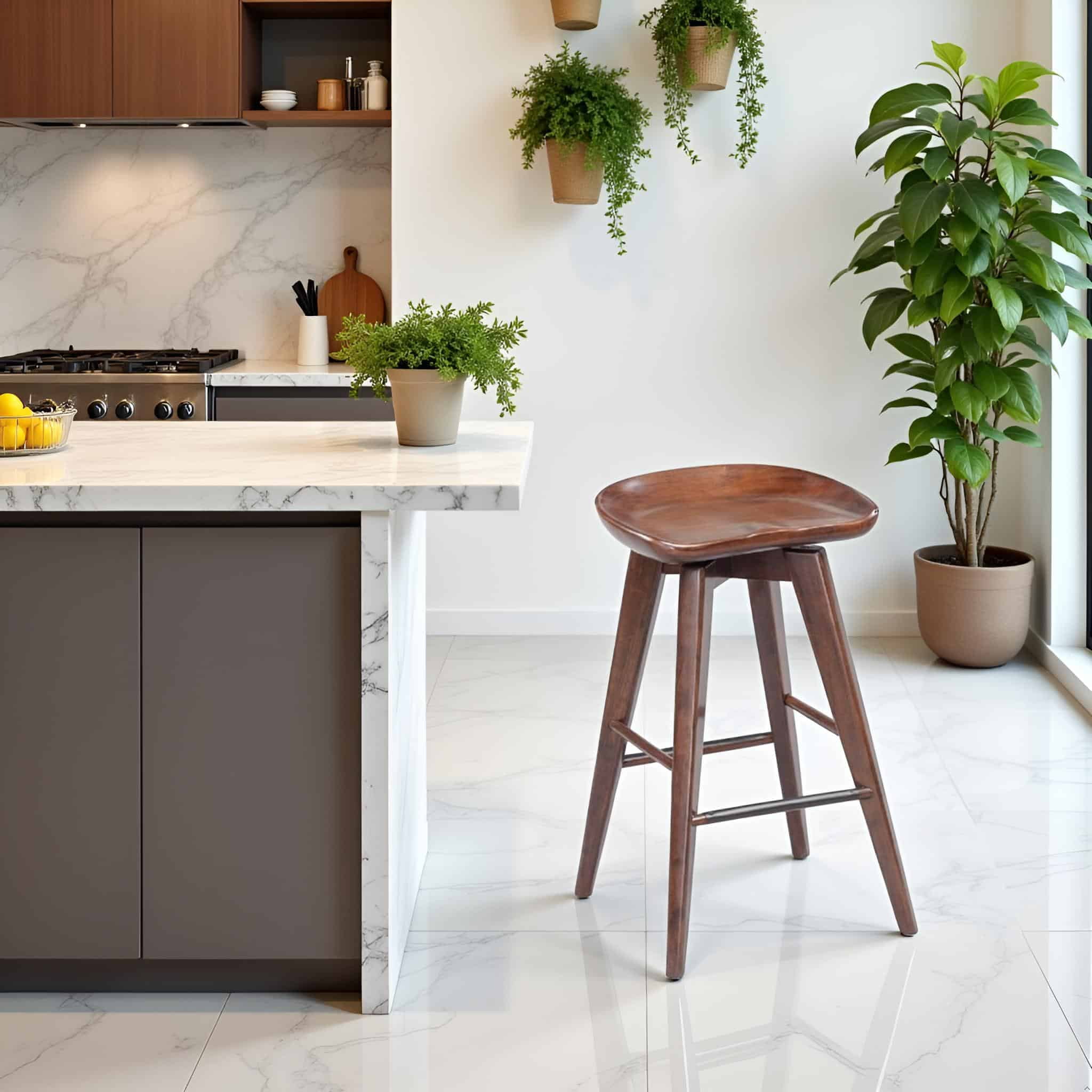 Boraam Bali Backless Swivel Rubberwood Counter Stool in Cappuccino Finish