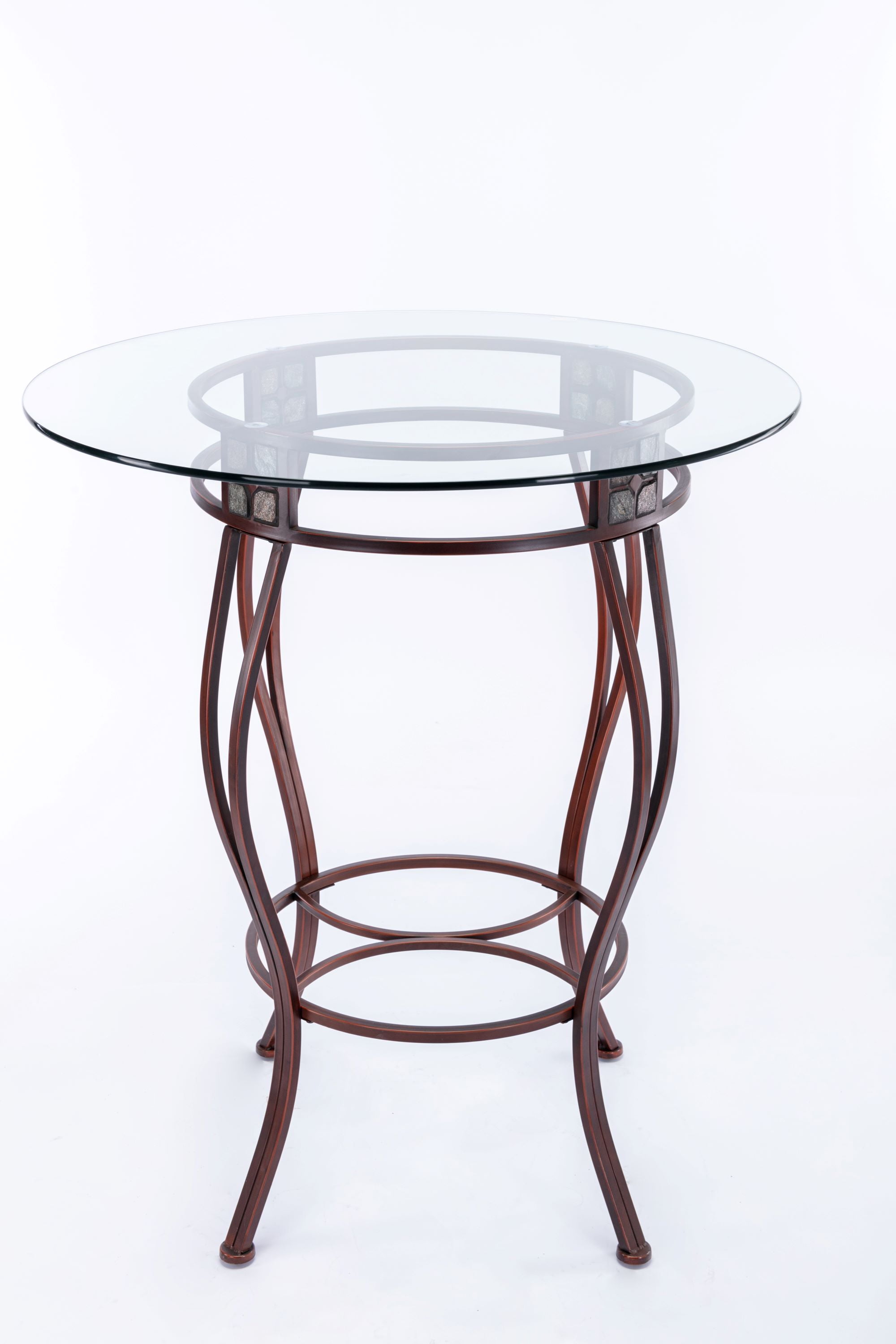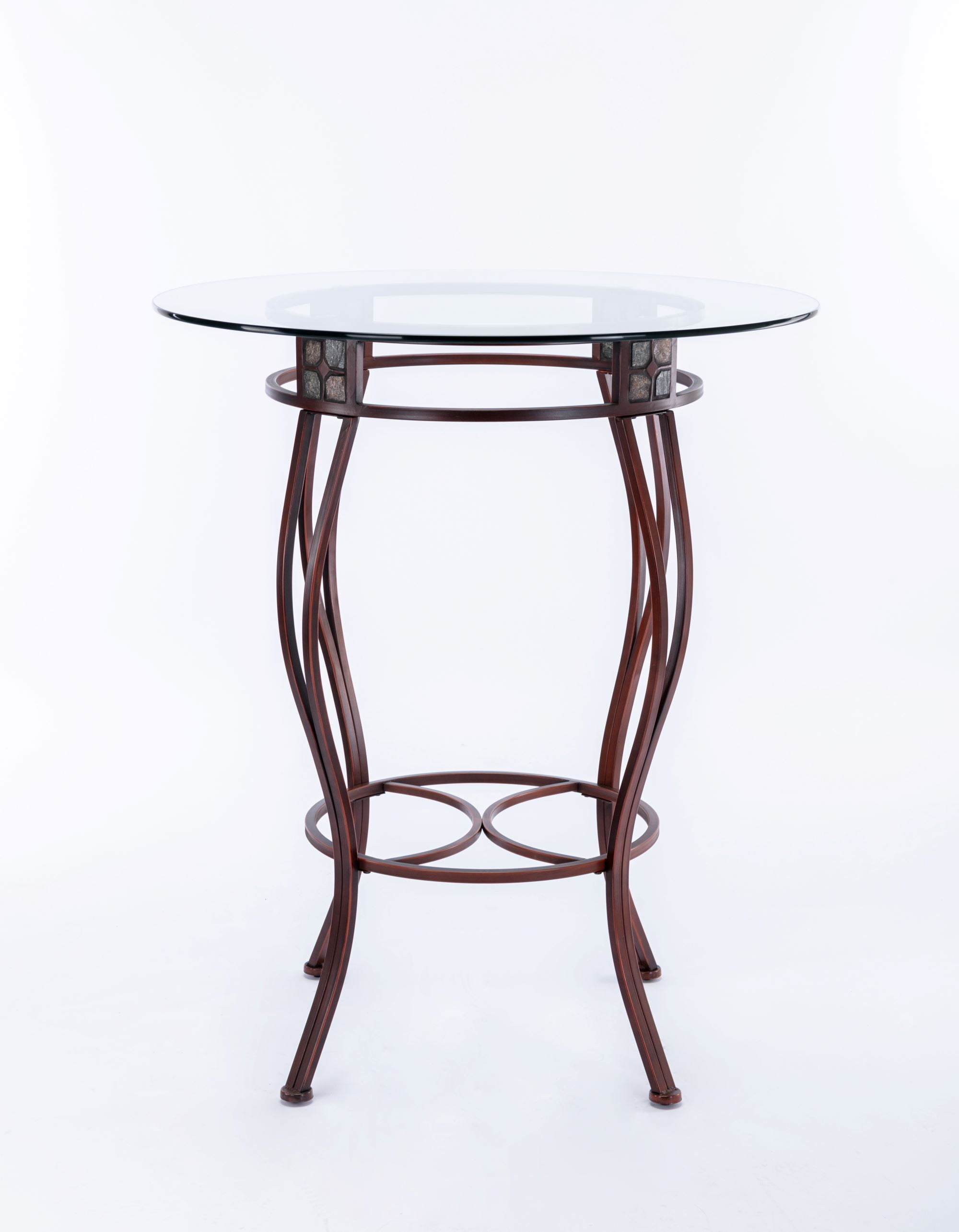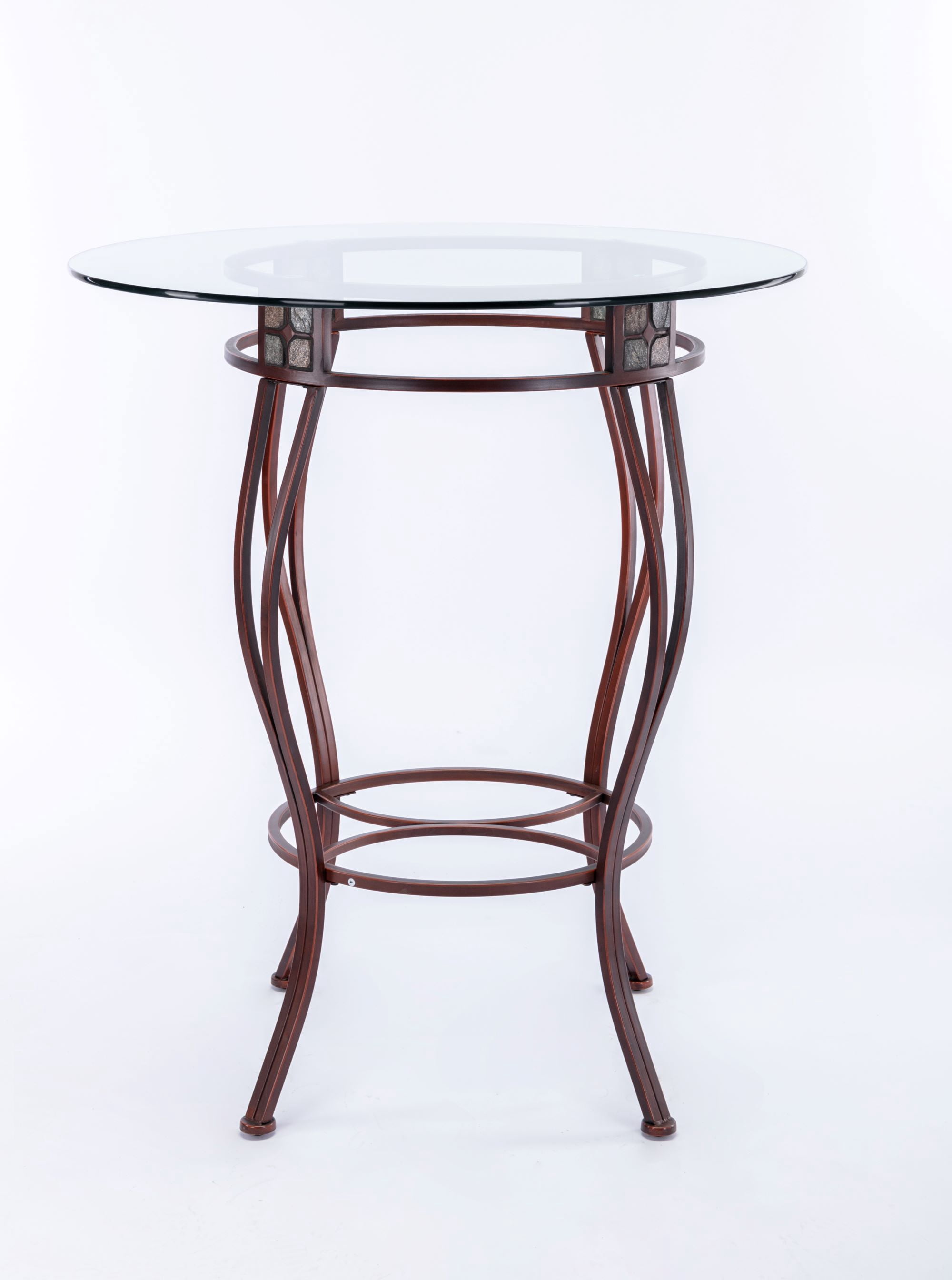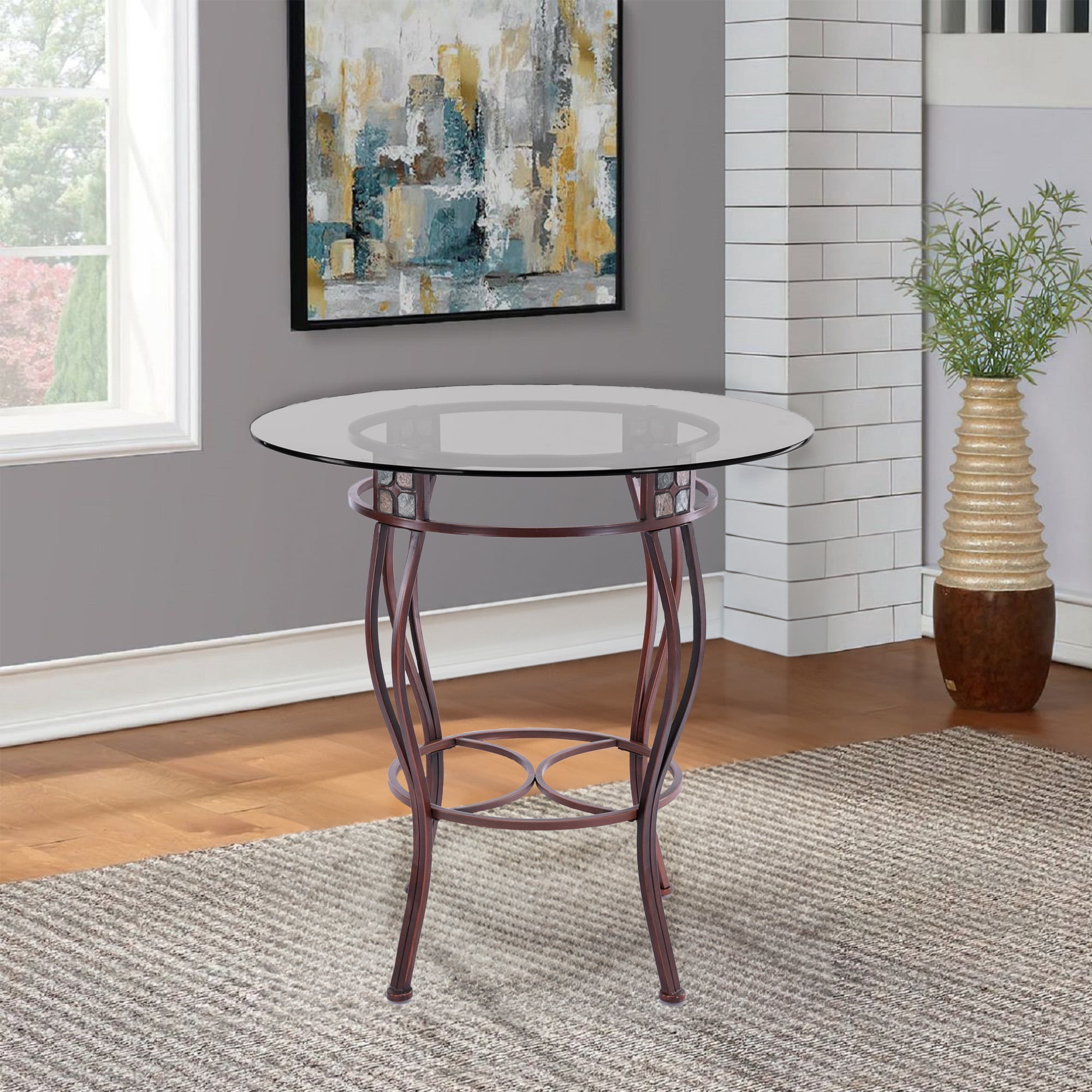 There are so many ways to use the Beau Metal Pub Table that you might want to get two of them. Its versatile design means you can use it anywhere. Place the Beau in a game room and it becomes a pub table. In your breakfast nook, it transforms into a delightful bistro table. Or even place it in the corner of an open-space living area to use as a decorative console table. Be sure to pair this pub table with the matching Beau Swivel Stools from Boraam and create an intimate pub set! The table is available in 36 or 42 inch heights. Features: Bronze finish Beveled glass table top Sturdy metal frame Earth tone slate mosaic around table apron Easy to assemble Specifications: Product Dimensions: 42″ H x 36″ W x 36″ D Product Weight: 52 lbs Assembly Required: Yes Commercial/Residential: Residential Use only