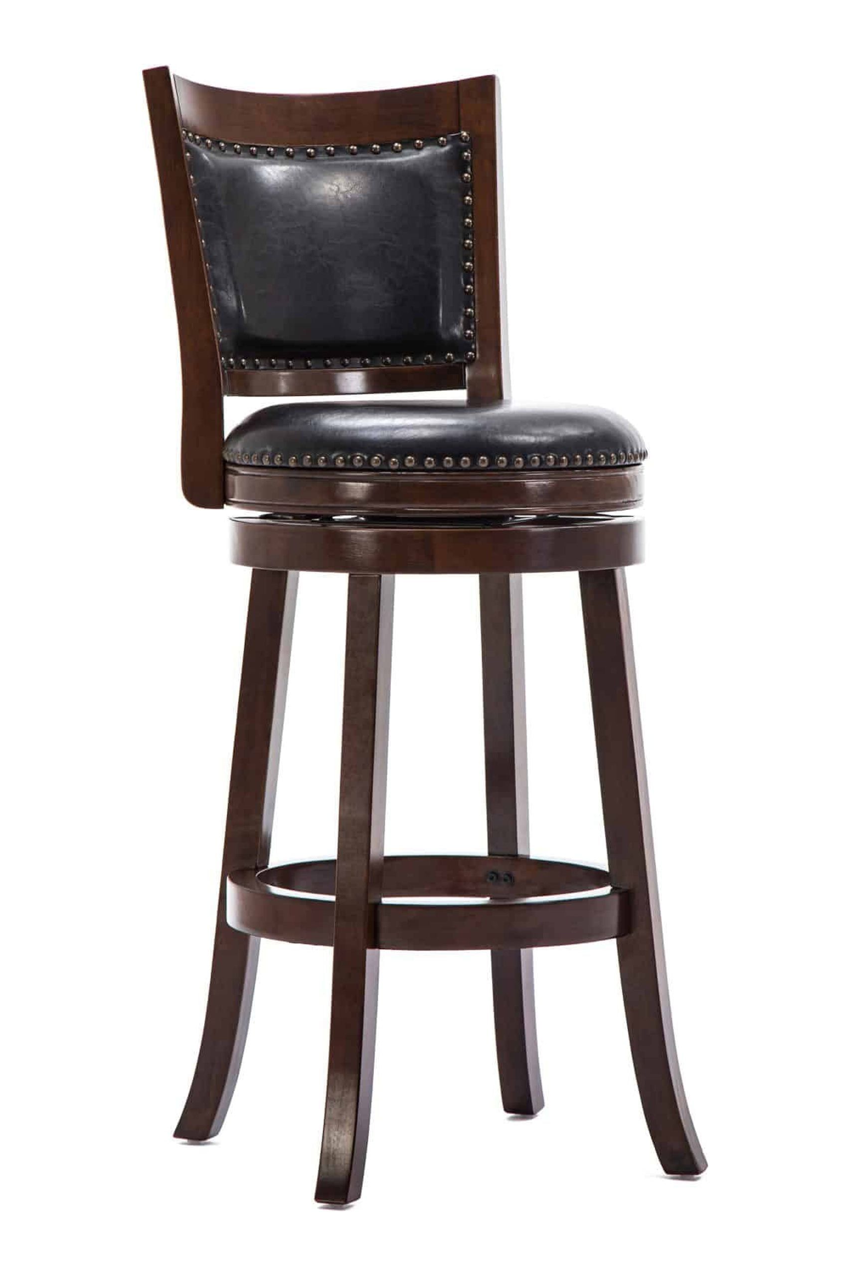 Upgrade the look of your dining space with the elegant Boraam Bristol 29″ Swivel Bar Stool. The sleek, well-built frame combines with embellished upholstery to create an attractive look. This leather swivel bar stool is made from quality materials, including solid hardwood and real bonded leather. This classic-looking piece is designed to be stylish. The high-density foam used for the seat and backrest offers optimal comfort. Additionally, the steel swivel plate features a full ball-bearing design for an effortless 360-degree turn. Manufactured with precise attention to detail, this item embodies durability, comfort and style.