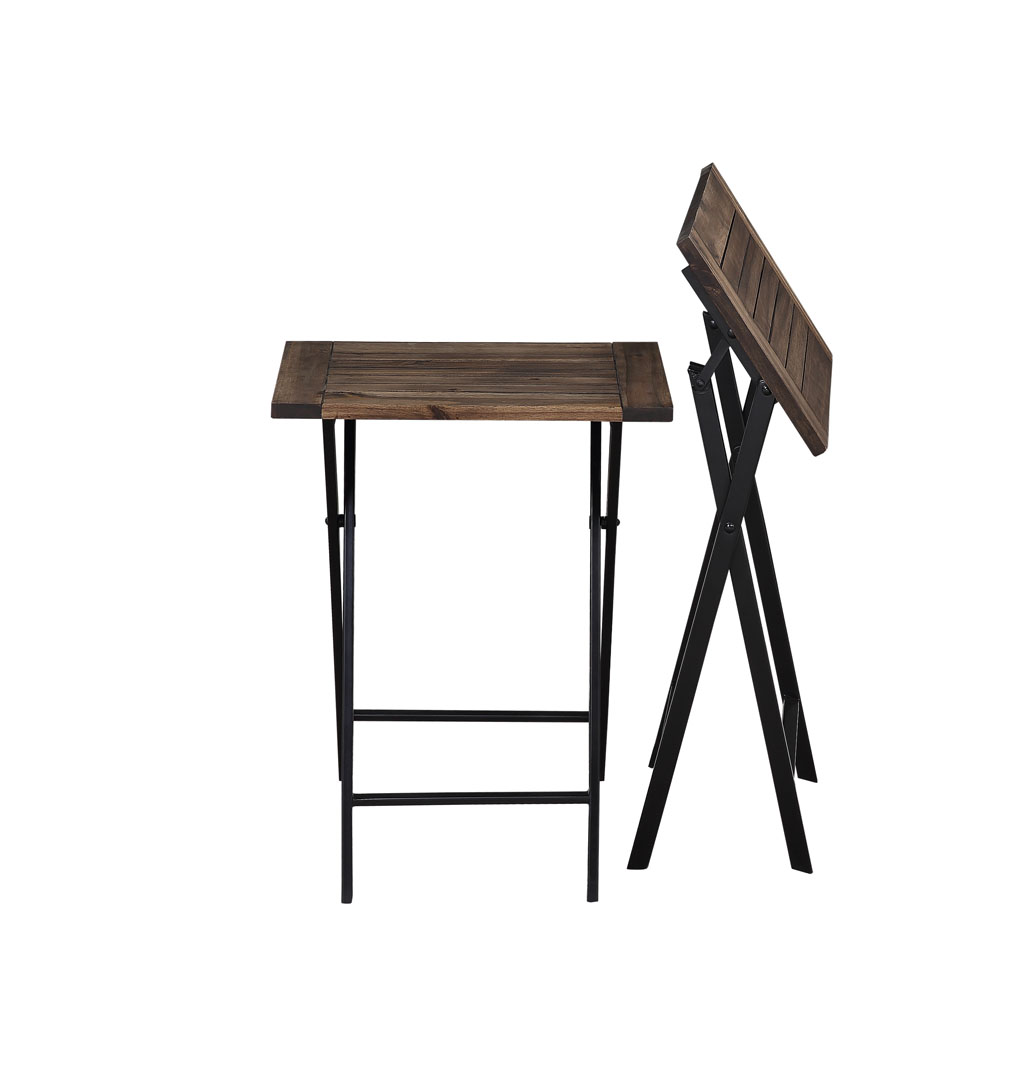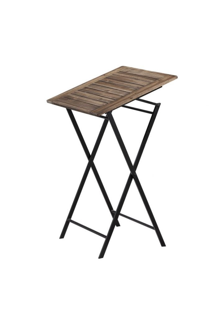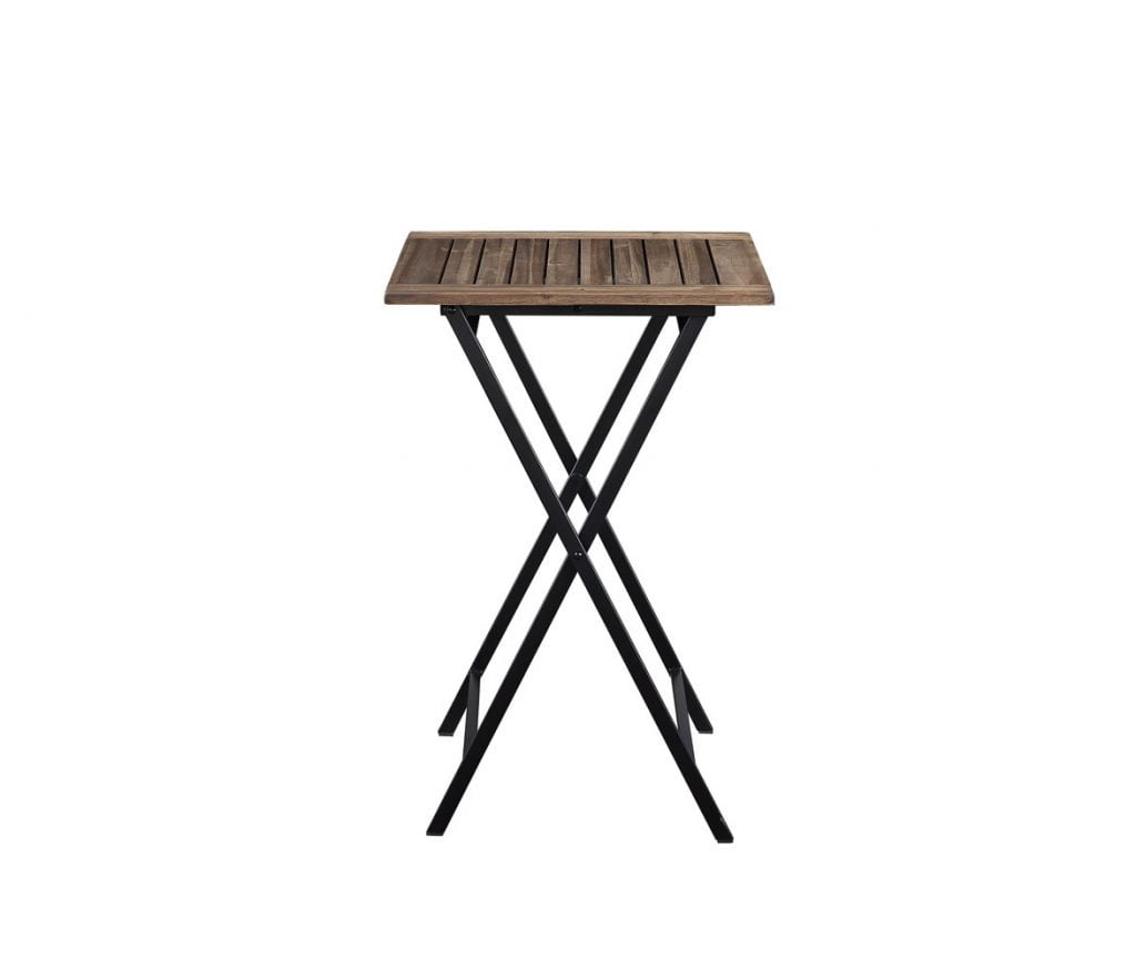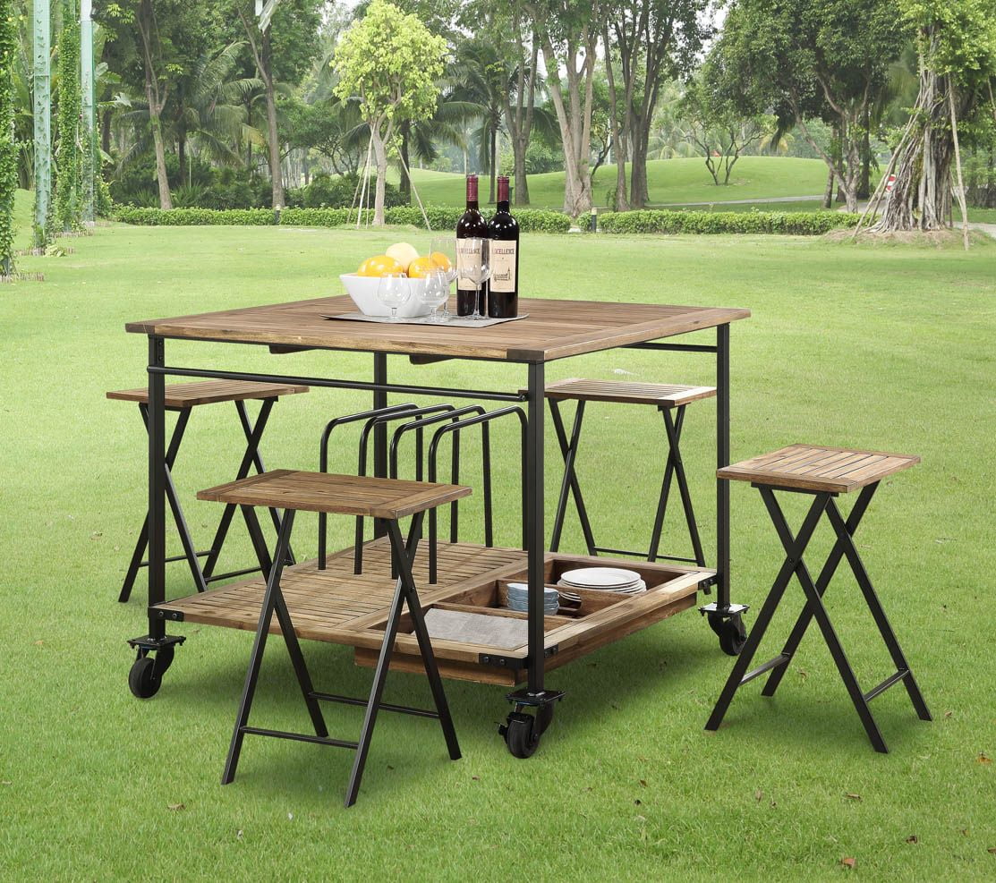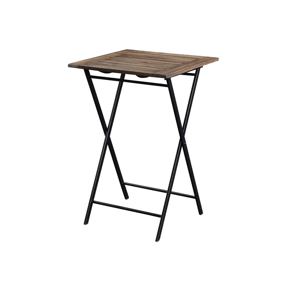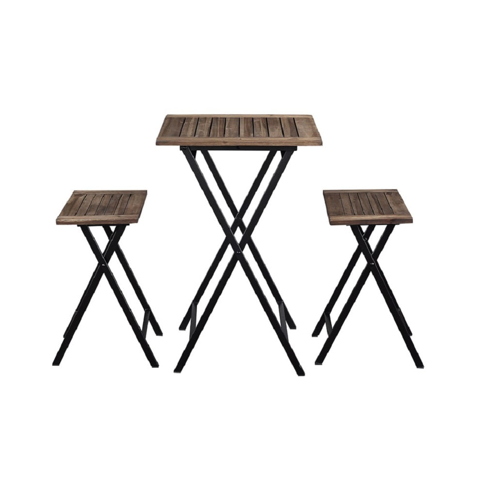 Constructed with acacia wood and metal Natural finish Suitable for indoor and outdoor use 2 stools and 1 table included Folding set for easy storage and transport Table dimensions: 23.75″ W x 23.75″ D x 36.75″ H Stool dimensions: 19.25″ W x 12″ D x 24.25″ H