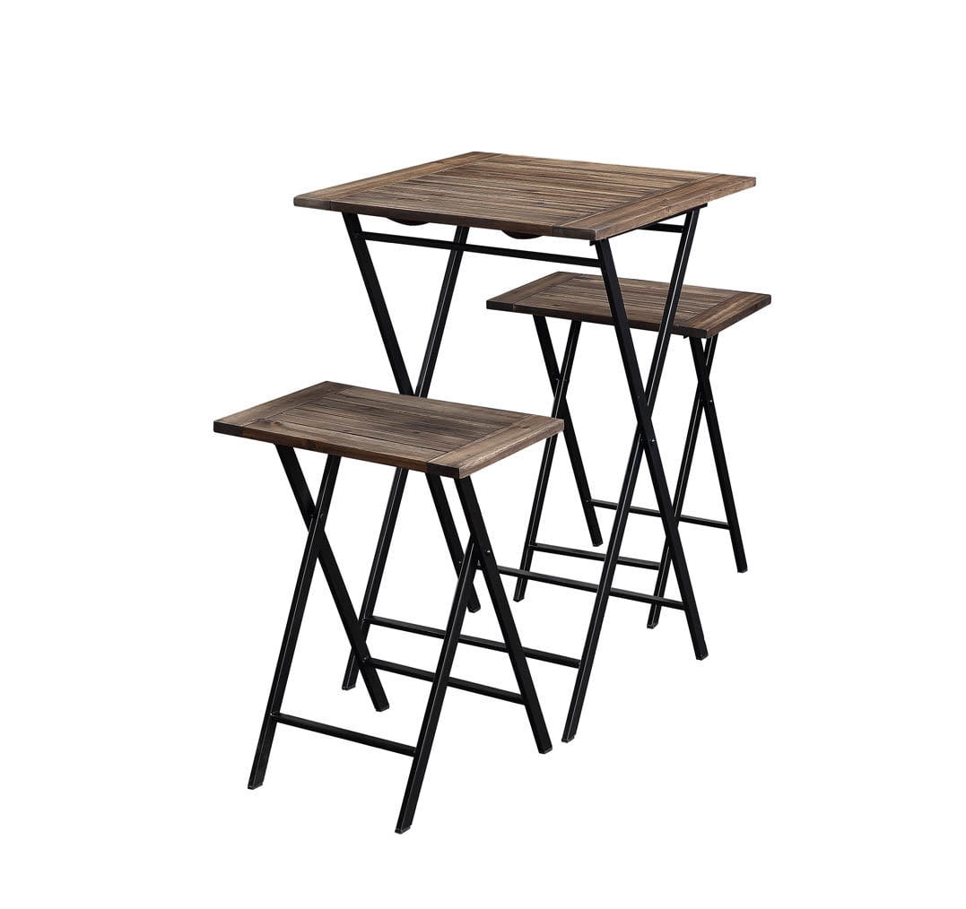 Elegant yet casual outdoor dining is within reach with the Brookville 3-Piece Folding Bistro Set. Enjoy intimate after-dinner drinks or afternoon snacks. This three-piece outdoor set includes two backless stools and a bistro table. They’re made with durable metal frames and beautiful acacia wood. Acacia is naturally suited to outdoor use thanks to its inherent anti-bacterial and water-resistant properties. All three pieces in this set fold up for easy moving and convenient storage when they’re not in use. Everything ships fully assembled.