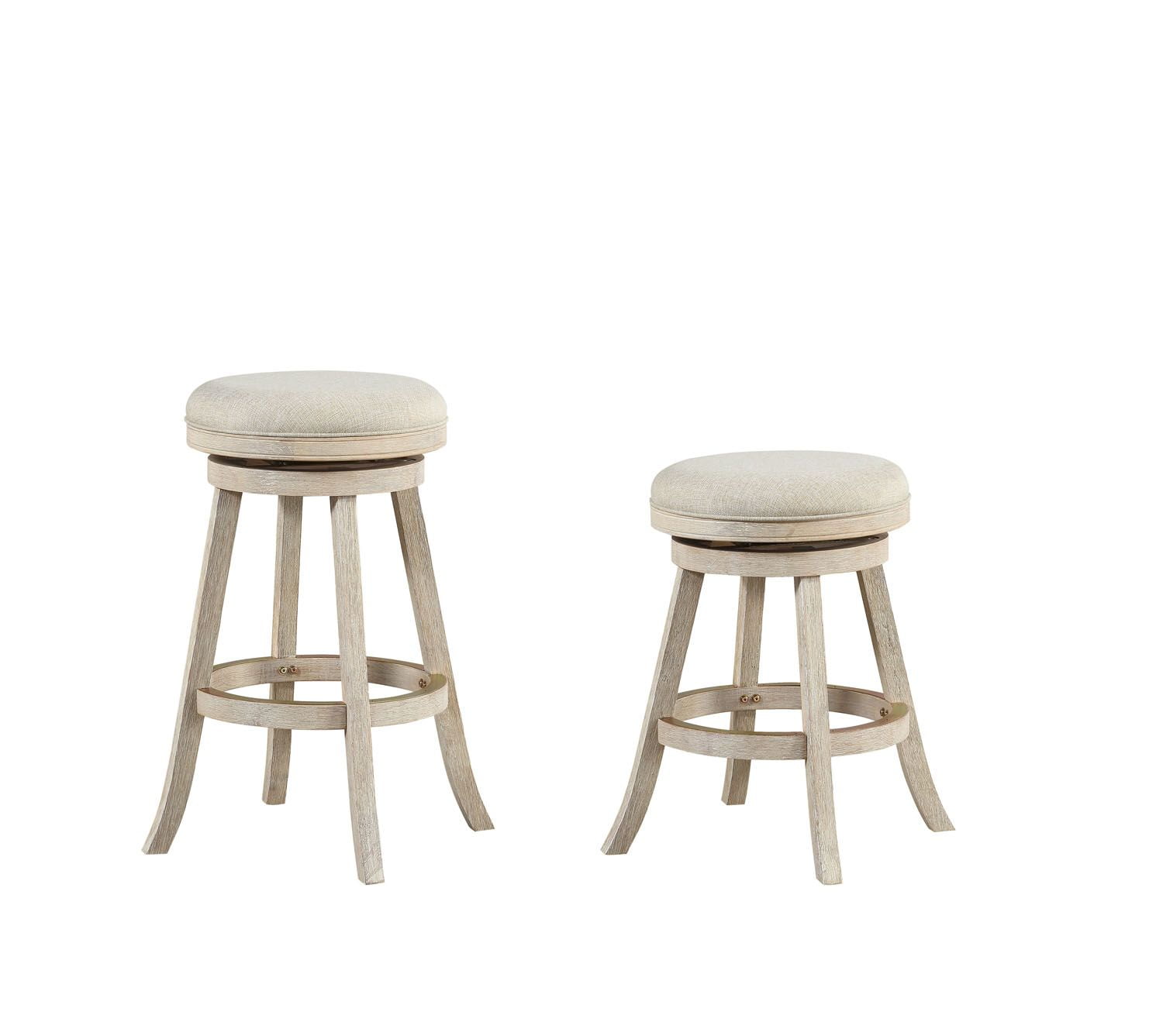 The backless Fenton Swivel Stool can be tucked away or put on display, depending on the size of your space. The Fenton backless bar stool will complement any kitchen, basement, game room or bar! However you use it, this stool is a stylish and wise investment. Its eco-friendly rubberwood frame features a handsome multistep wire-brush finish. Linen upholstery covers the high-density foam seat. The Fenton features a full-ring footrest protected with a metal kick plate on top and a double seat apron. The ball-bearing steel swivel plate provides a flawless 360-degree swivel. Available in two wire-brush finishes; driftwood and ivory. Both finishes are available in two seat heights; counter (24″) and bar (29″).