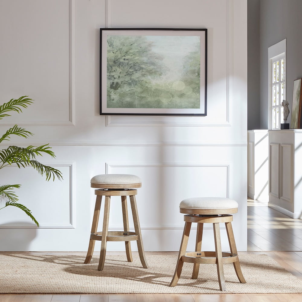 Boraam Fenton 24″ Backless Wood and Linen Swivel Counter Stool – Ivory Wire-Brush
