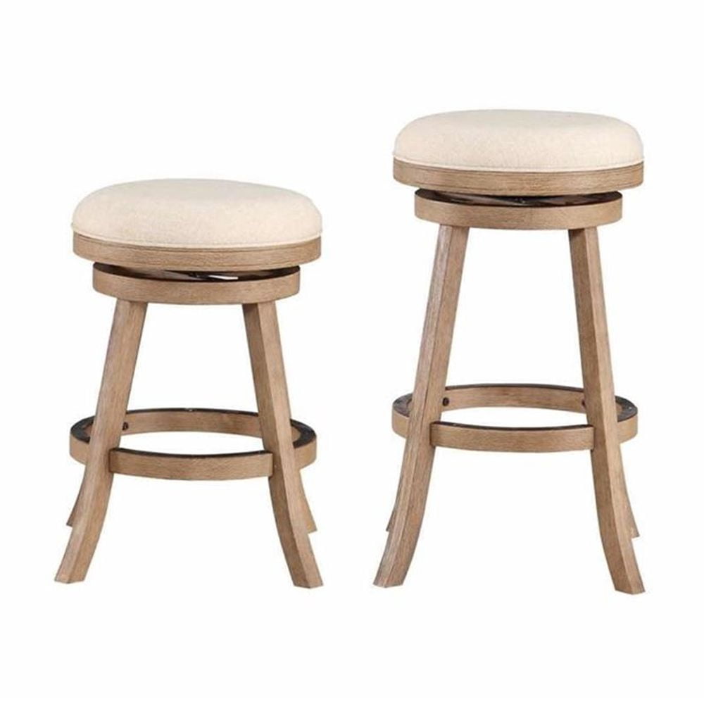 Rubberwood frame Multistep wire-brush finish Linen upholstery with single welt cord trim High-density foam cushion Swiveling seat Available in 24″ and 29″ seat heights Weight Capacity:250 pounds Durable ivory linen over high density foam seat Flared legs for stability Full circle footrest