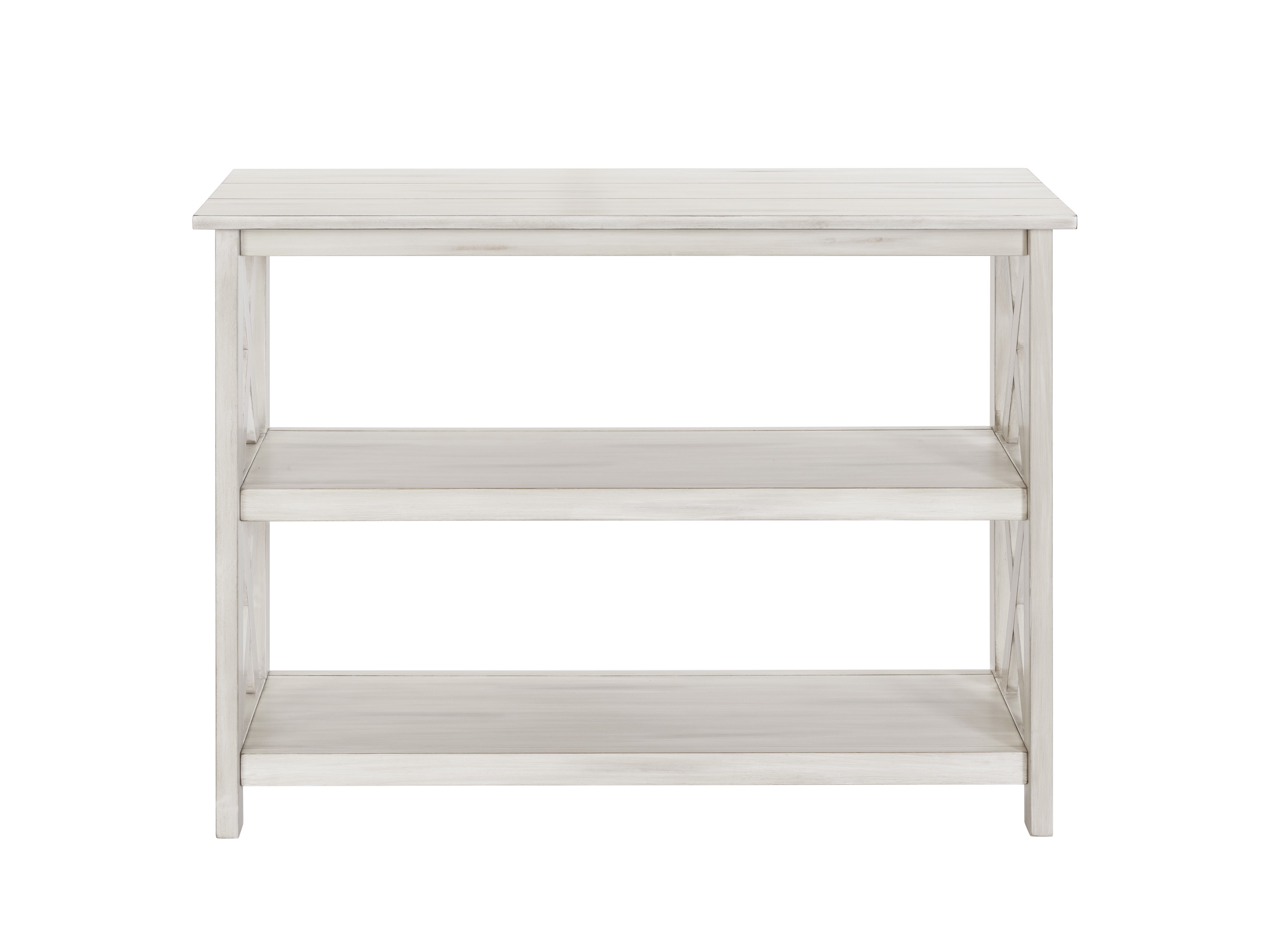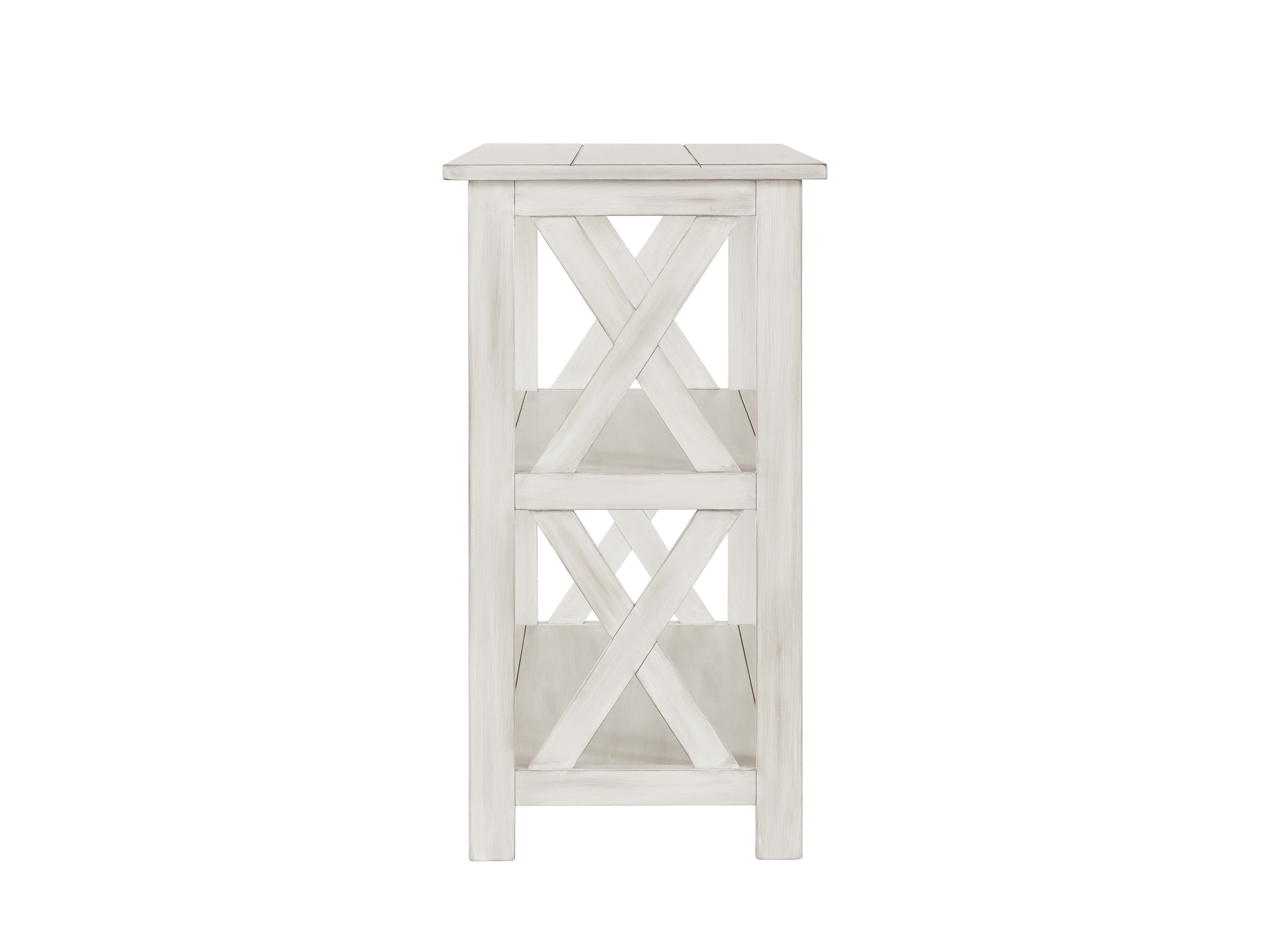 Constructed with MDF and solid wood Features a Antique White finish Features a Decorative X Frame 2 shelves and tabletop for maximum storage Complete your look with the Jamestown collection; choose from the Jamestown Coffee, end, accent and console tables. Ready to Assemble with all tools and hardware included Due to differences in monitors, mobile display settings, and home lighting, as well as variances in the finishing process, colors of products may appear different from those shown on the site