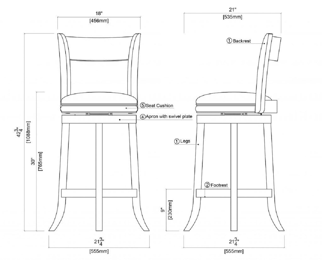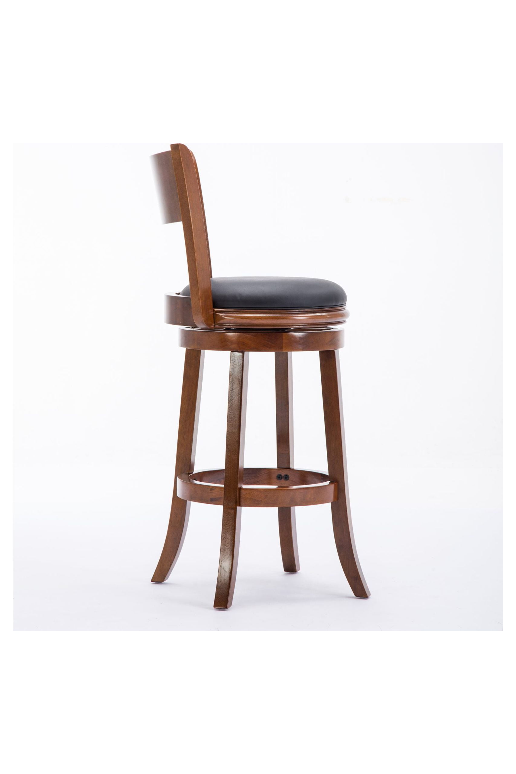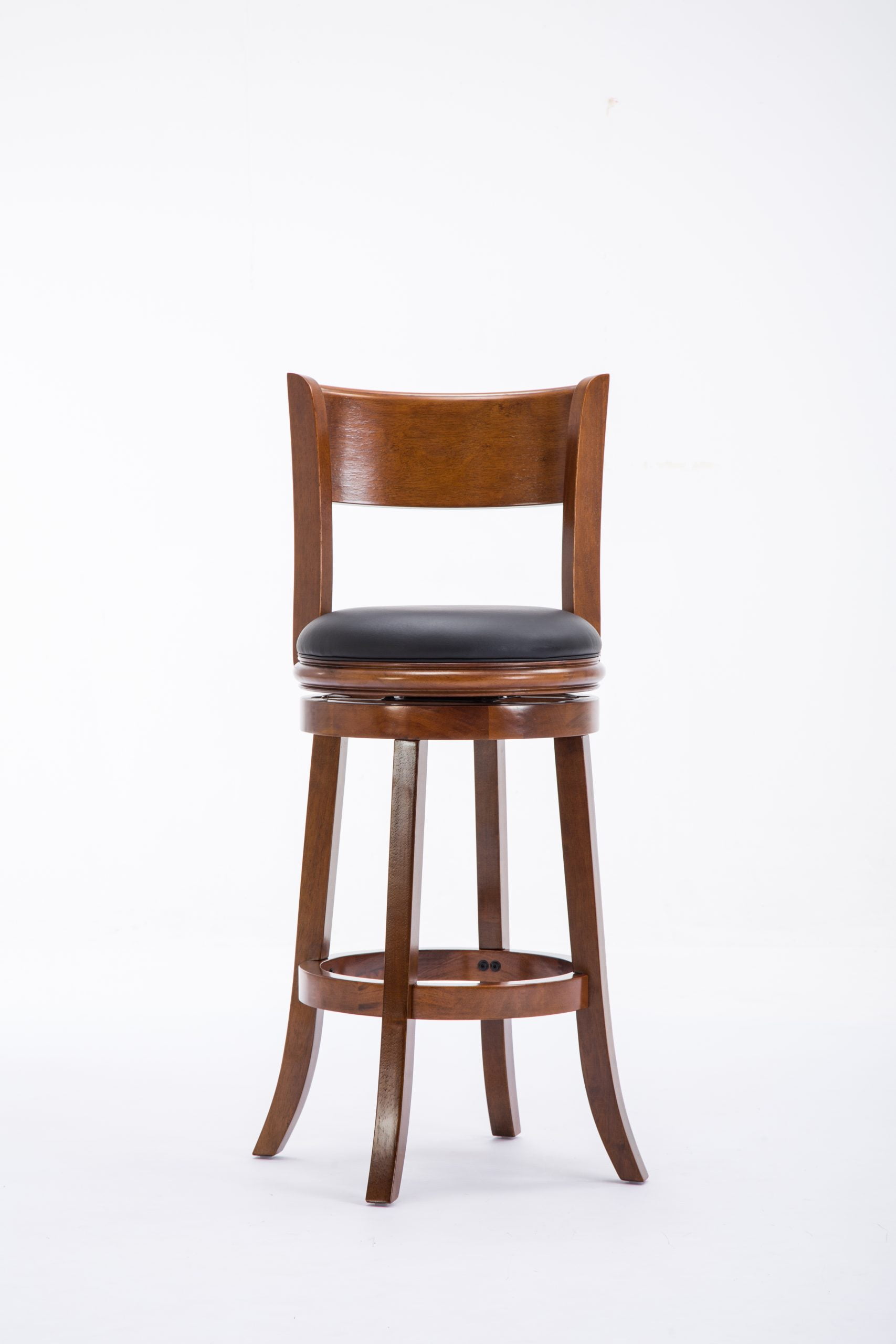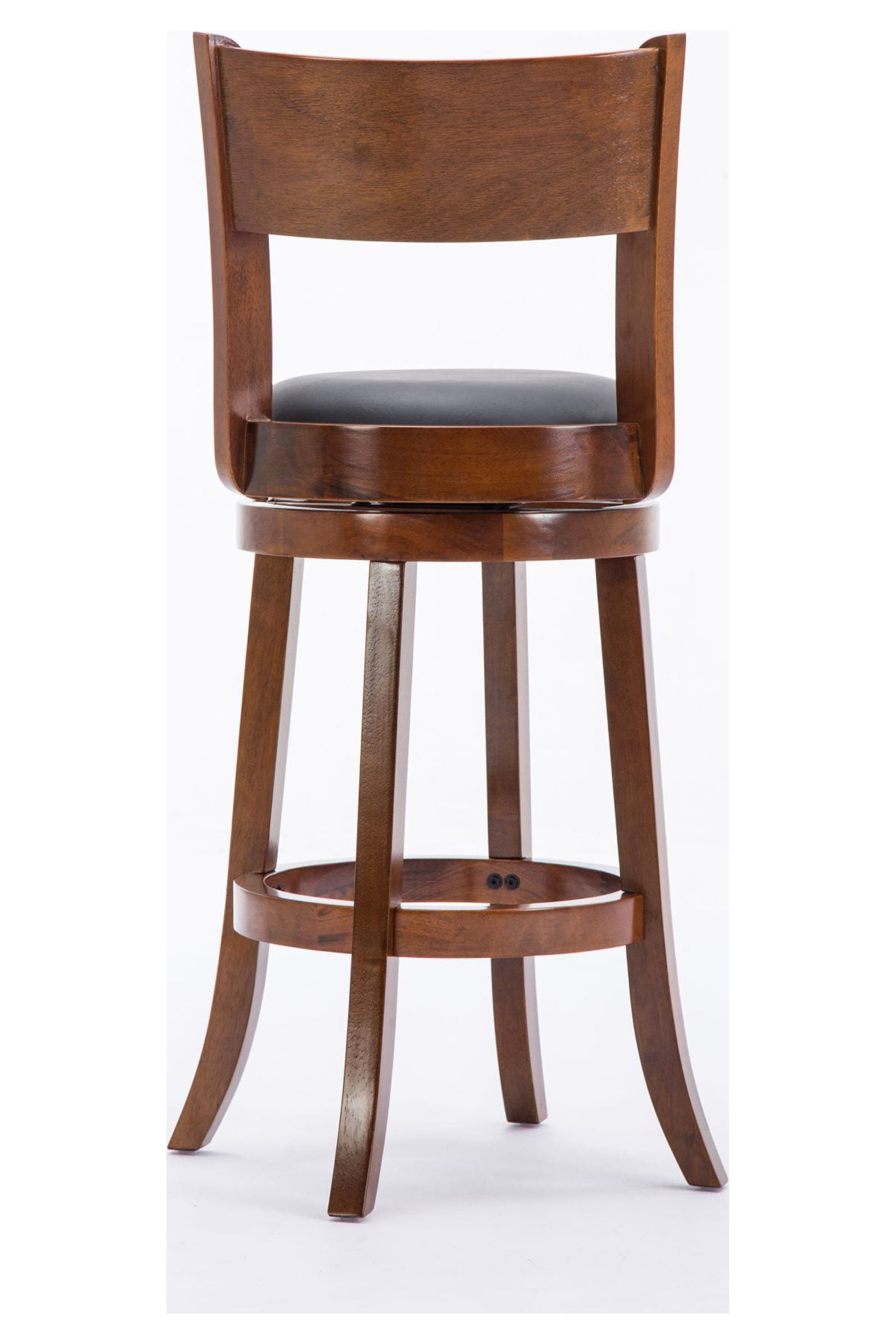 Durable ball bearing for full 360 degree swivel Flared legs and footrest for comfort and stability Seat height available in counter (24 inches) and bar (29 inches) Solid hardwood construction Black faux leather seat over high-density foam Assembly required