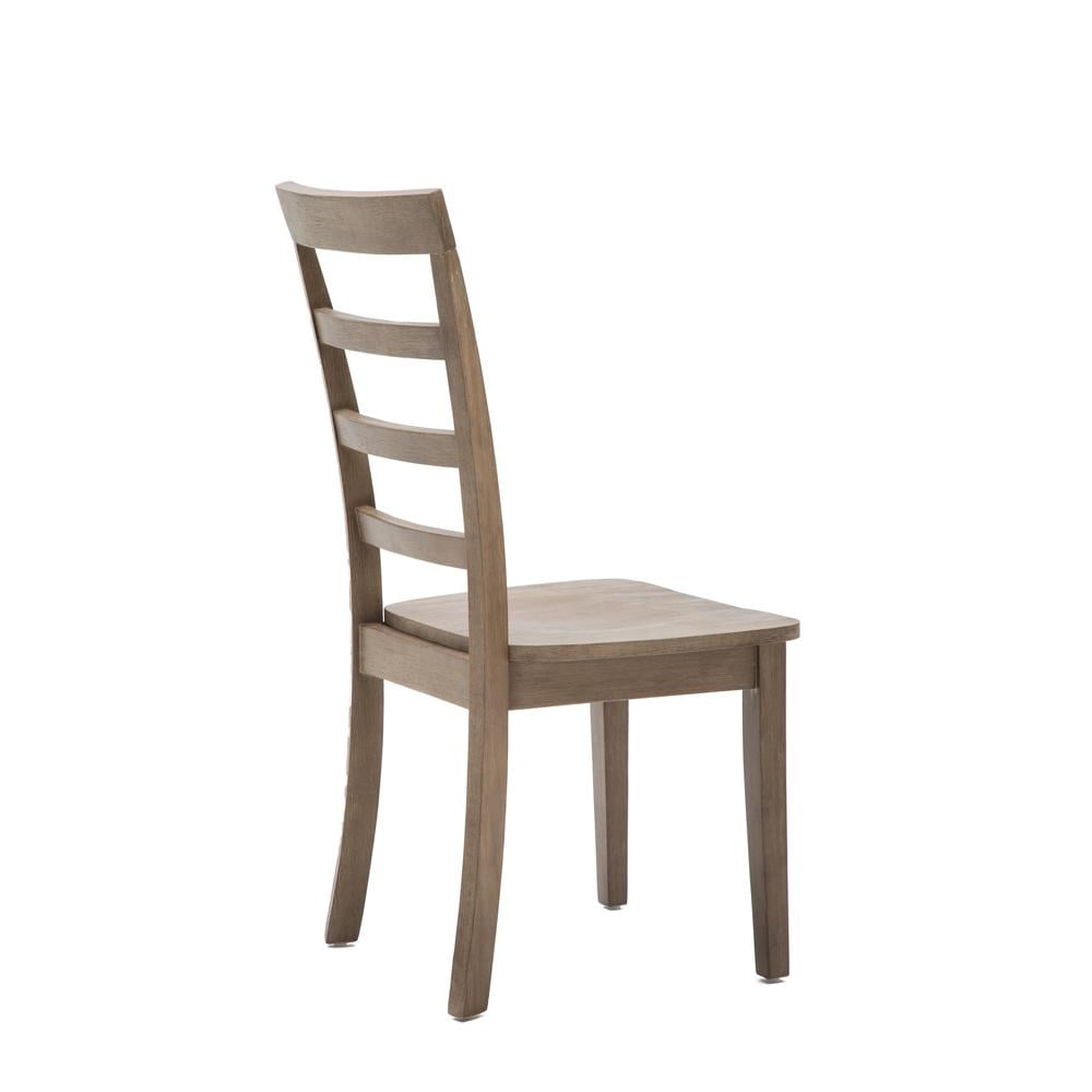 Boulder comes as a set of 2 Made with rubberwood Seat height is 18″ Ladderback design Molded seat for comfort Barnwood wire-brush finish Floor glides on feet