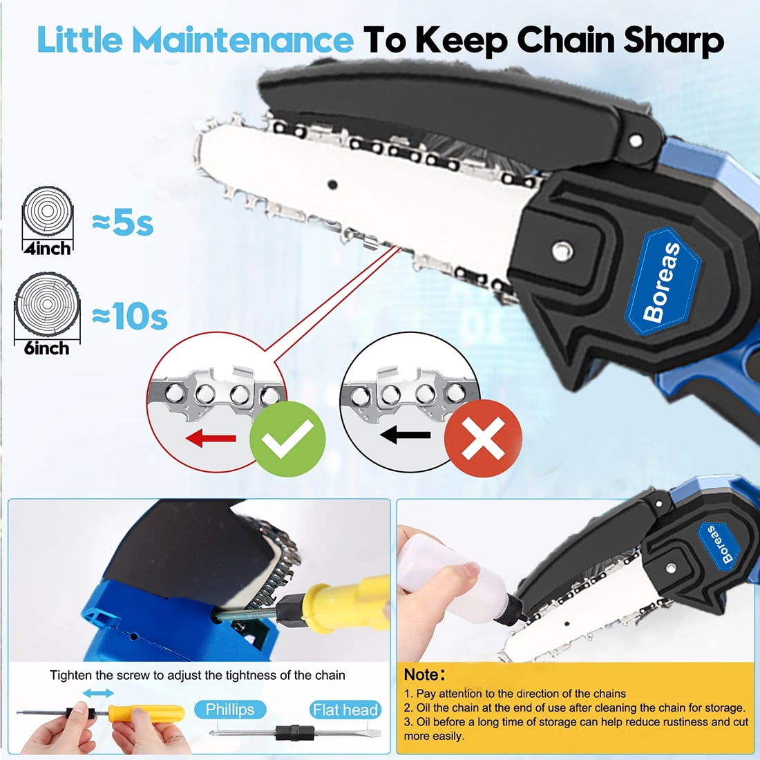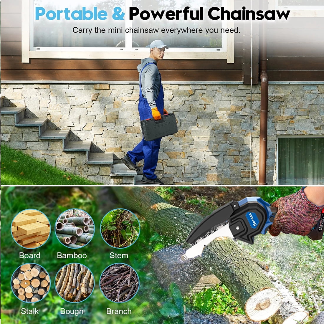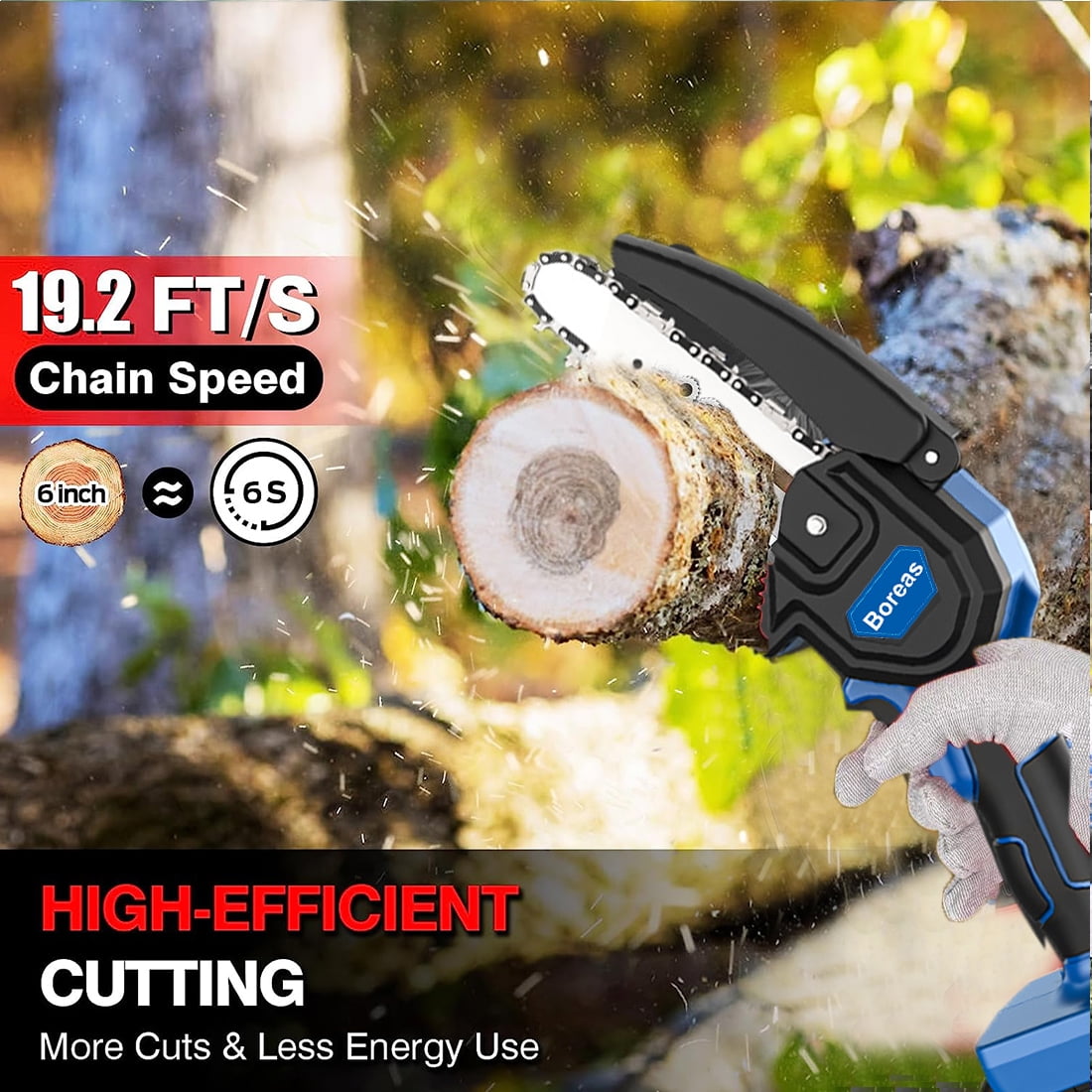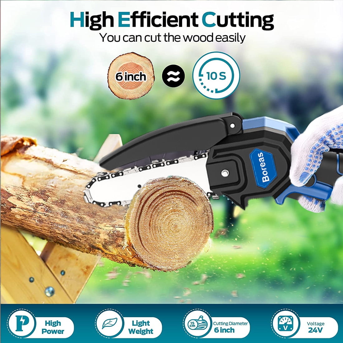 Boreas Mini Chainsaw Cordless, 6 inch Mini Chain Saw Cordless Battery Powered,Handheld Chain Saw Portable Electric Chainsaw with 2 Rechargeable for Tree Trimming Branch Wood Cutting