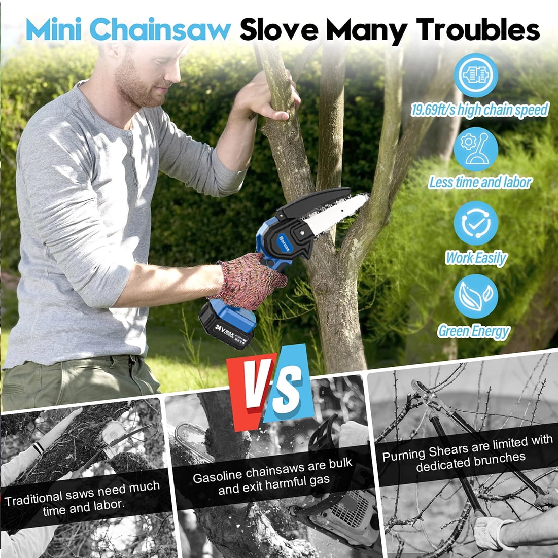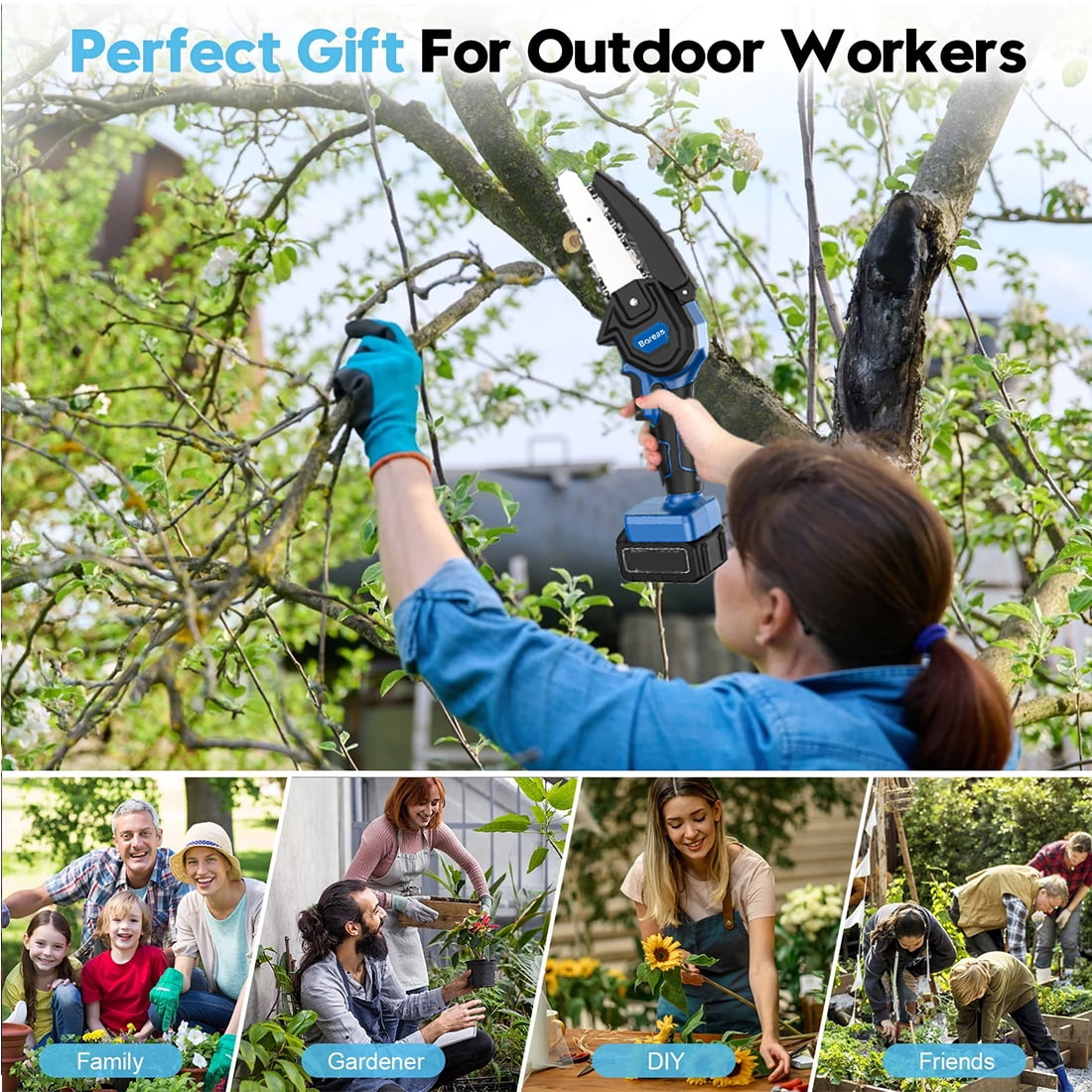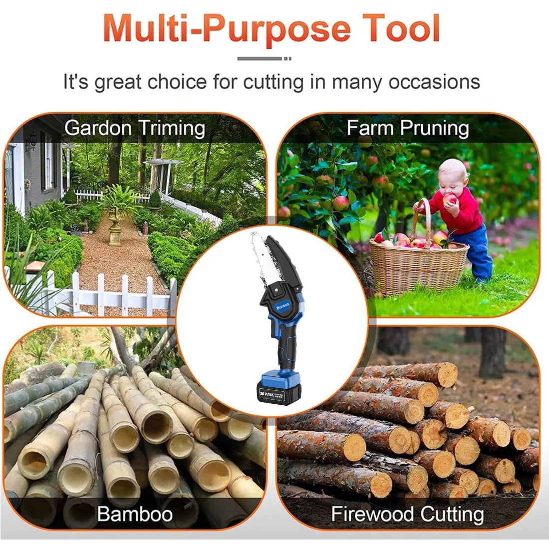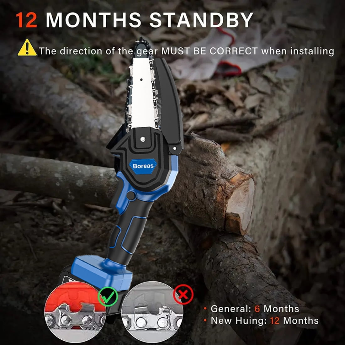 Boreas Mini Chainsaw Cordless, 6 inch Mini Chain Saw Cordless Battery Powered,Handheld Chain Saw Portable Electric Chainsaw with 2 Rechargeable for Tree Trimming Branch Wood Cutting