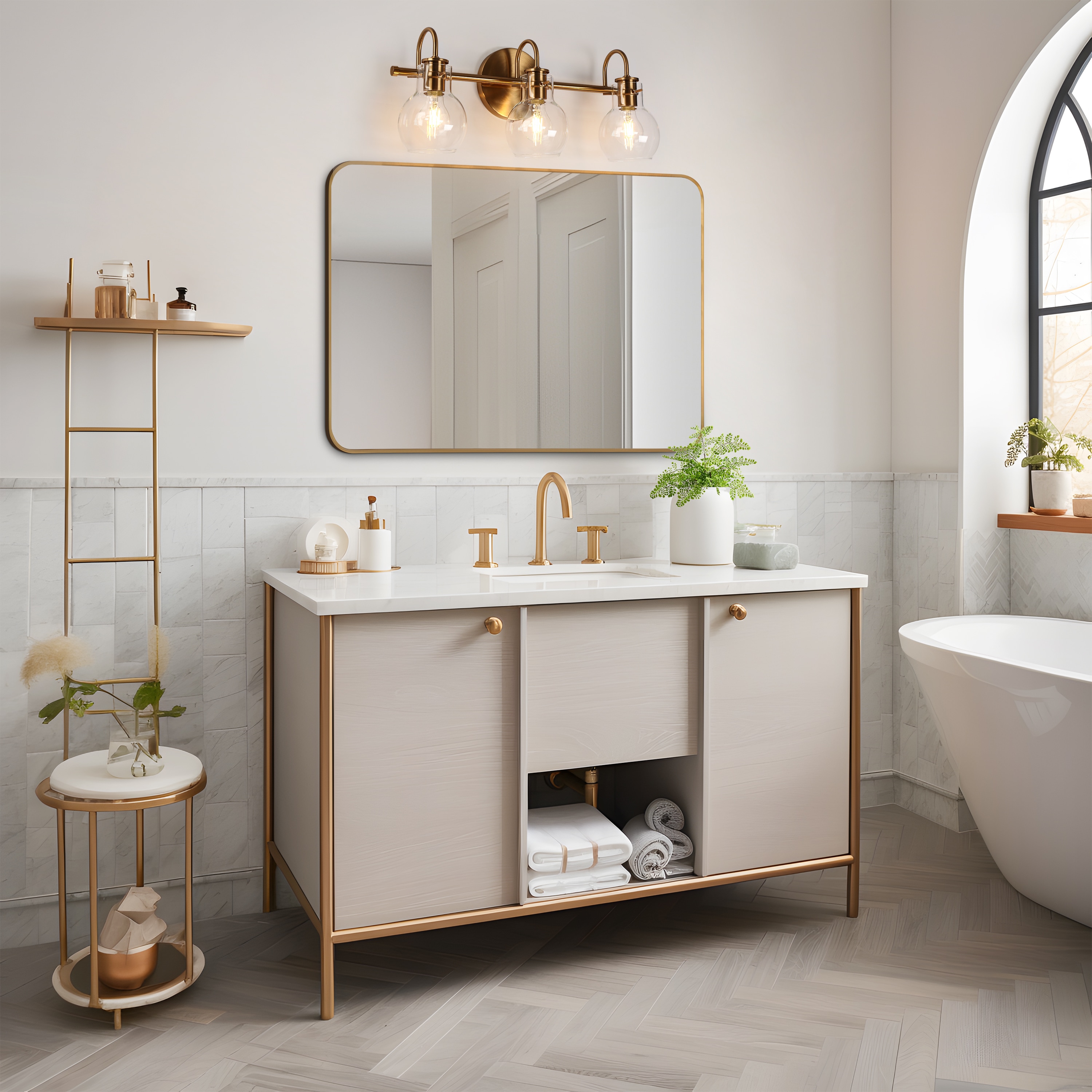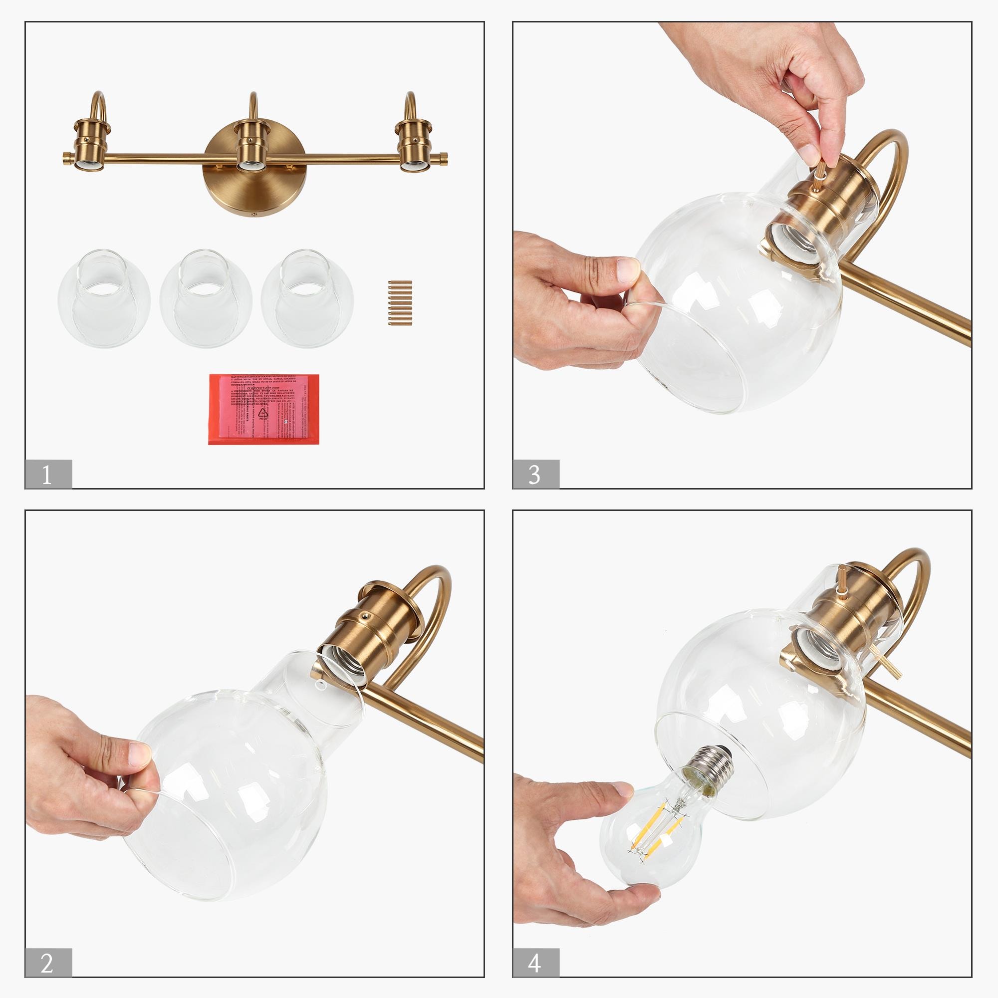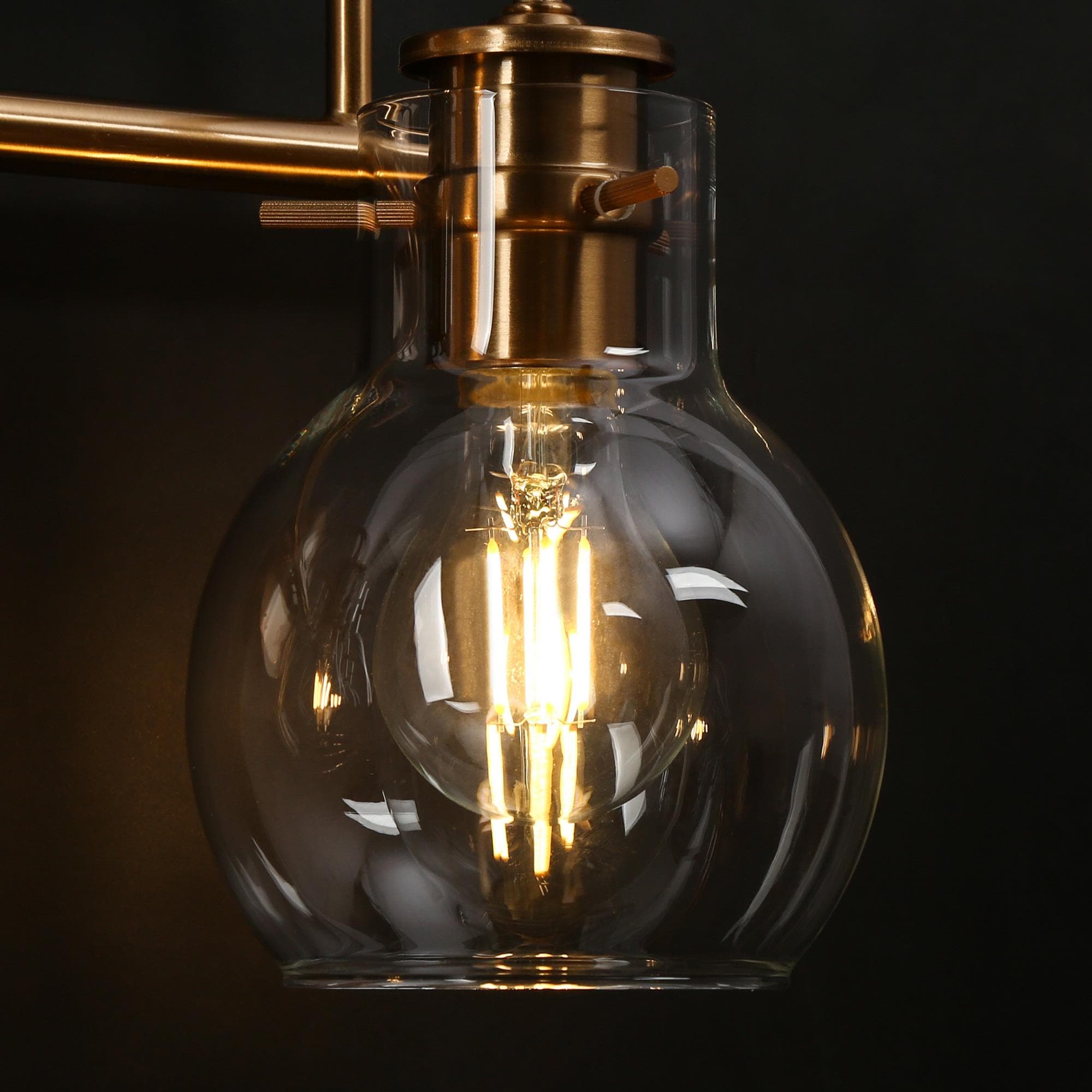 Elevate your bathroom or powder room with our 3-light polished gold vanity fixture. Crafted from high-forged metal with clear crystal kettle shades, it adds glamour and extra illumination. The curved, vine-like arm complements contemporary and classic spaces. Enjoy the soft glow of 60W bulbs (not included) and the convenience of a dimmer switch. Easy to install and exuding sophistication, this fixture creates a luxurious ambiance, making it a perfect centerpiece for your modern home.