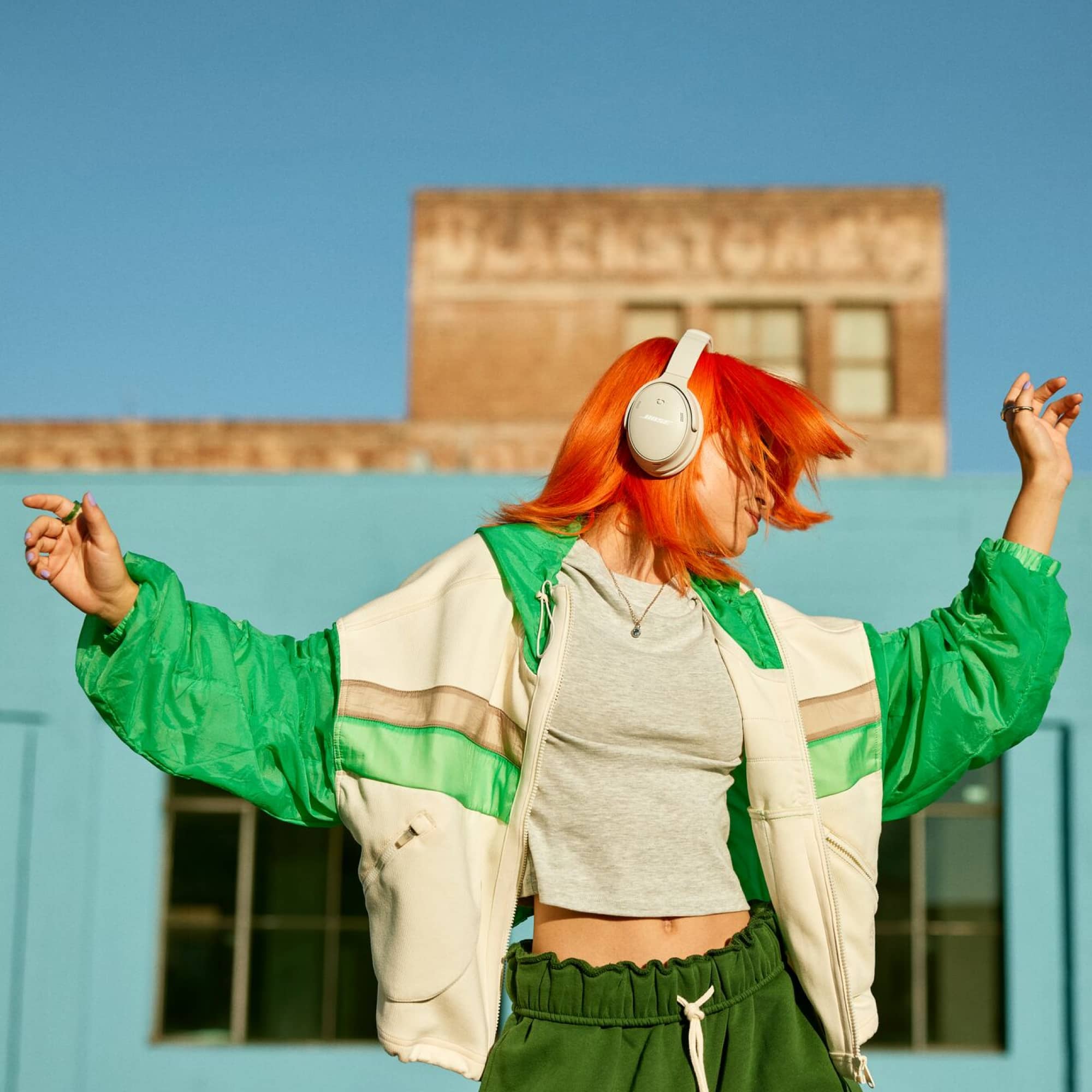 Take charge of your music with Bose QuietComfort Bluetooth headphones. These noise cancelling headphones come equipped with Quiet and Aware Modes that let you toggle between full noise cancelling or full awareness of your surroundings. Or create a custom mode on these Bluetooth headphones to adjust noise cancellation and add Wind Block to tune out breezy environments. Just press play on these over ear headphones for high-fidelity sound that’s also customizable with adjustable EQ. Use the Bose app to crank the bass, tweak the treble, and personalize your experience. Plus, these headphones with built in microphone are crafted with all-day wear and multi-taskers in mind. Available in striking colors, the premium materials and bold, iconic design combine comfort and style. On-ear toggles make switching from music to calls easy and the powerful battery means it’s ready for the long haul. Enjoy up to 24 hours of play time on a single charge with the Bose QC wireless headphones and up to 2.5 hours of play time with a quick 15-minute boost.