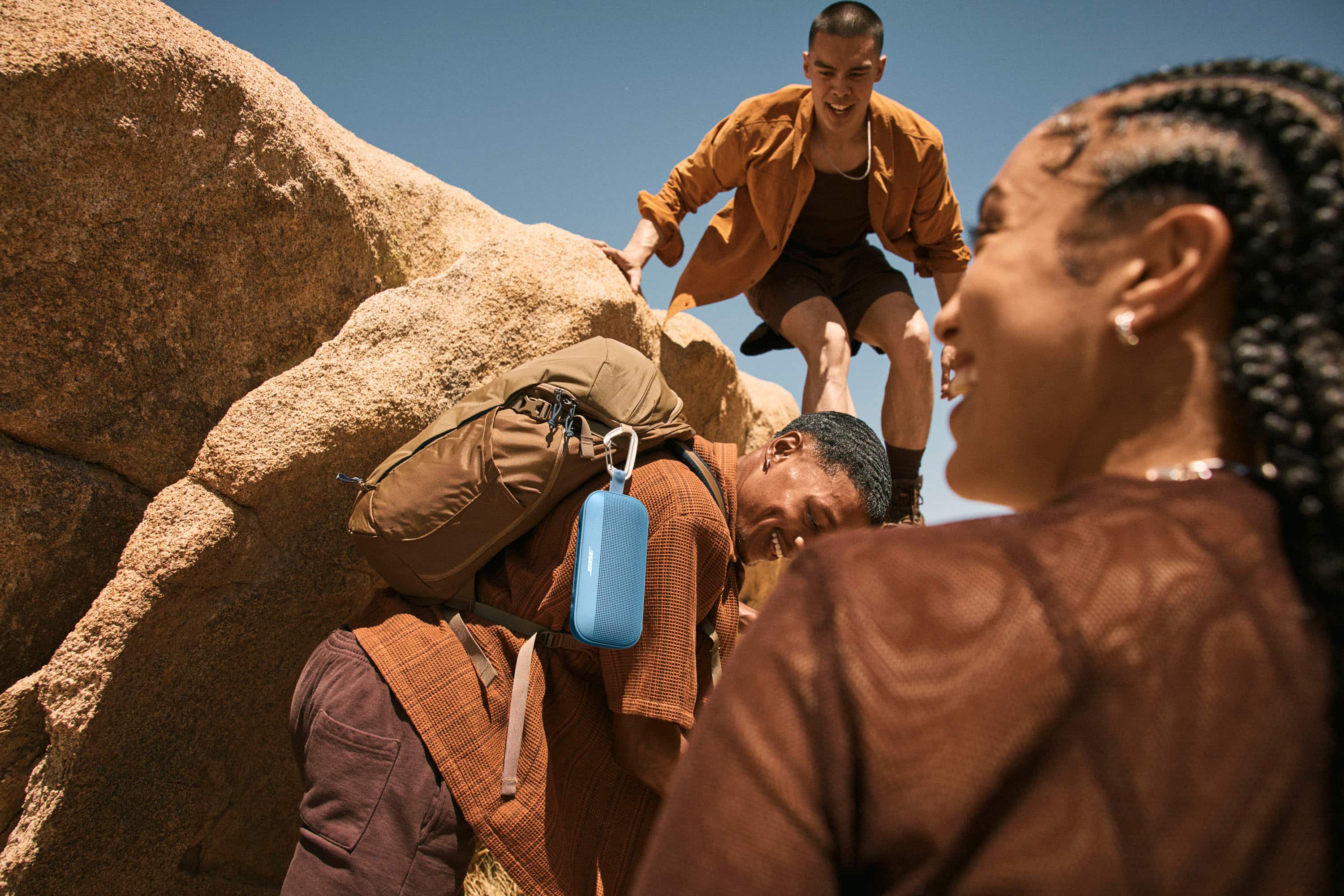 Rated IP67, SoundLink Flex is designed to take on all your adventures. It’s dust and waterproof, and it floats — so a quick dip in the pool won’t sink your sound. The speaker’s durable, silicone-wrapped body also withstands drops, crushing, shocks, and rust.