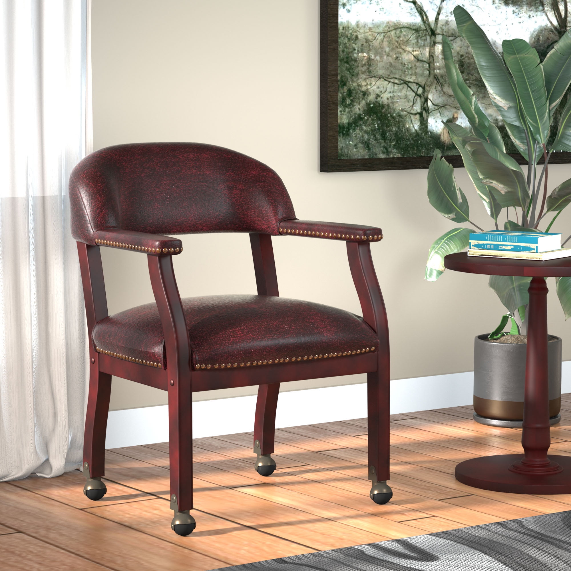 Boss Office Products Ivy League Faux Leather Executive Mobile Guest Chair in Burgundy