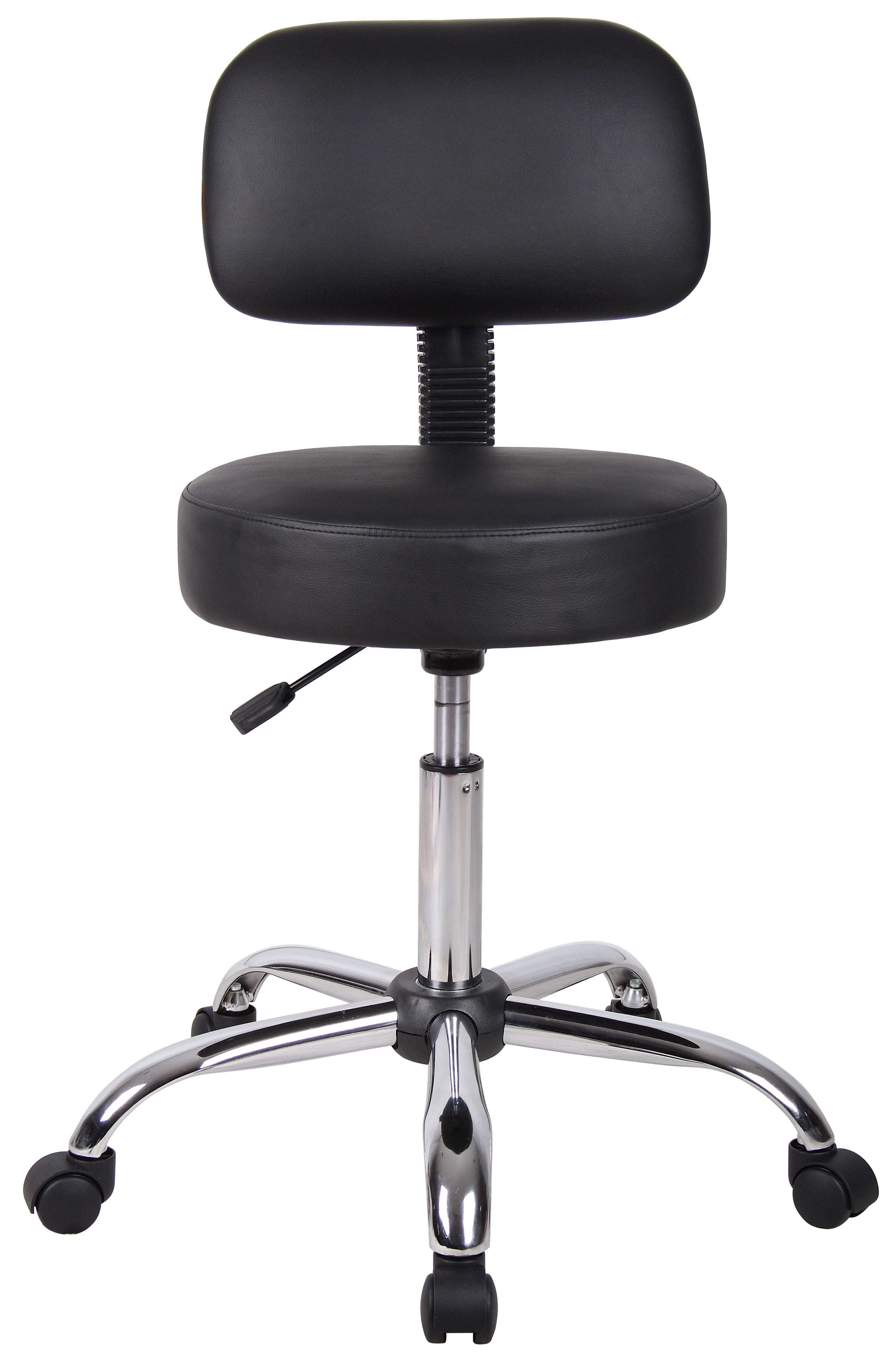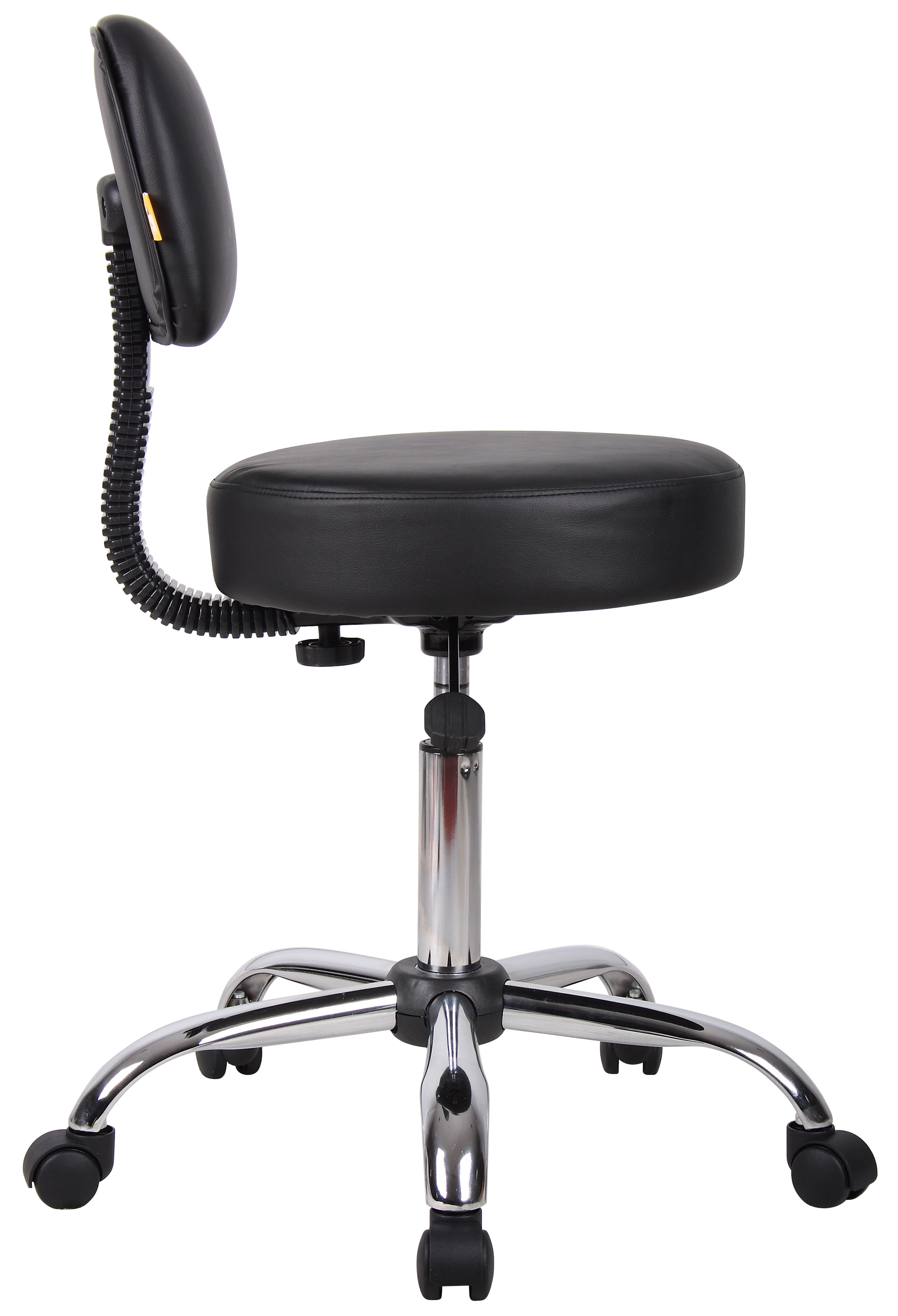 Boss Office Products Antimicrobial Vinyl Medical Stool with Back Cushion, Black