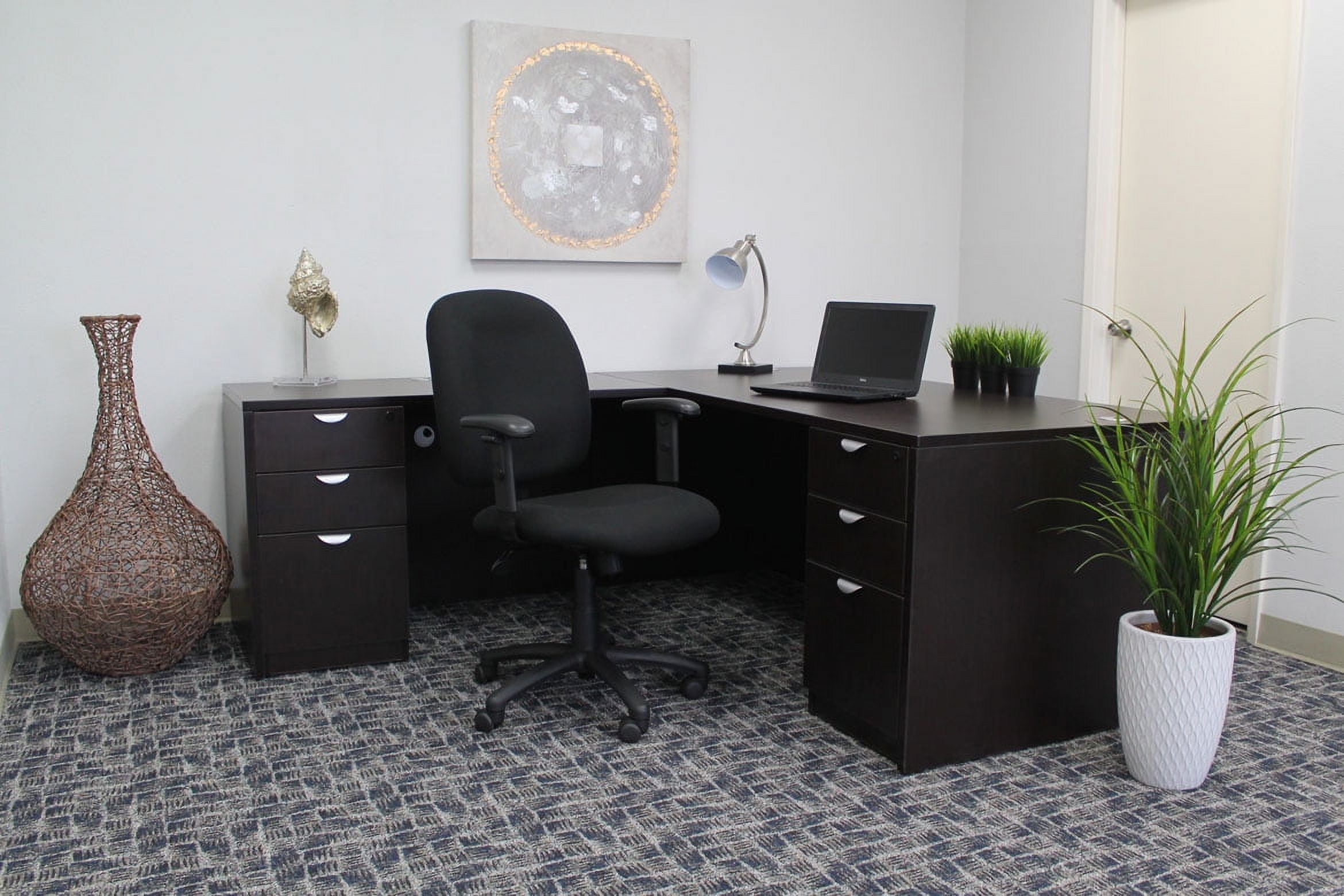 Mid-back styling with firm lumbar support Elegantly upholstered in Chenille fabric 25″ nylon base Hooded double wheel casters Pneumatic gas lift seat height adjustment Adjustable tilt tension control Assembly required MAS Certified Green Overall dimensions: 27.5″ W x 27″ D x 37-40″ H Seat height: 17.5″-20.5″ H