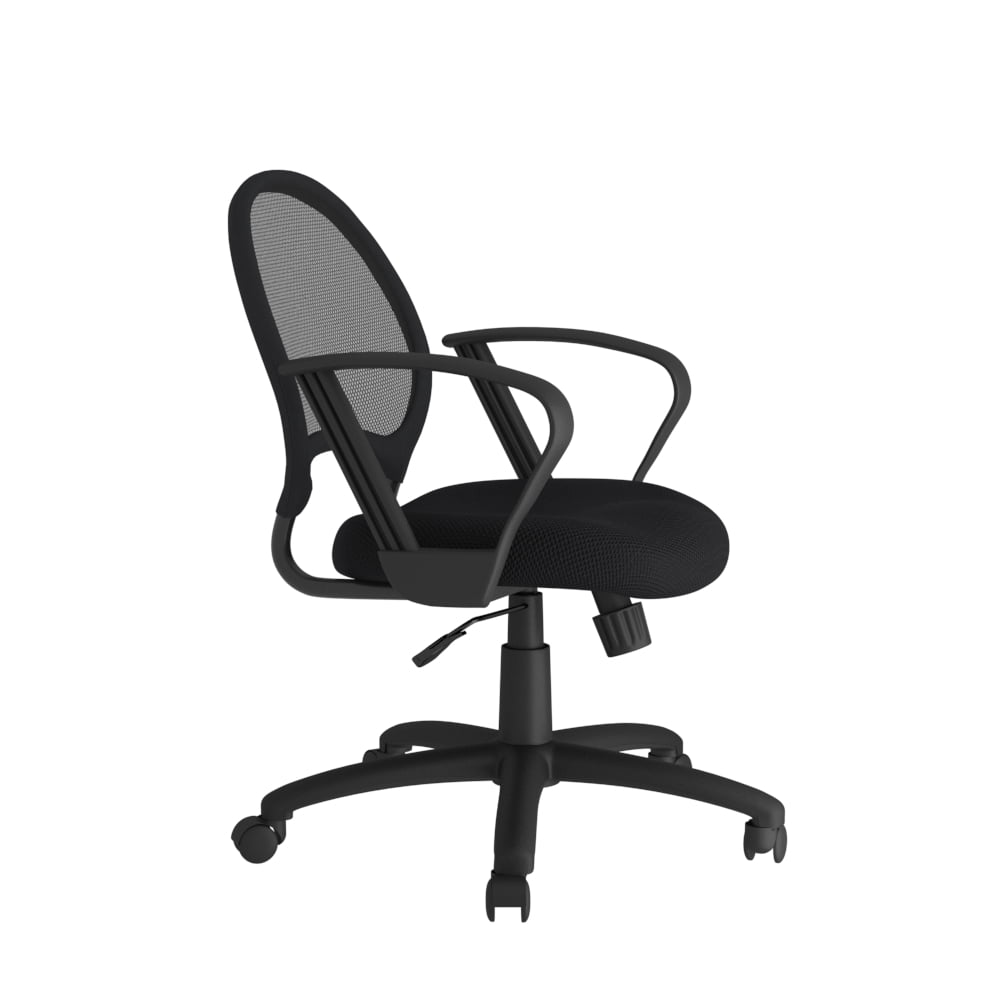 Patented Mesh Back Design – Open mesh promotes airflow to prevent heat and moisture build-up during long hours. Durable Metal Frame – Solid metal back with ballistic nylon wrap provides extra stability and strength. Breathable Padded Seat – Mesh fabric seat with built-in padding delivers comfort and cool support. Tilt Tension Control – Adjustable tension lets you fine-tune your recline for ideal comfort. Upright Locking Position – Supports a healthy, ergonomic sitting posture. Pneumatic Seat Height Adjustment – Quickly find your optimal seat height with smooth gas-lift functionality. Stable Nylon Base – 25″ black nylon base ensures solid, dependable support. Smooth Mobility – Hooded double-wheel casters glide easily across most surfaces. Comfortable Loop Arms – Fixed loop arms offer natural, relaxed support for your arms. Smart, Budget-Friendly Option – Combines ergonomic comfort and durable construction at an affordable price—ideal for home or office MAS Certified Green Assembly required