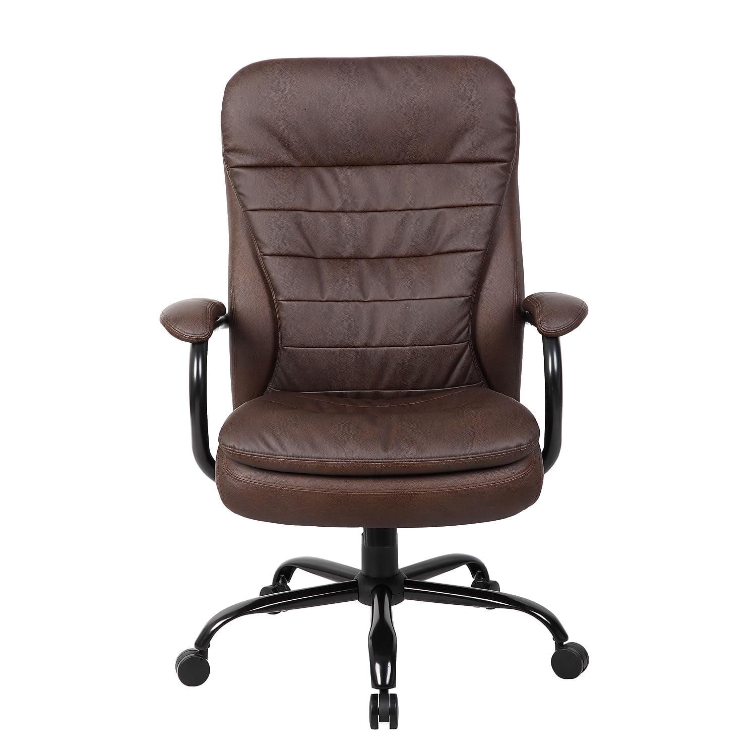Boss Office Products Big and Tall B991-BB Double Plush Leather Office Chair, Brown