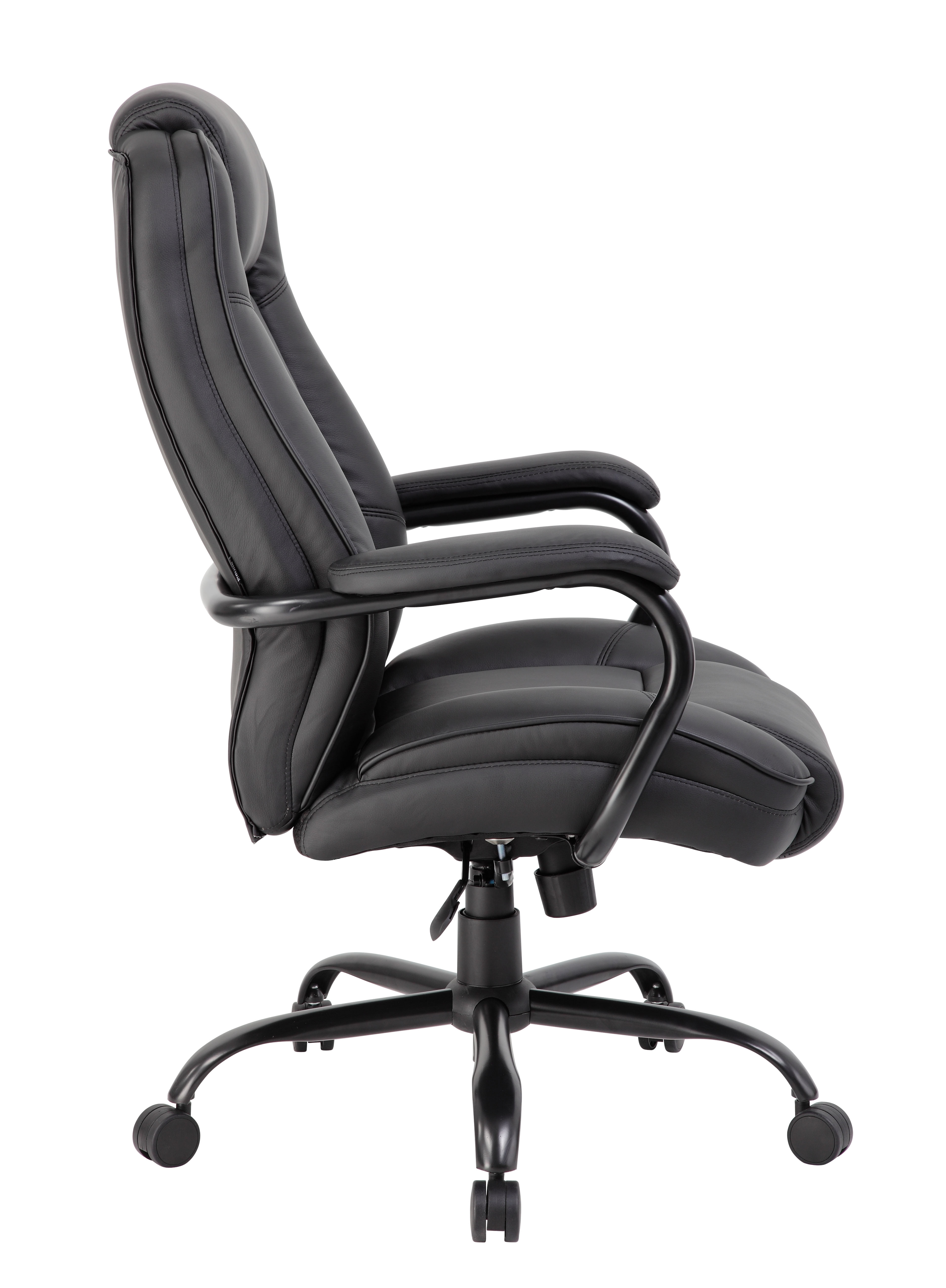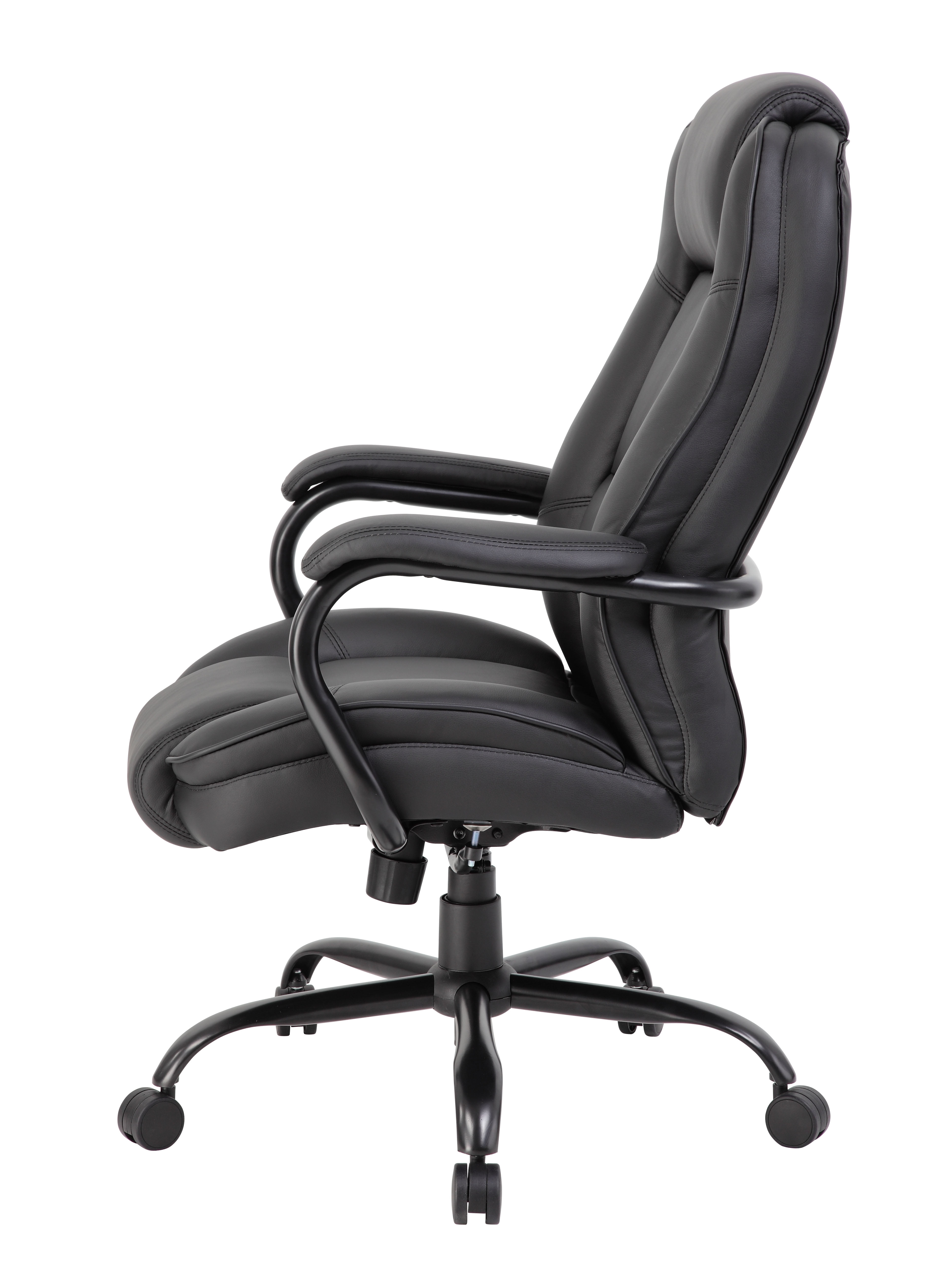 The Boss Office Products Big and Tall Heavy Duty Executive Chair is the perfect addition to any office, board room, or study. Its 400 pound weight capacity renders them compatible with a broad range of different body types. Beautifully upholstered in LeatherPlus, a durable combination of leather and polyurethane, the chair is as comfortable as it is durable. Additional features include padded arms oriented in steel wrap around style construction and reinforced lumbar support. It also features improved pneumatic gas lift seat height adjustment, and a heavy duty spring tilt mechanism.