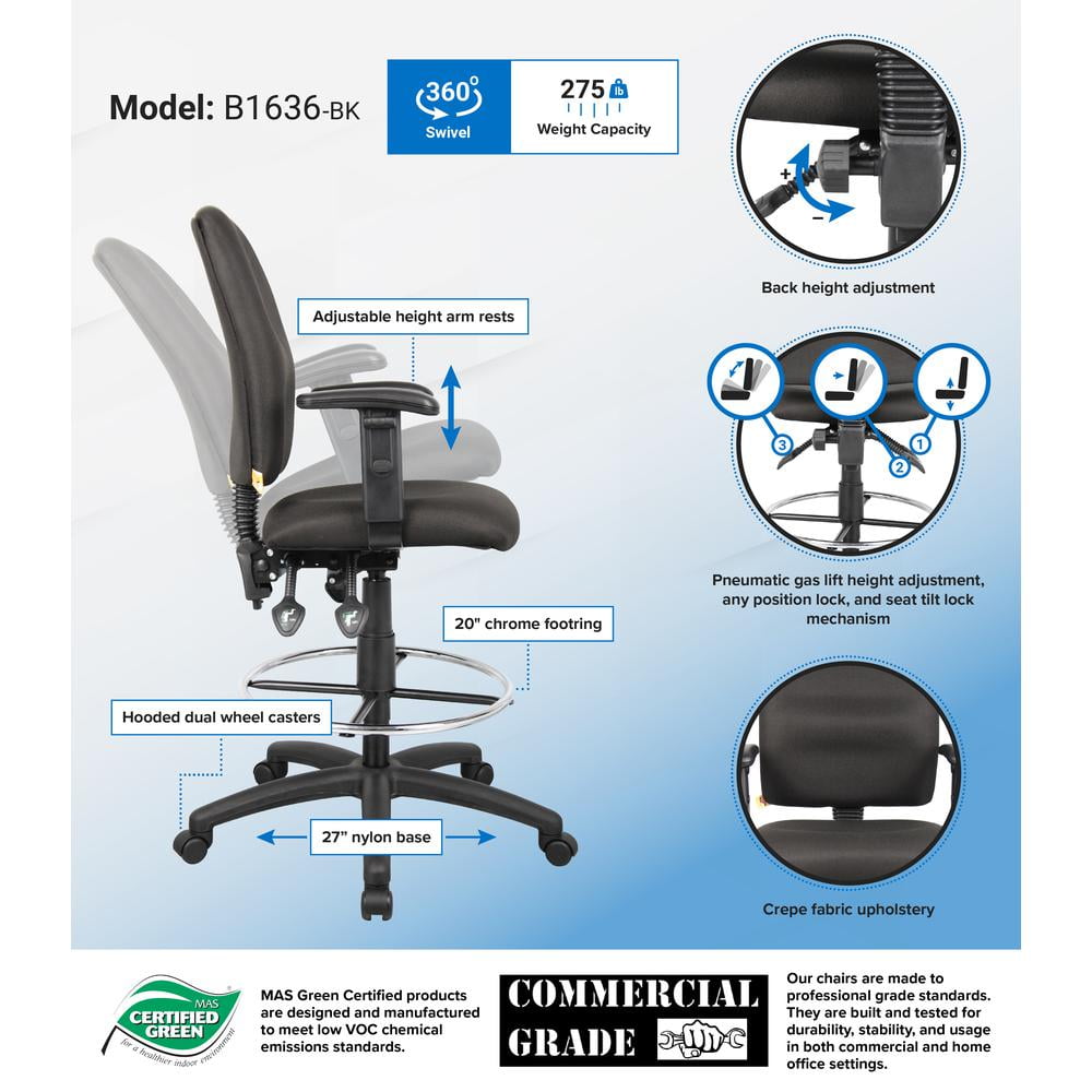 Boss Office Products Black Multi-Function Drafting STool with Adjustable Arms