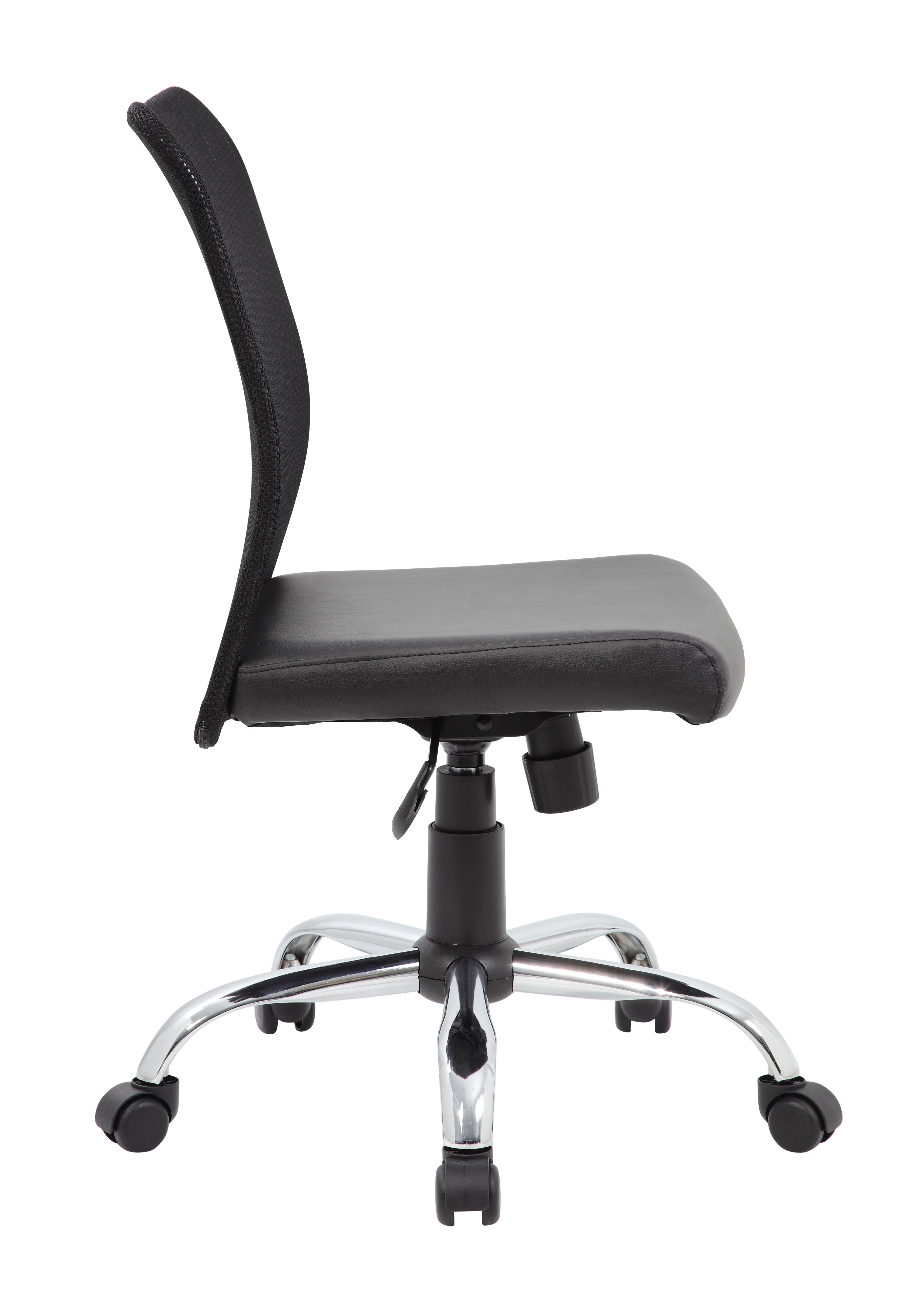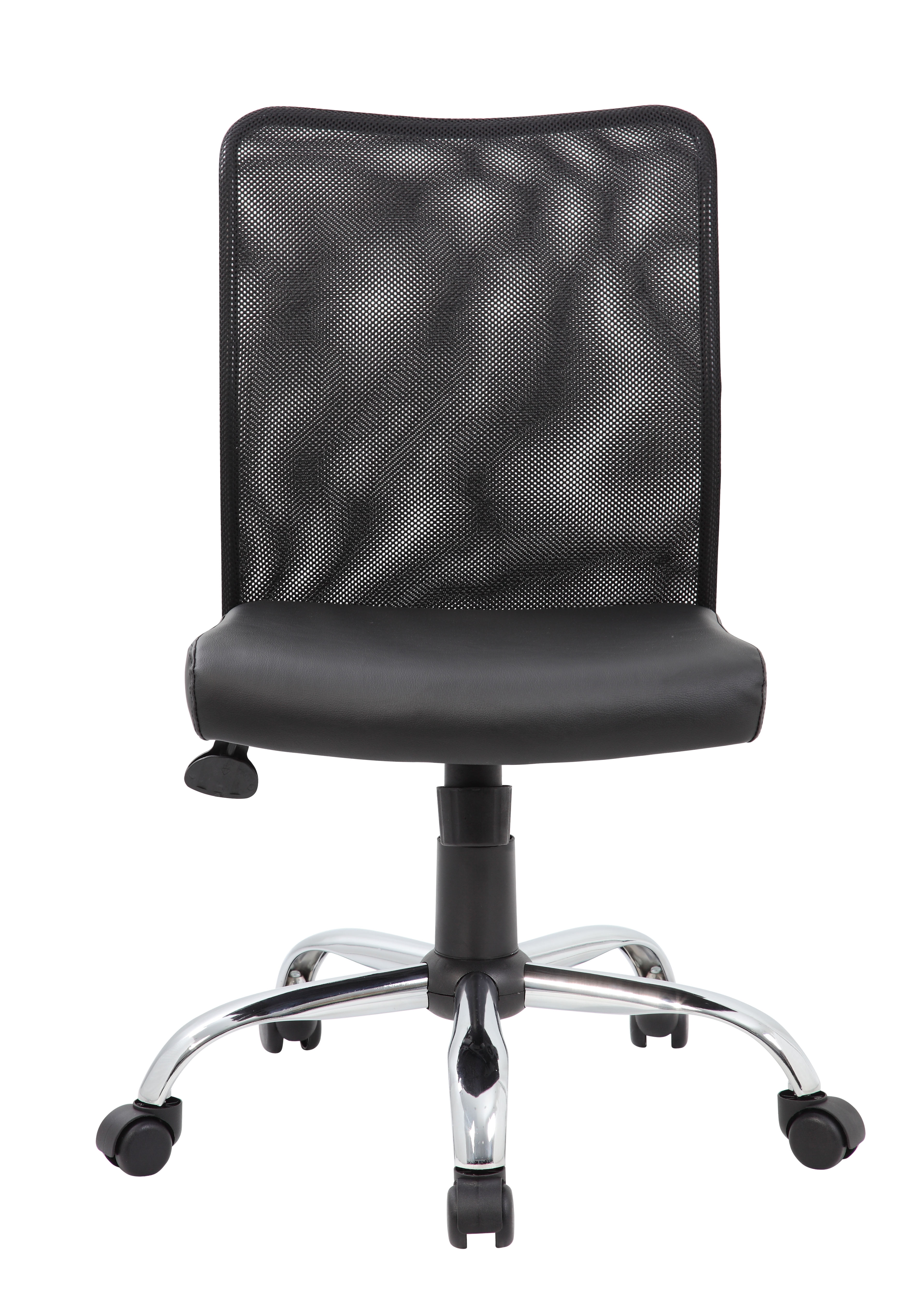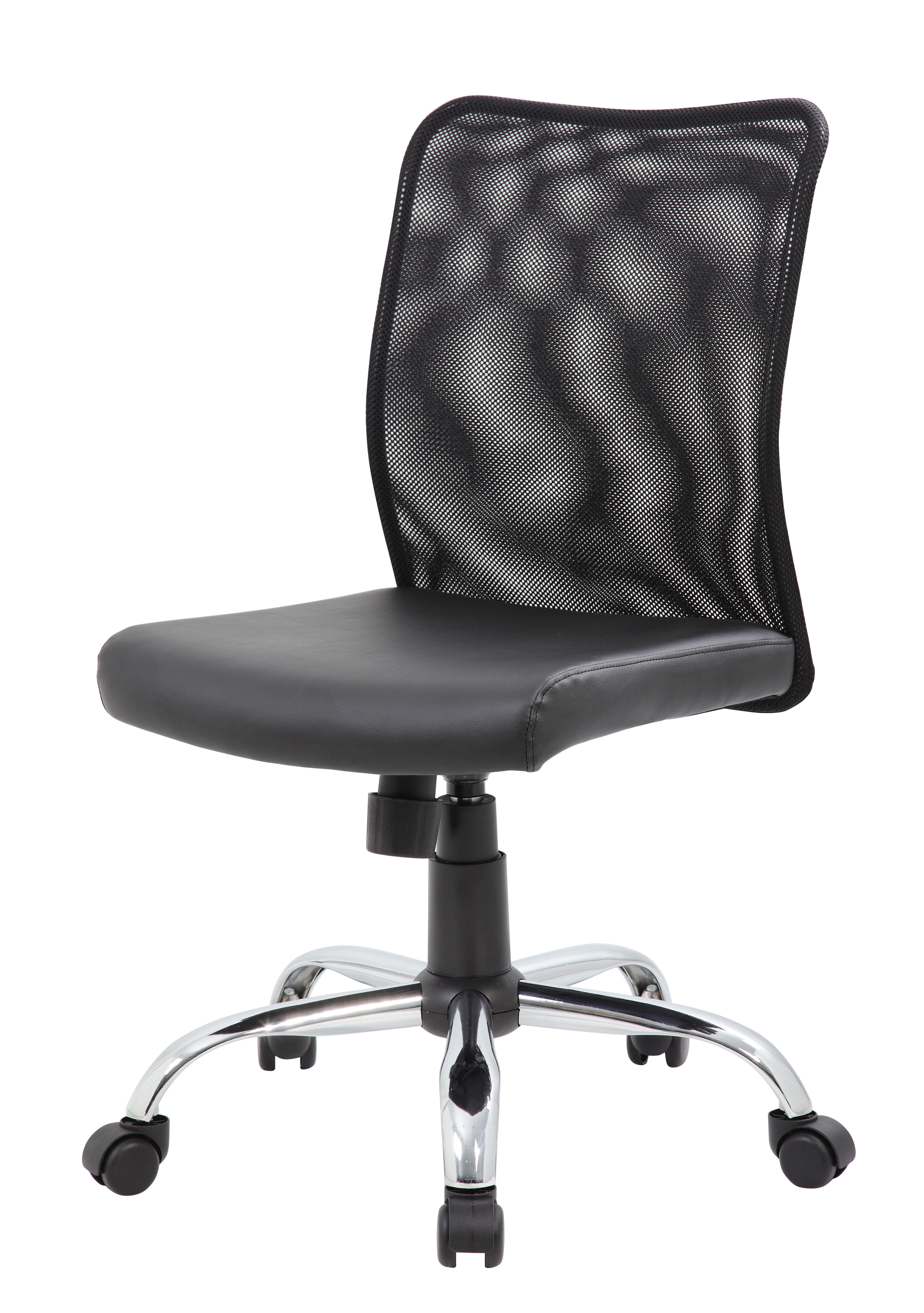 Breathable Mesh Back – Open design reduces heat and moisture build-up for a cooler, more comfortable experience. Padded Caressoft Vinyl Seat – Soft, durable, and easy to clean—ideal for long hours of use. Mesh back designed to allow air to circulate preventing body heat and moisture build up Adjustable Tilt Tension & Lock – Customize your recline and lock it in place for stable back support. Pneumatic Seat Height Adjustment – Effortlessly raise or lower the seat to find your perfect sitting height. Sturdy Chrome Base – 25″ chrome finish base enhances stability and adds a modern touch. Smooth Mobility – Hooded double-wheel casters allow easy movement across different surfaces. Fixed Arm Support – Offers natural, comfortable arm positioning for all-day ease. Smart, Affordable Design – Combines ergonomic support with cost-conscious value—ideal for any office or home workspace. Commercial Grade – Meets or exceeds ANSI/BIFMA testing standards MAS Certified Green Assembly required
