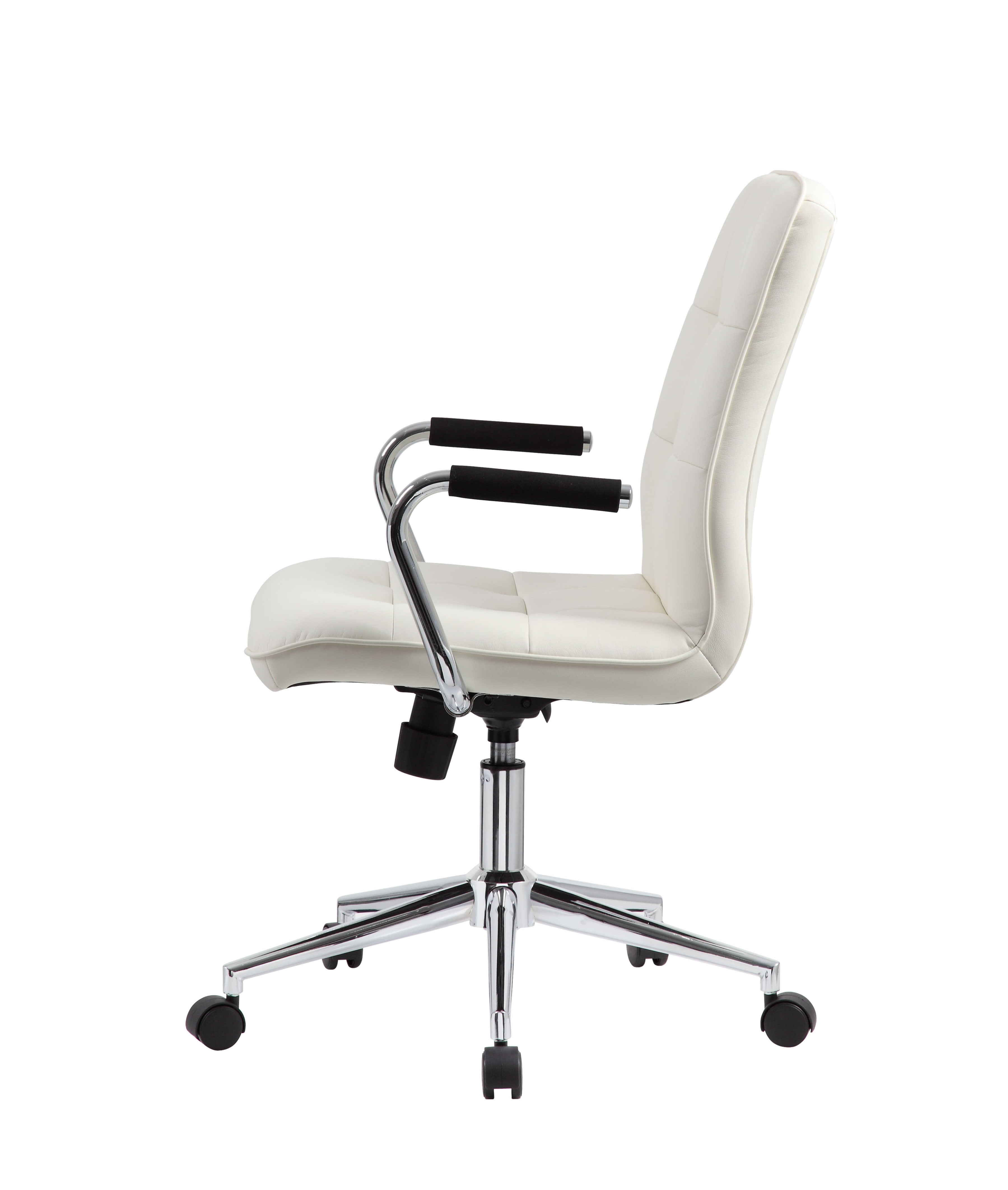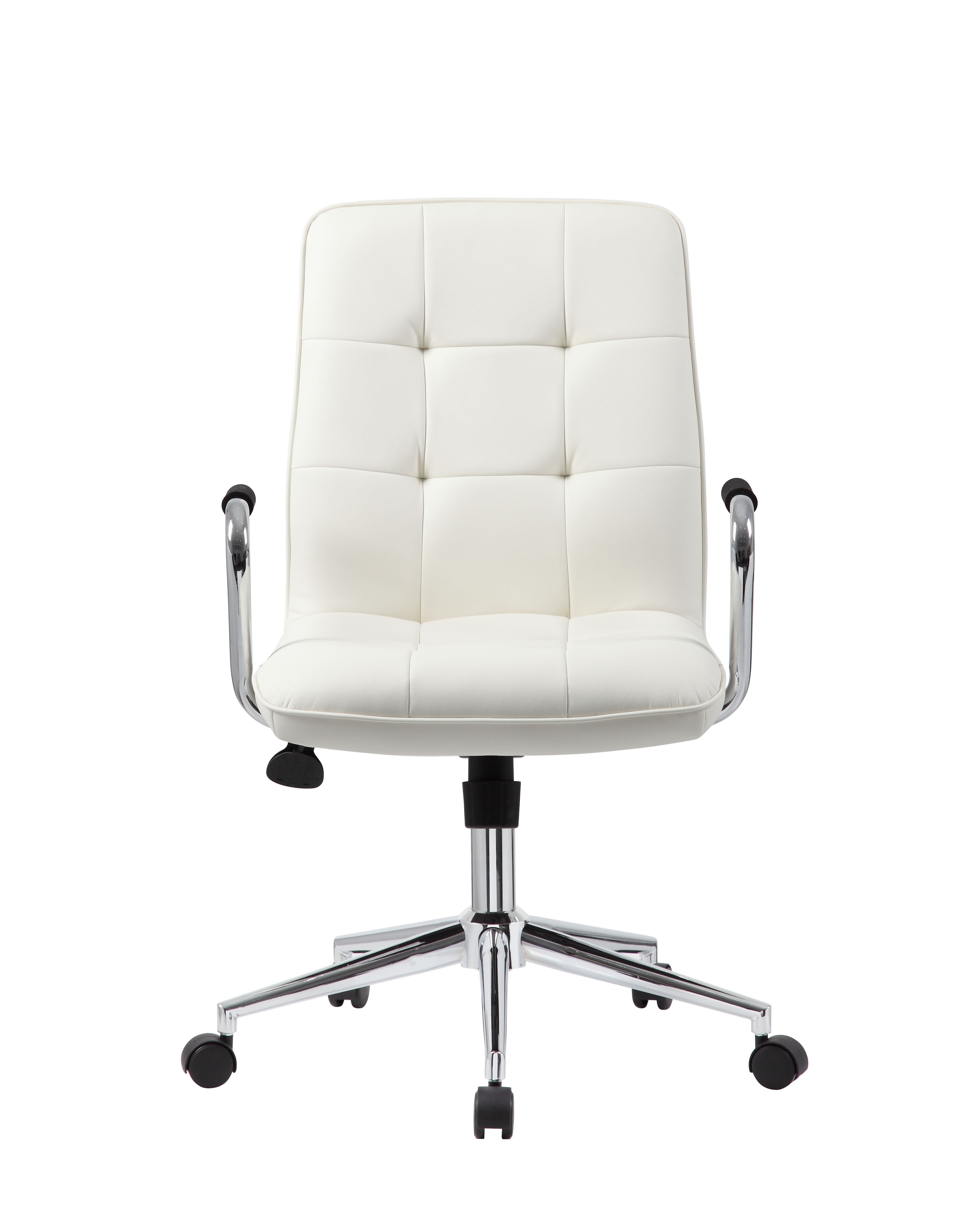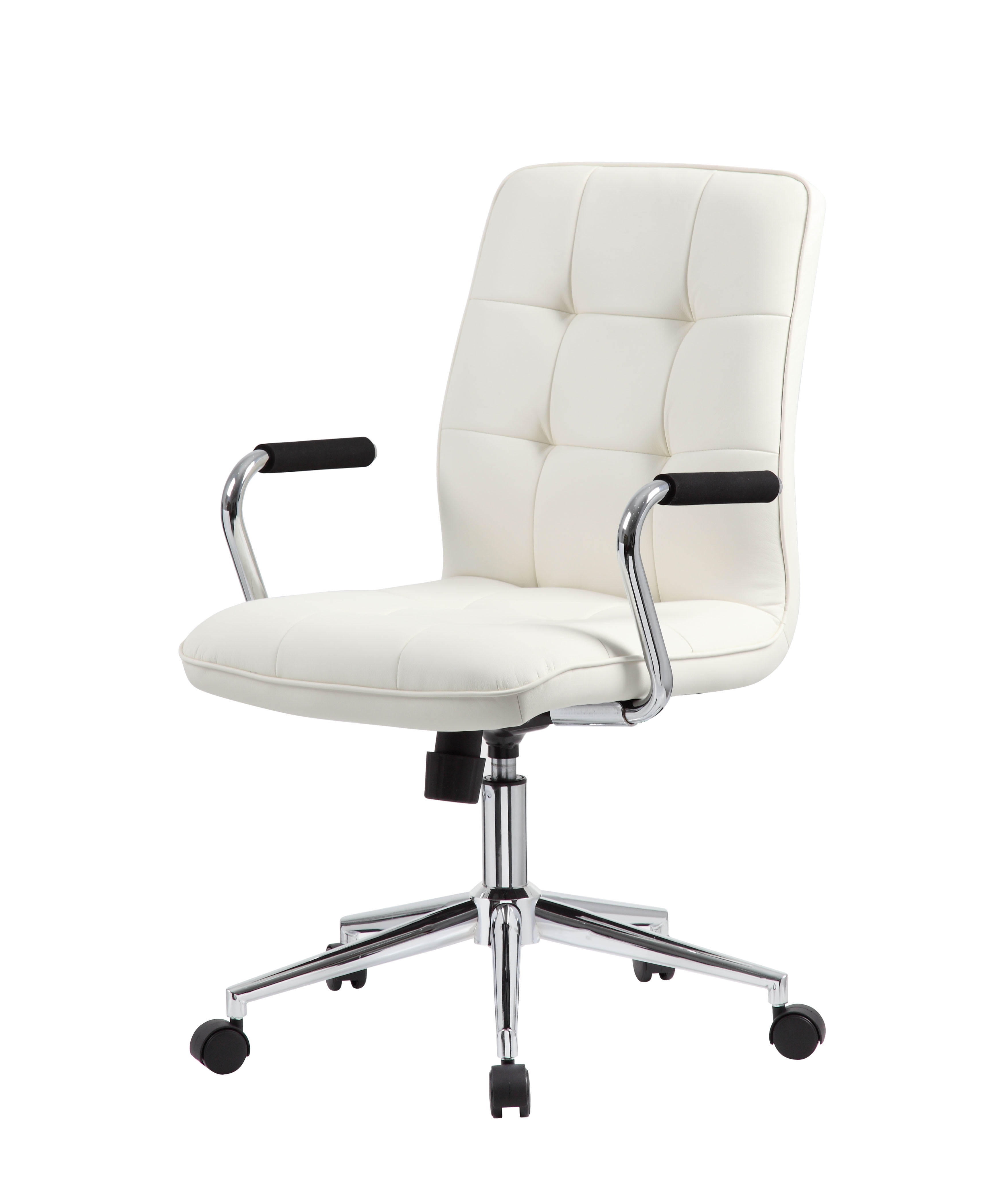 An ergonomic chair with contemporary styling. This Modern Task Chair is beautifully upholstered with ultra-soft Caressoft. Its high crown chrome base provides enhanced stability, and the chrome arms provide elegant and comfortable arm rests. Weight capacity tested to support 250-lb. Features pneumatic seat-height, tilt-tension and upright-locking adjustments. Allows you to customize for your perfect fit. Beautiful, ultra-soft, durable and breathable CaressoftPlus upholstery