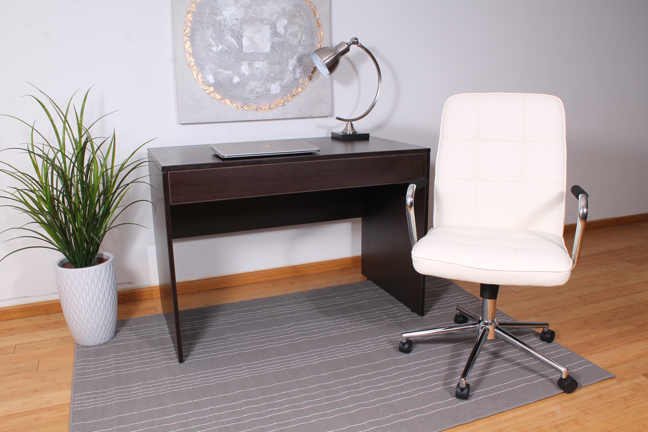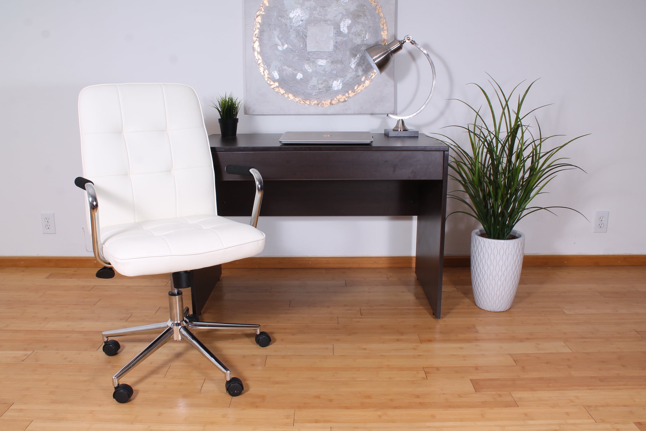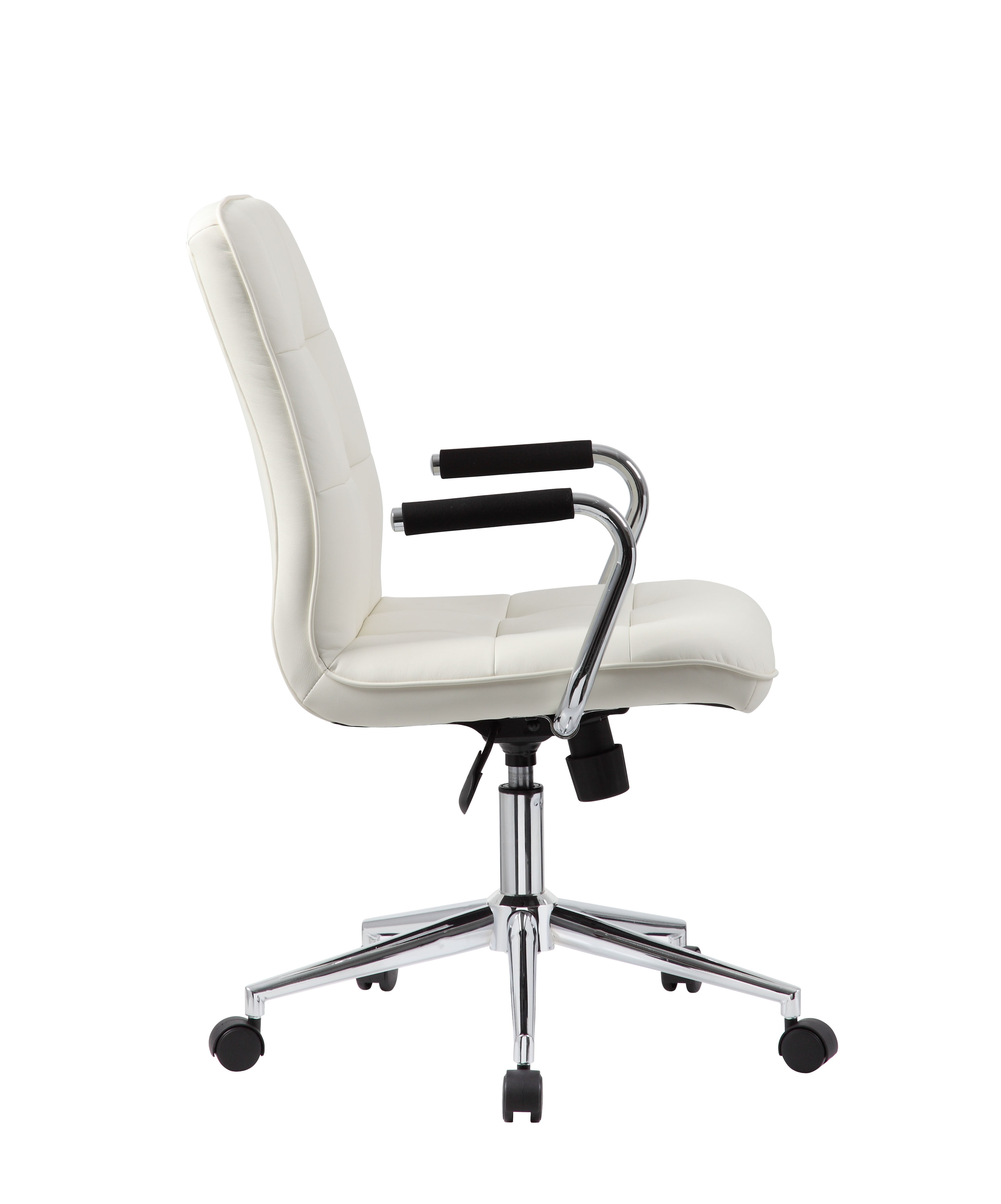An ergonomic chair with contemporary styling. This Modern Task Chair is beautifully upholstered with ultra-soft Caressoft. Its high crown chrome base provides enhanced stability, and the chrome arms provide elegant and comfortable arm rests. Weight capacity tested to support 250-lb. Features pneumatic seat-height, tilt-tension and upright-locking adjustments. Allows you to customize for your perfect fit. Beautiful, ultra-soft, durable and breathable CaressoftPlus upholstery