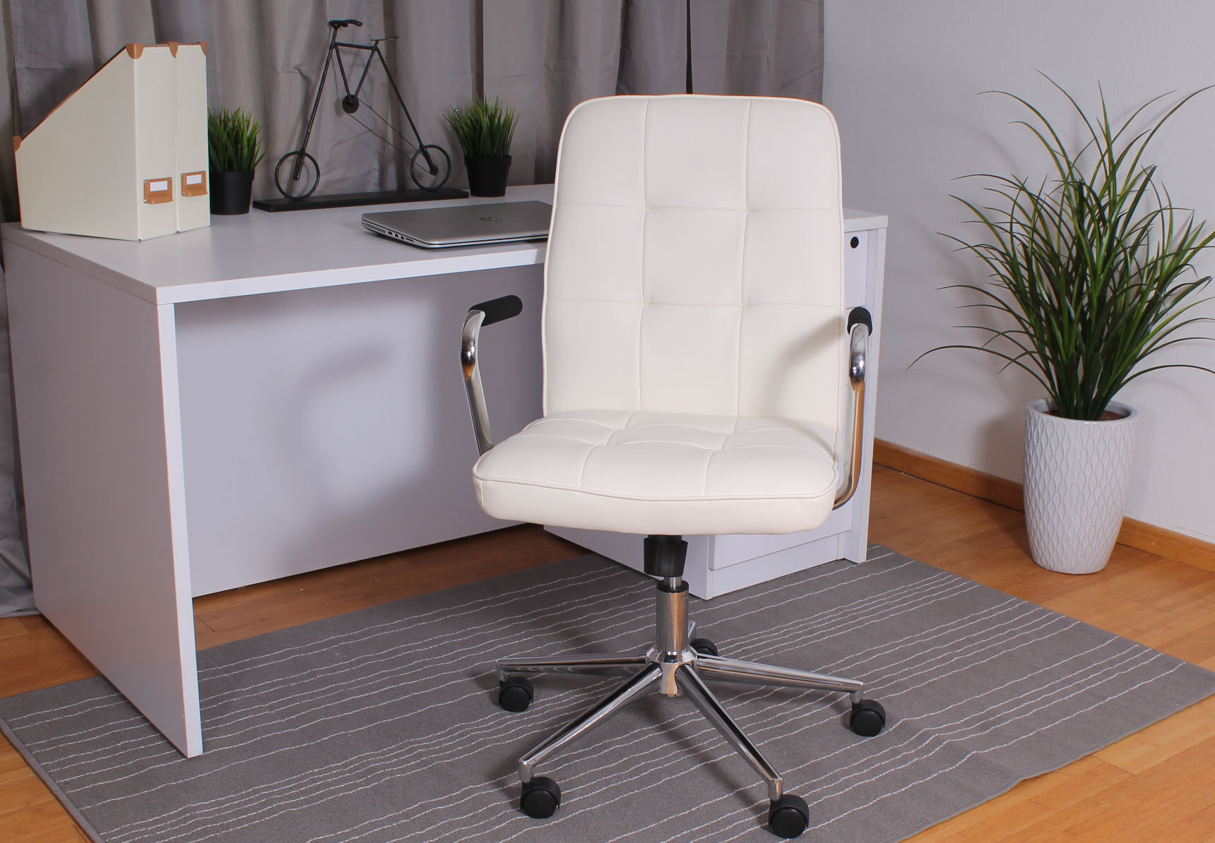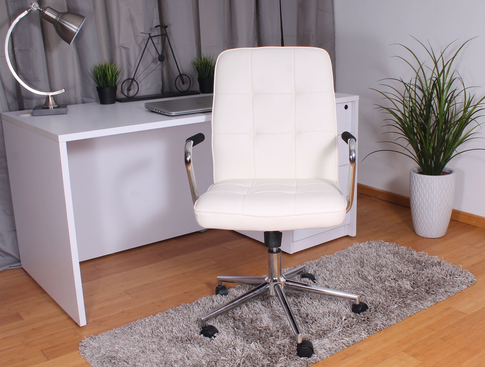 Beautifully upholstered with ultra-soft durable and breathable Black CaressoftPlus. Spring tilt mechanism. Upright locking position. Pneumatic gas lift seat height adjustment. Adjustable tilt tension coModern 27″ high crown chrome base. Hooded double wheel casters. Chrome handlebar style arms. Available in Red (RD) or White (WT). Features : Color: White Back Dimension: 20″ H x 19.5″ W Upholstered with ultra soft, durable and breathable caressoftPlus upholstery Spring tilt mechanism Upright locking position Pneumatic gas lift seat height adjustment Adjustable tilt tension Modern 27″ high crown chrome base Hooded double wheel casters Specifications : Product Dimensions : 38.5″ H x 27″ W x 27″ D Seat Dimensions : 18″ – 21″ H x 19.5″ W x 18″ D