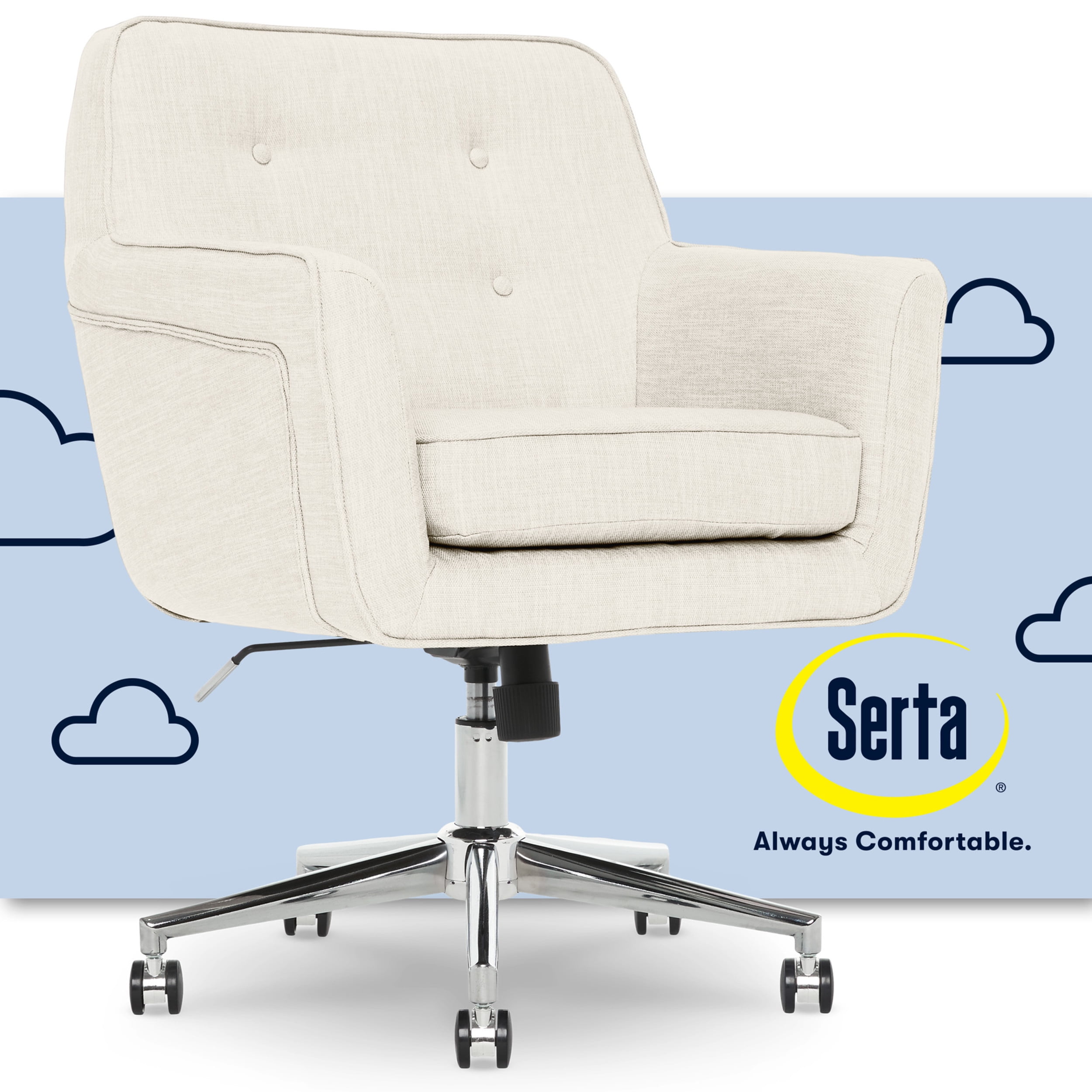 Contoured back and seat help to relieve back-strain Pneumatic gas lift seat height adjustment Large 27″ nylon base for greater stability Hooded double wheel casters Strong 20″ diameter chrome foot Overall dimensions: 25.5″W x 25″D x 42-47.5″H Weight Capacity: 275 lbs.