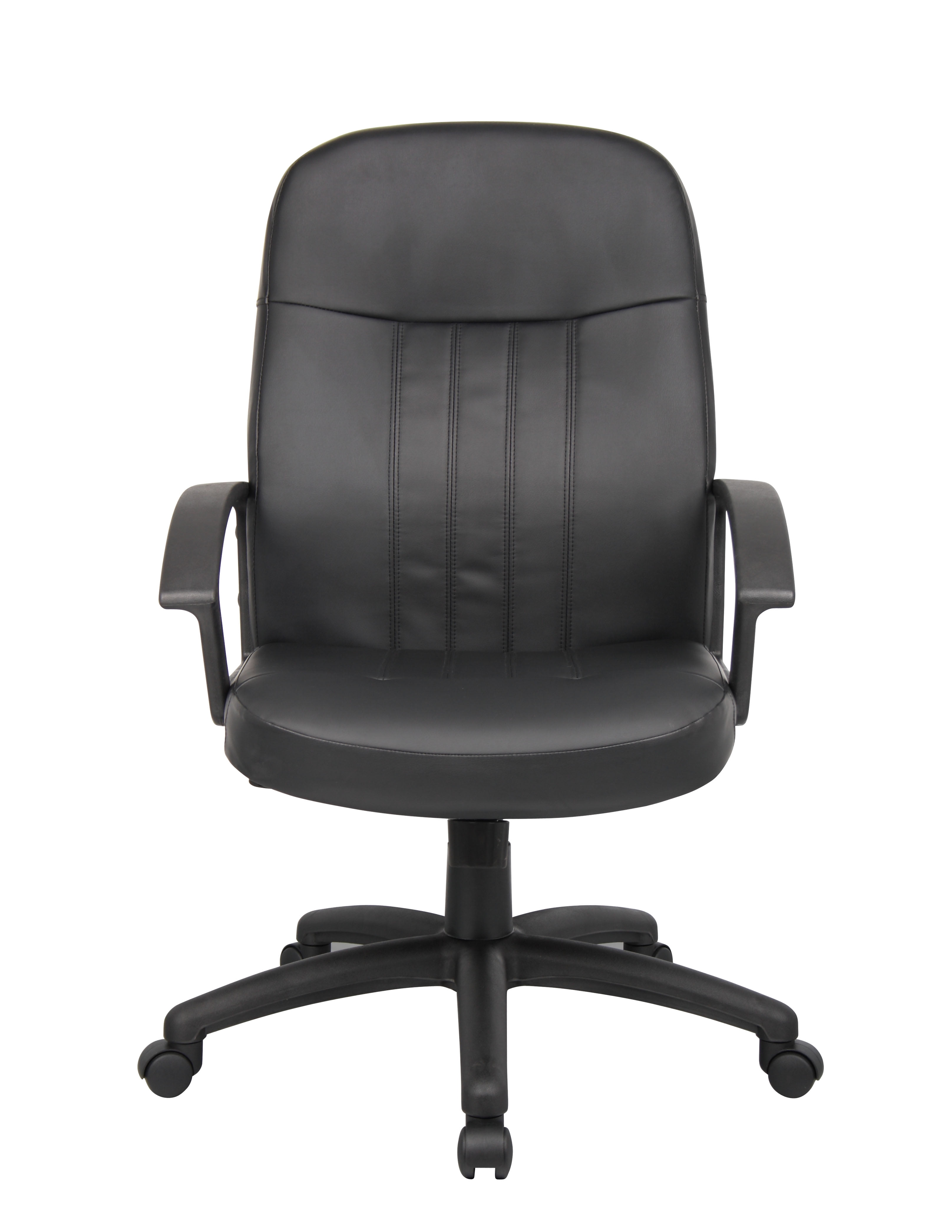 Beautifully upholstered with black leatherplus Passive ergonomic seating with built in lumbar support Adjustable tilt tension control Durable polypropylene arms Plastic frame and base Pneumatic gas lift seat height adjustment Hooded double wheel casters Overall dimensions: 27″W x 27″D x 40.5-44″H Seat Dimensions : 20″W x 19″D Seat Height : 18*21.5″H Product Weight : 39 lbs