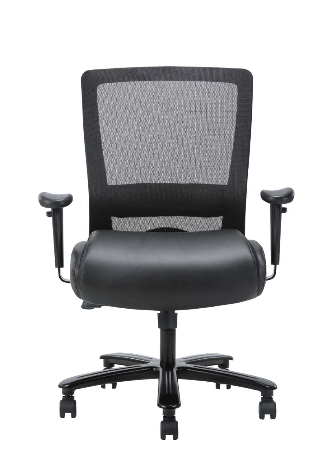 Our Boss Office Products Heavy Duty Big & Tall Mesh Desk Chair makes the perfect companion to any office, board room, or study. Its 400 pound weight capacity ensures a comfortable sitting experience with a broad range of body types. It’s seat is elegantly upholstered in black Caressoft and features a soft pillow top cushions for added comfort. The mesh back allows the cushion to breath with no moisture build up. It has height adjustable arms. The chair features pneumatic gas lift seat height adjustment, a heavy duty spring tilt mechanism, and tilt tension control. All of this sits atop a large 29” steel base with five large heavy duty casters.