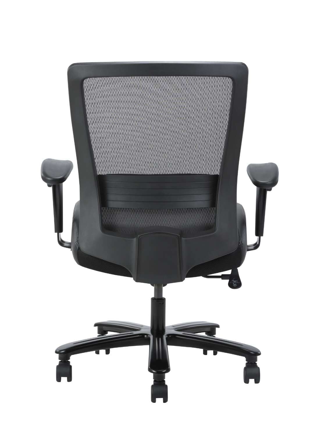 Black breathable mesh back cushion Black vinyl seat cushion with breathable mesh side inserts Heavy duty spring tilt mechanism Adjustable tilt tenson control Height adjustable armrests Black steel base Hooded double wheel casters Weight Capacity : 275 lbs. Seat Dimensions : 21.5″W X 19.5″D Seat Height : 21″ -24.5″H Product Dimensions : 30″W X 27″D X 40.5-44″H Product Weight : 50 lbs.