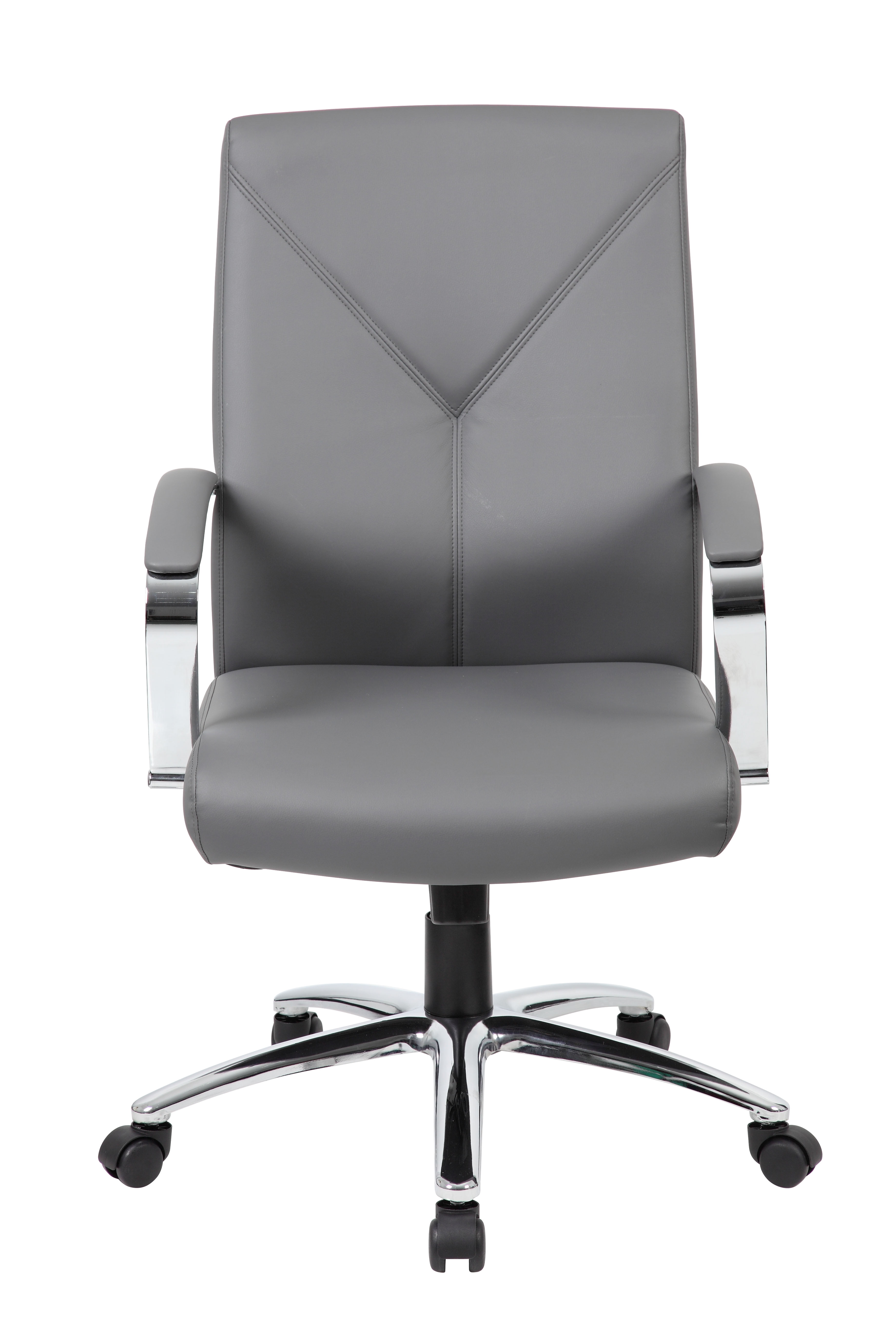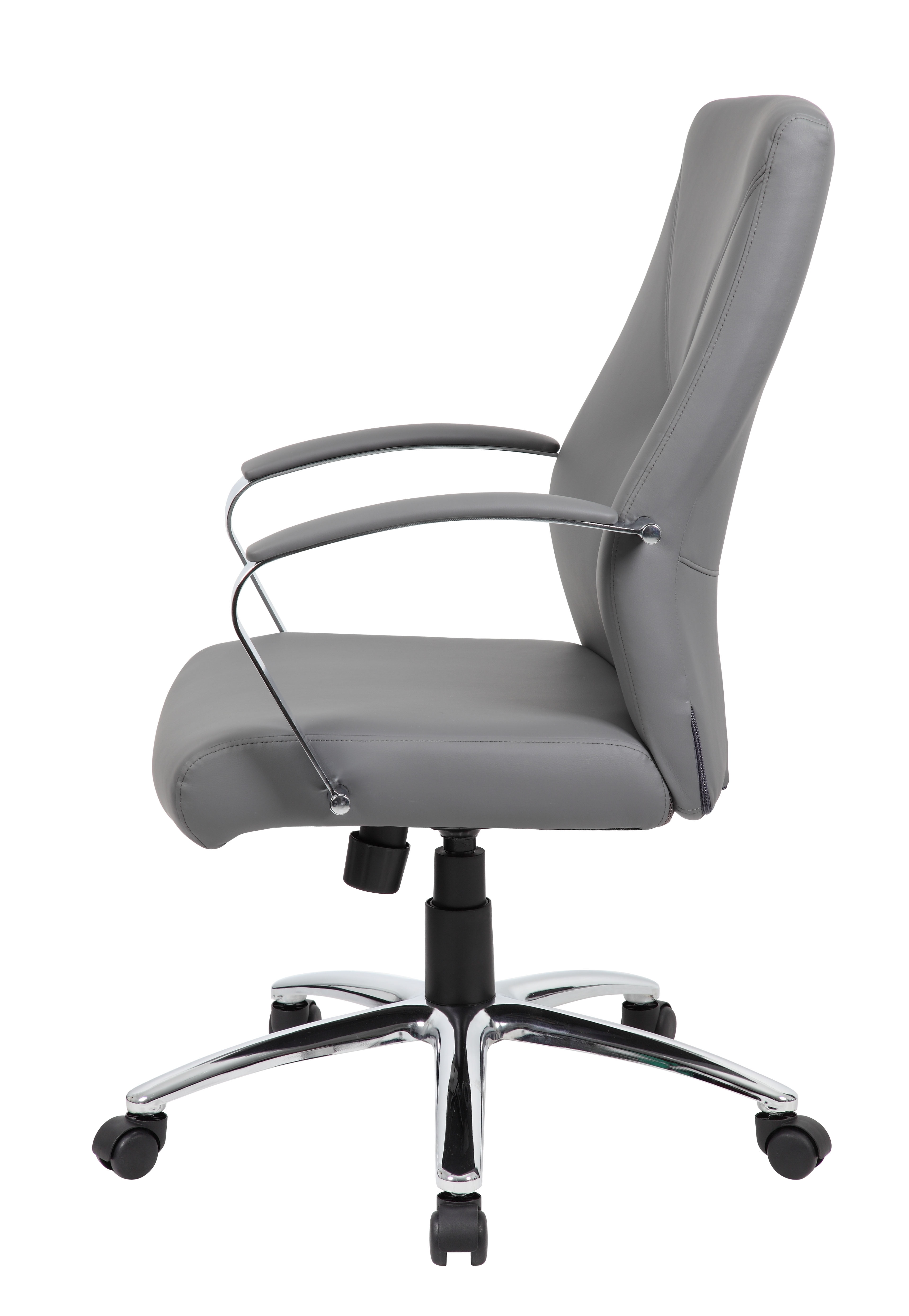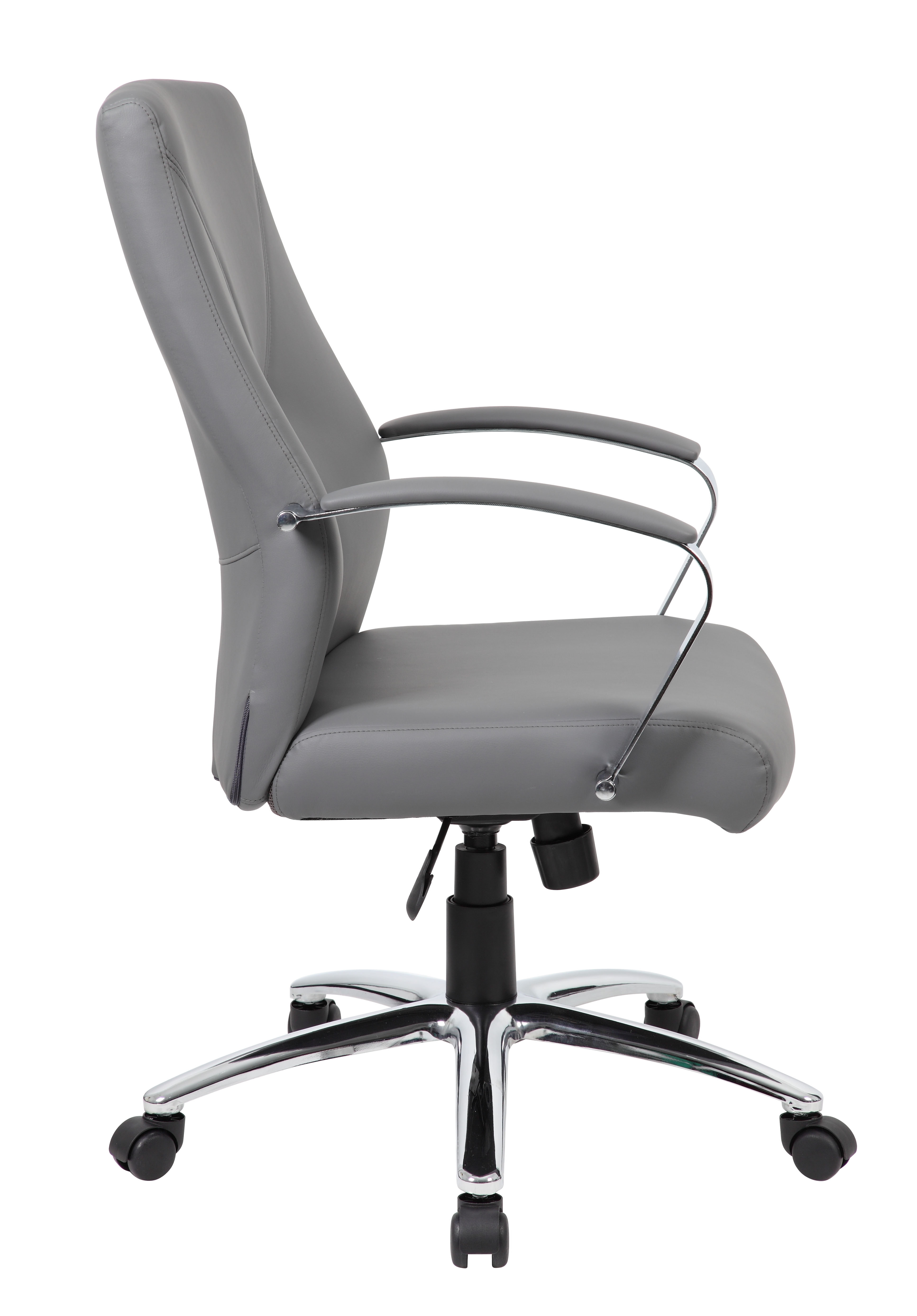 Boss Office Products LeatherPlus Home Office Adjustable Executive Chair with Casters, Grey