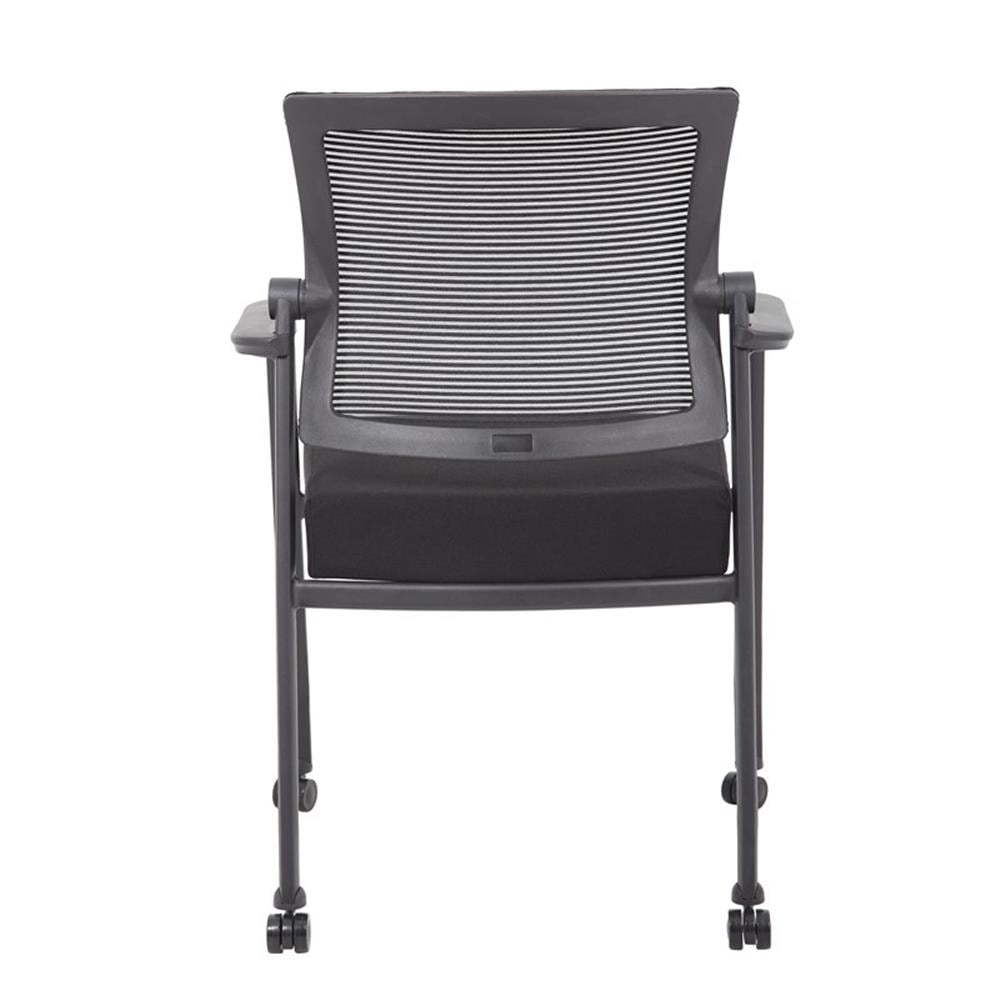 Steel legs; hooded double wheel casters Breathable mesh back; Breathable fabric upholstered seat Rubber glides for easy movement