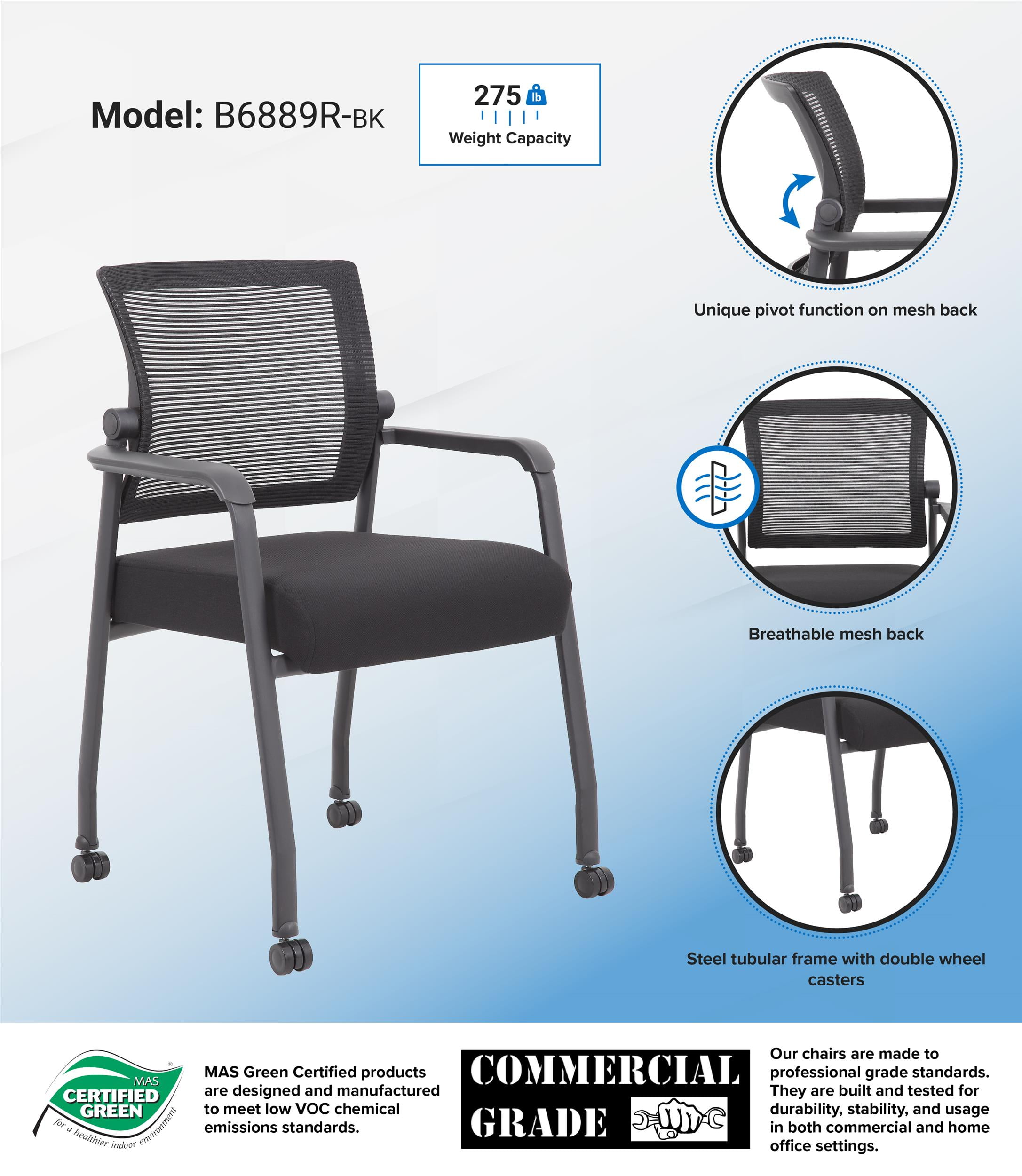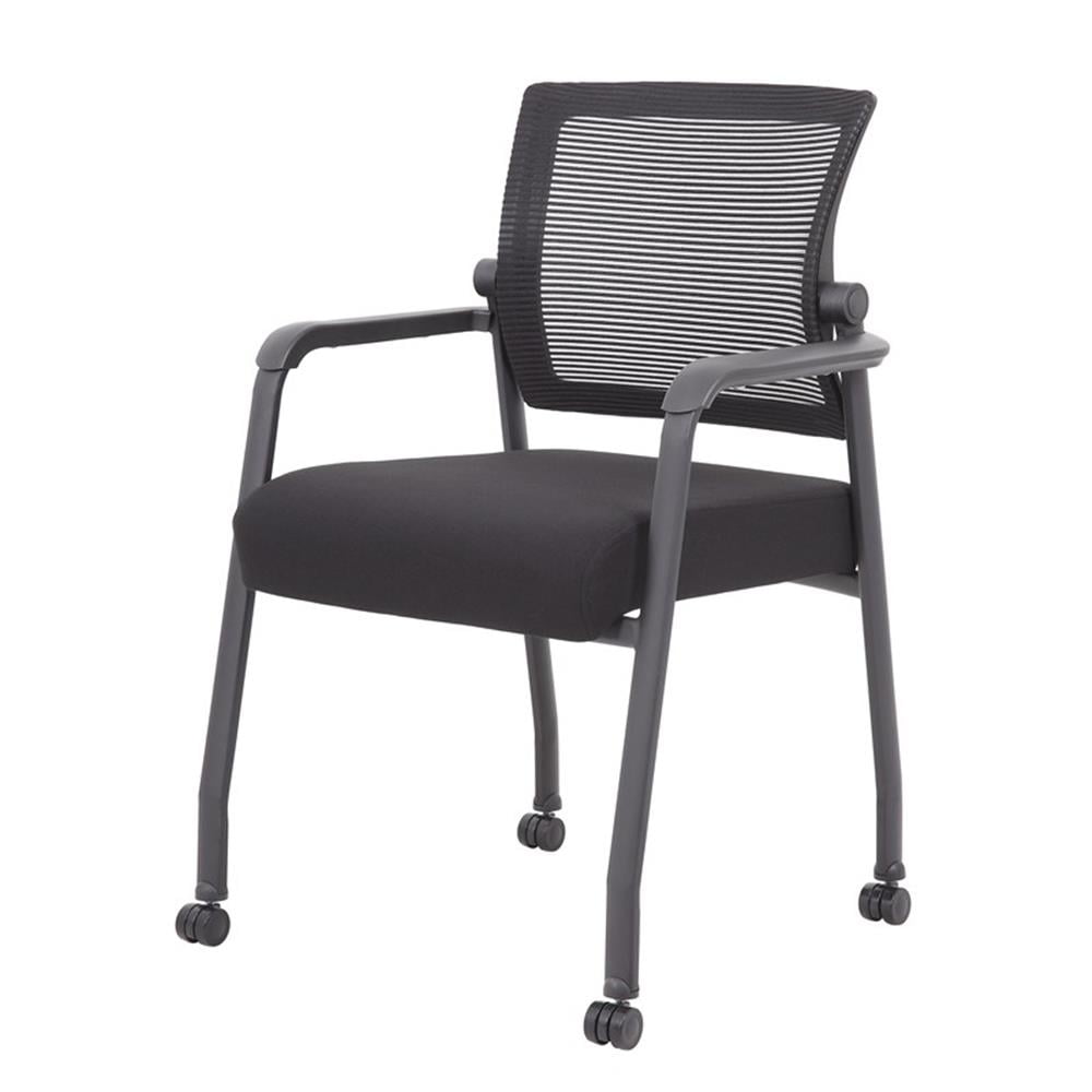 Boss Office Products Mesh 4-Legged Guest Chair with Casters, Black
